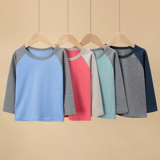 1/4 Pack 2025 nouveau printemps et automne enfants couleur correspondant à manches longues T-shirt pour garçons et filles décontracté Joker T-shirt