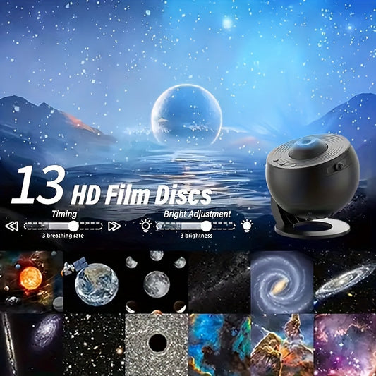 1pc Magical Galaxy Projector Lamp - Create an HD Starry Night Sky, 13 Enchanting Films, Transform Your Bedroom into a Cosmic Haven - Ambient Atmosphere Lighting