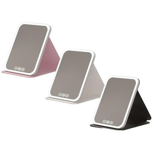 Glamour Glow - Foldable LED Makeup Mirror with 3-Color Lighting, Dimmable Touch Screen, Rechargeable & Tabletop, Perfect Vanity Accent for Effortless Beauty Routine