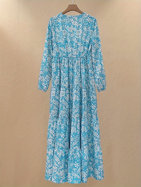 Women's Middle Eastern Muslim Print Long Dress - Elegant, Comfortable, Stylish for Modest Fashion