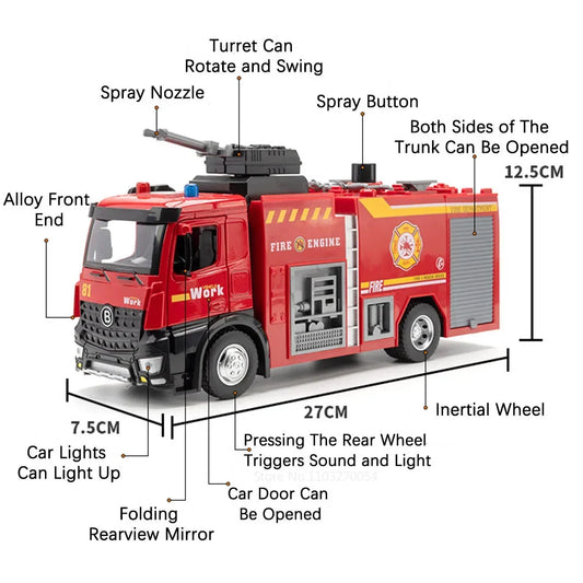 1:18 pétrolier d'eau alliage échelle camion de pompier modèle jouets voiture moulé sous pression en métal ingénierie véhicule portes ouvert son lumière jouet garçon cadeau