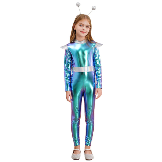 Costume de Cosplay Alien pour filles et garçons, combinaison d'astronaute à manches longues avec cerceau pour cheveux, pour fête de carnaval d'halloween