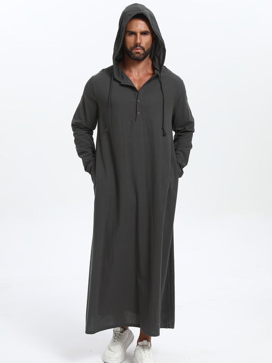 Men'S Arabic Hooded Robe - Traditional Islamic Full-Length Robe with Hood, Beige/Neutral Tones, Non-Stretch Fabric for Formal, Casual, Religious, Everyday & Special Occasions - Middle Eastern Cultural Attire, Muslim Dress, Fo