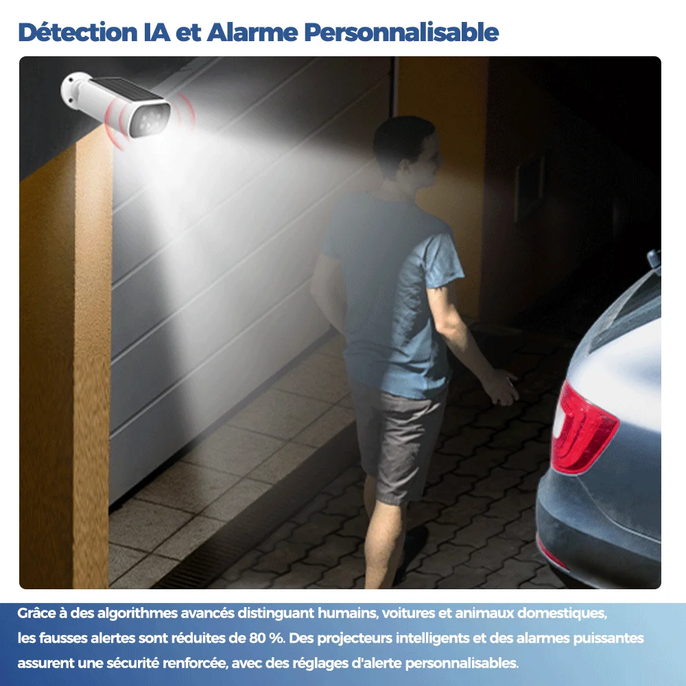 ALÉVIO 2. Caméra solaire extérieure 5K/4MP WIFI, caméra de sécurité étanche IP67 avec temps de veille Ultra/lumière intelligente PIR/vision nocturne couleur/conversation bidirectionnelle/humain/animal/détection de mouvement/sirène de bricolage, caméra de surveillance IP pour intérieur/extérieur, prise en charge de l'insertion Carte Micro SD, fonctionne avec Alexa et Google