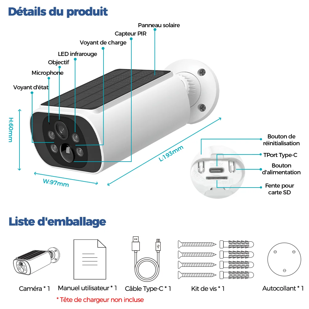 Numéro de Modèle: Wireless Solar Camera Outdoor