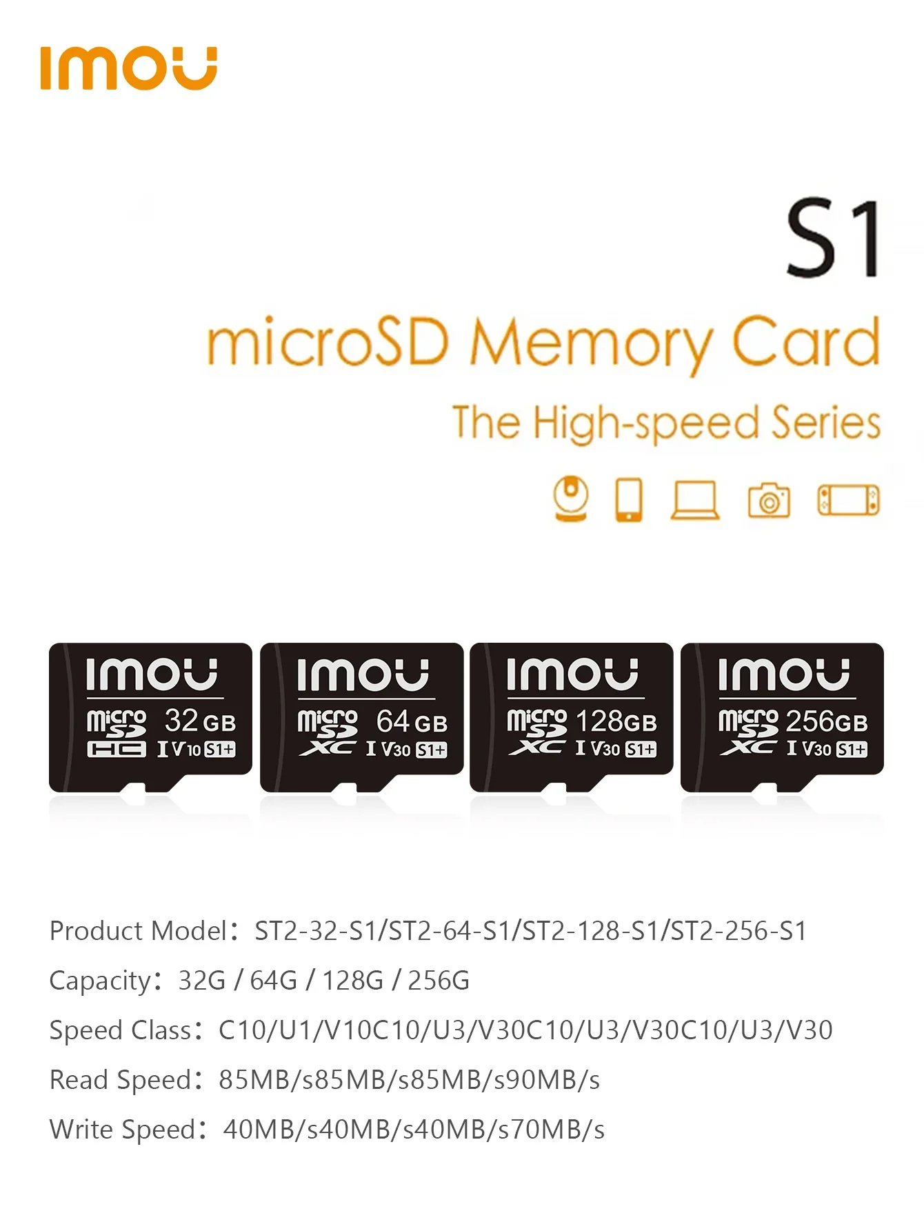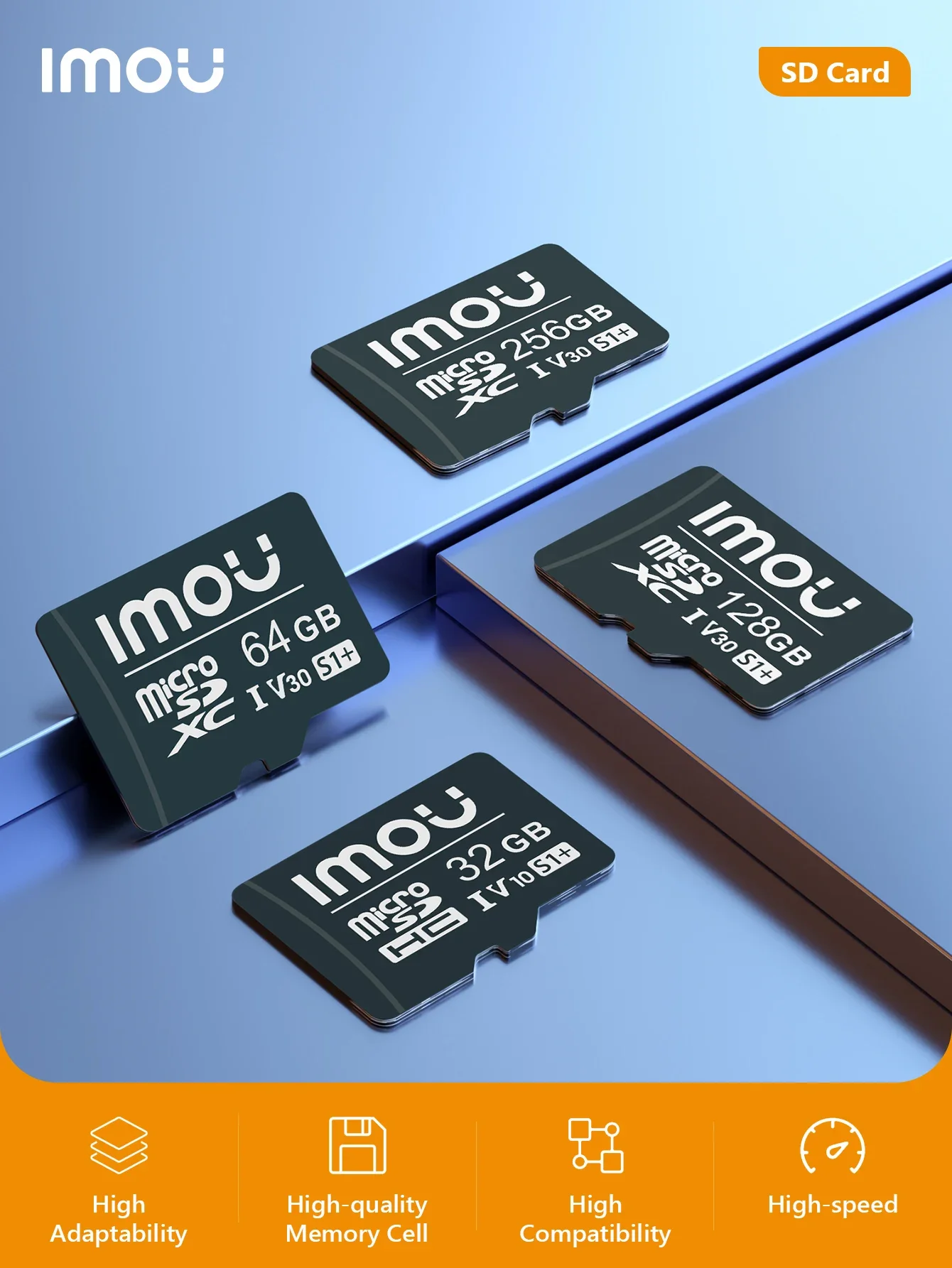 IMOU-Carte mémoire SD pour la surveillance, vitesse de lecture de 95 Mo/s, 256 Go, 128 Go, 64 Go, V30, C10, U3, carte MicroSDXC exclusive