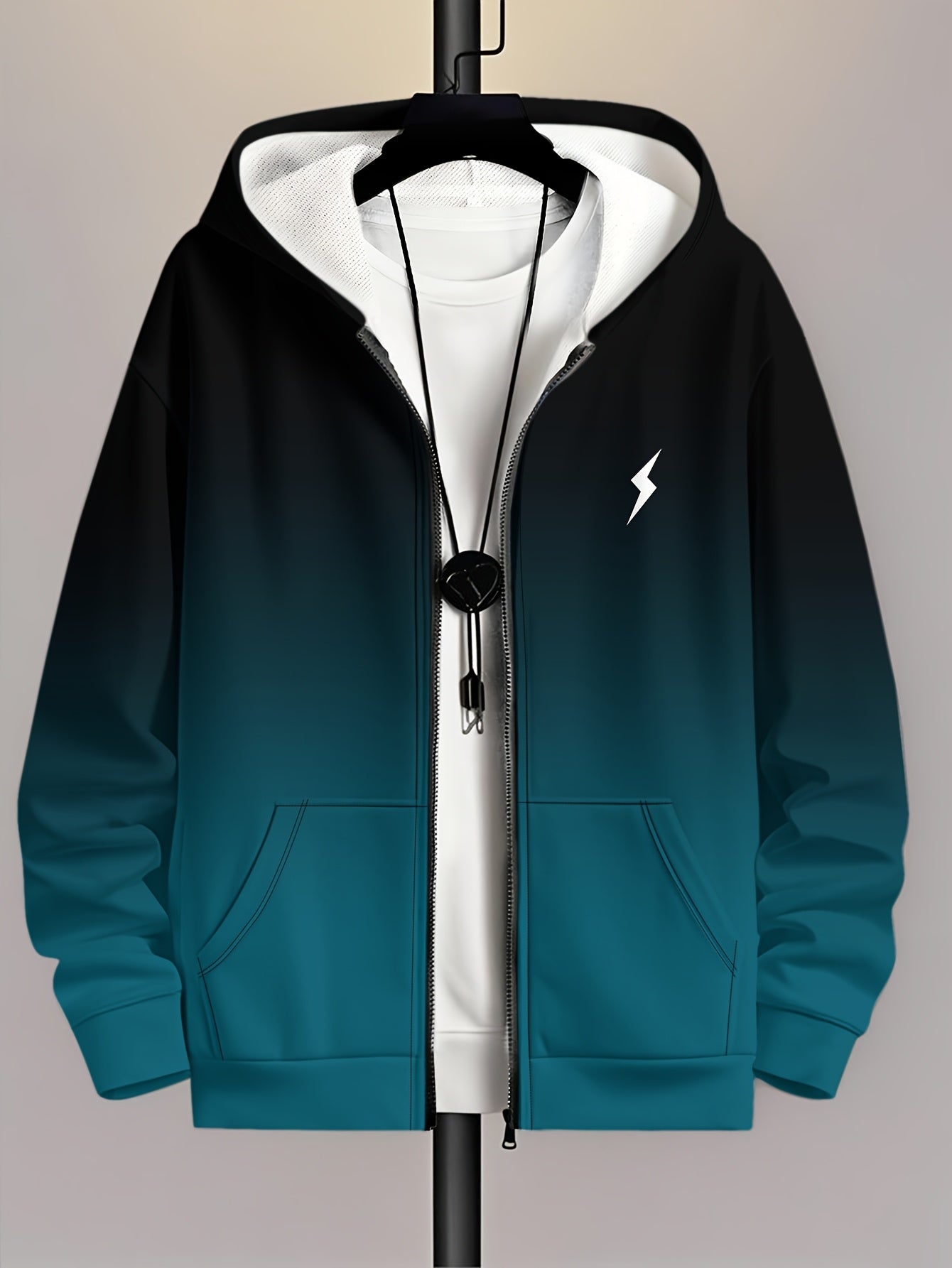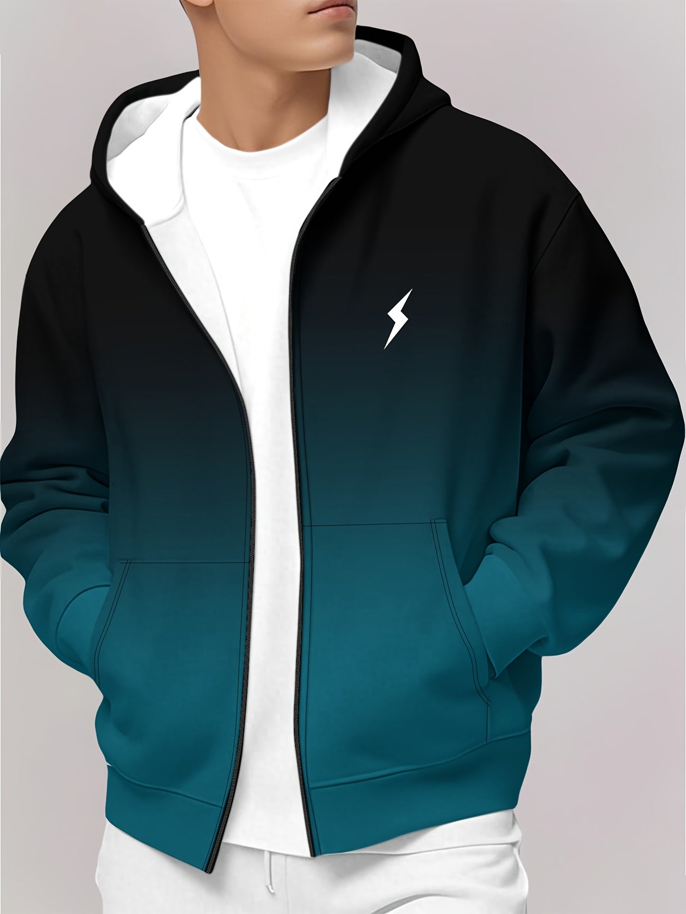 Men's Lightweight Hooded Jacket - Zip-Up Casual Coat with Full-Zip Closure, Machine Washable Outerwear for Spring/Fall Seasons - Everyday Urban Outerwear for Men, Gradient Color Design, Soft Shell Construction