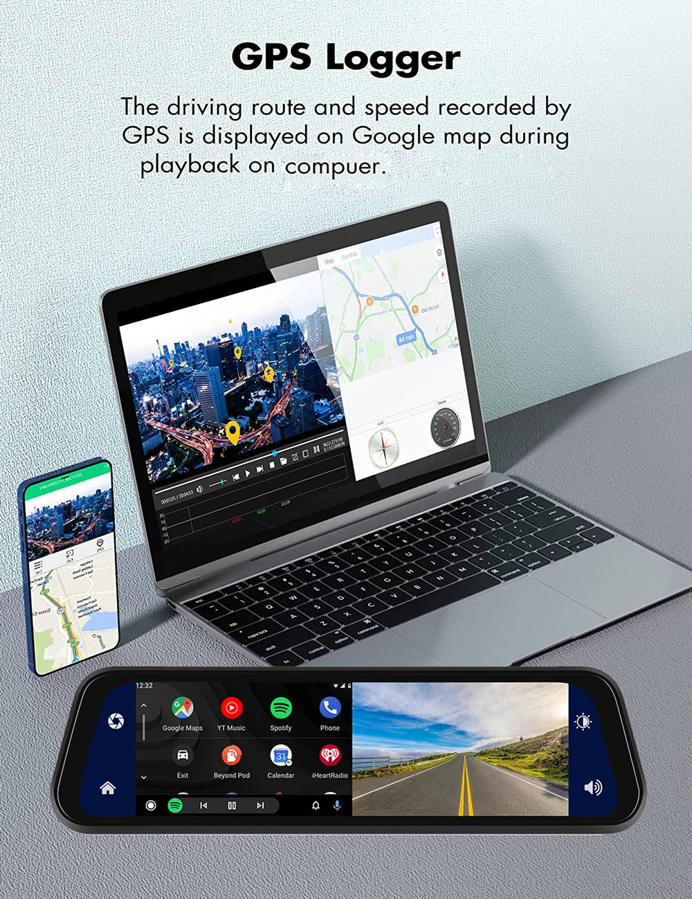 10 "Cam de tableau de bord 4K 3840*2160P voiture Dvr Carplay Android Auto GPS 5G WIFI AUX flux rétroviseur Dashcam caméra lecteur enregistreur FM