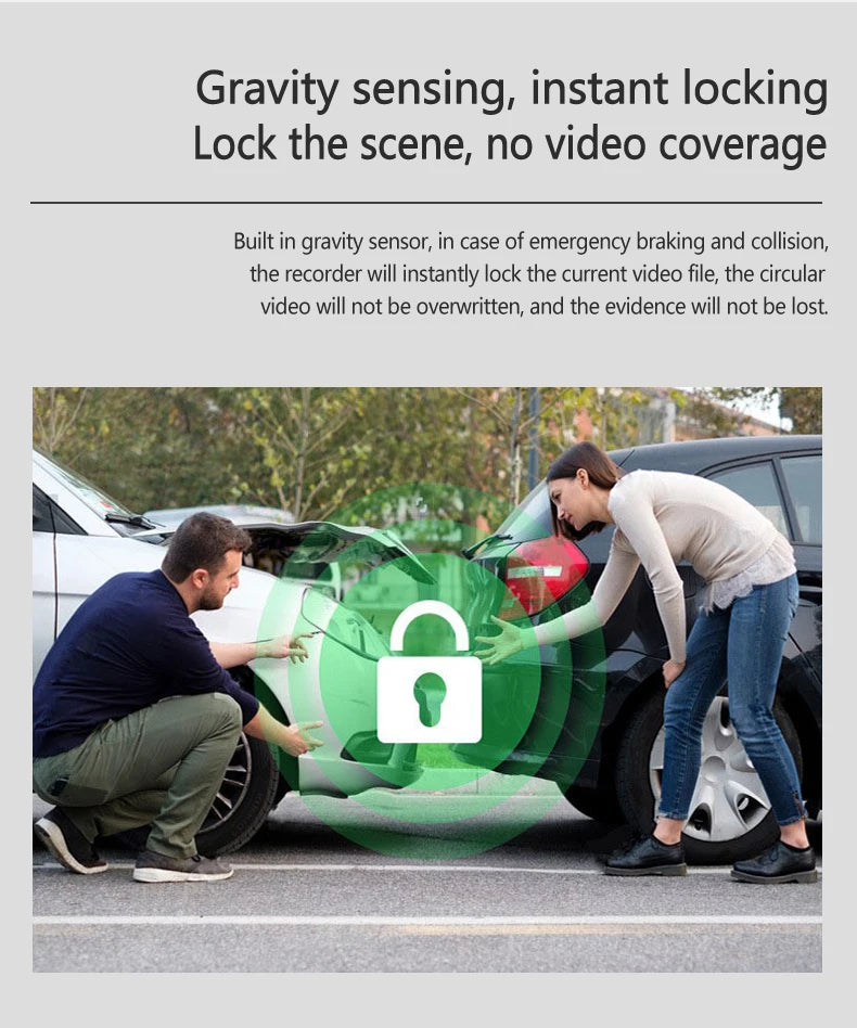 24-Hour Parking Monitoring If you are worried about your car being damaged by someone else after parking, you can use our buck line to connect the DVR to ensure that the recorder works 24 hours.If someone else hurts your car and the shock triggers the G-sensor, the DVR will immediately turn on and record the situation.