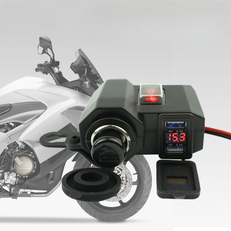 12V High-Speed Motorcycle Charger - Automobile Chargers with Digital Display, Dual USB Ports, and Intelligent Overcharge Protection - Fast and Safe Car Phone Charging Accessory