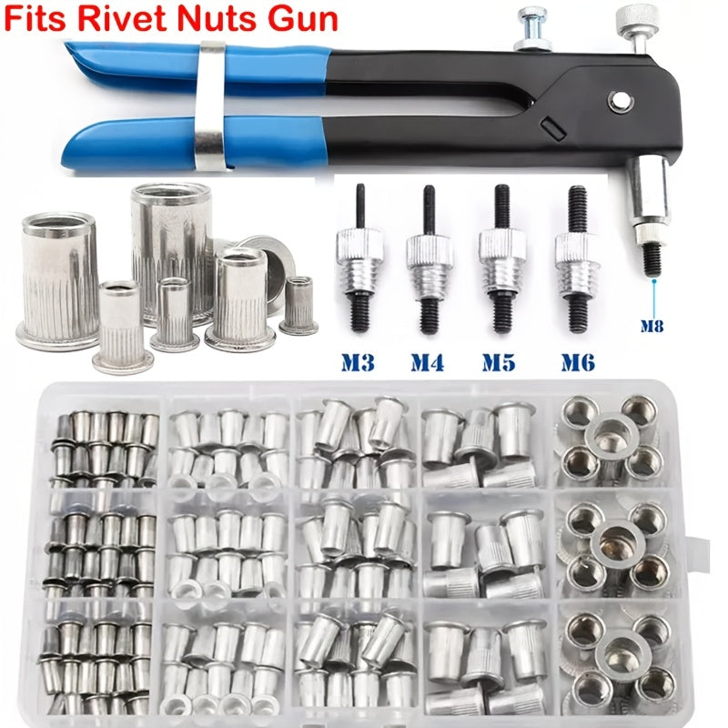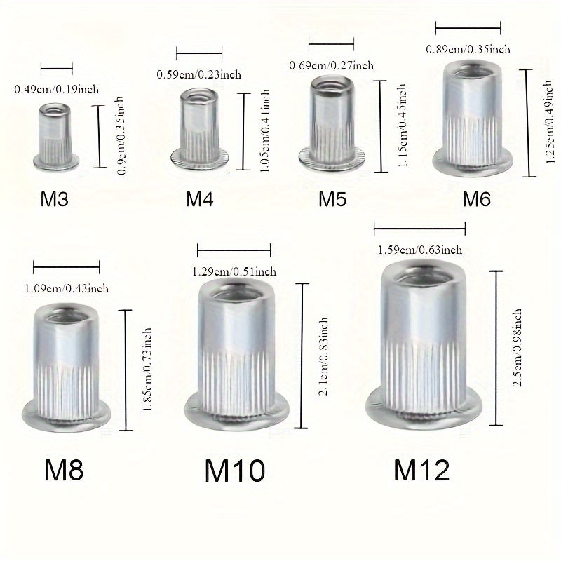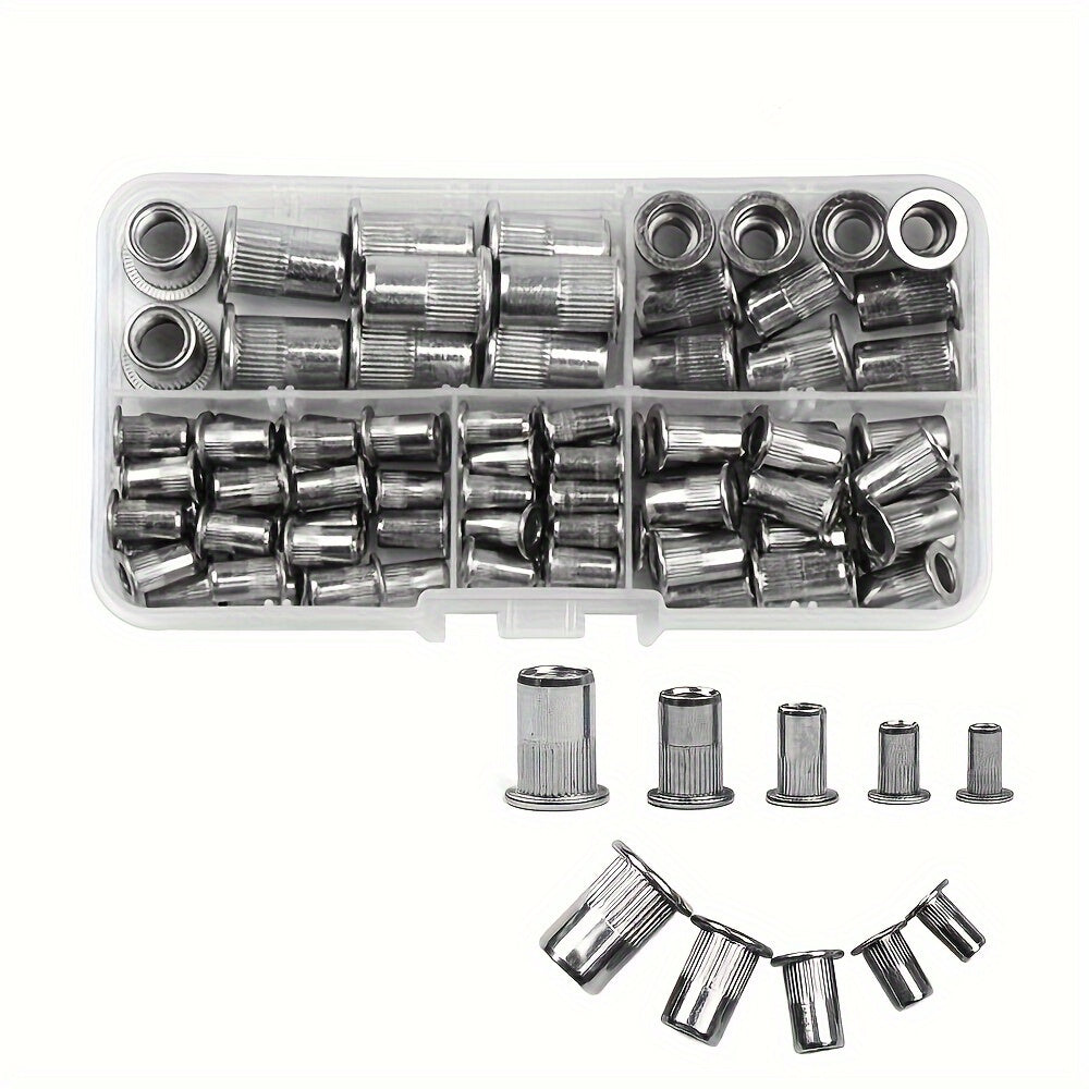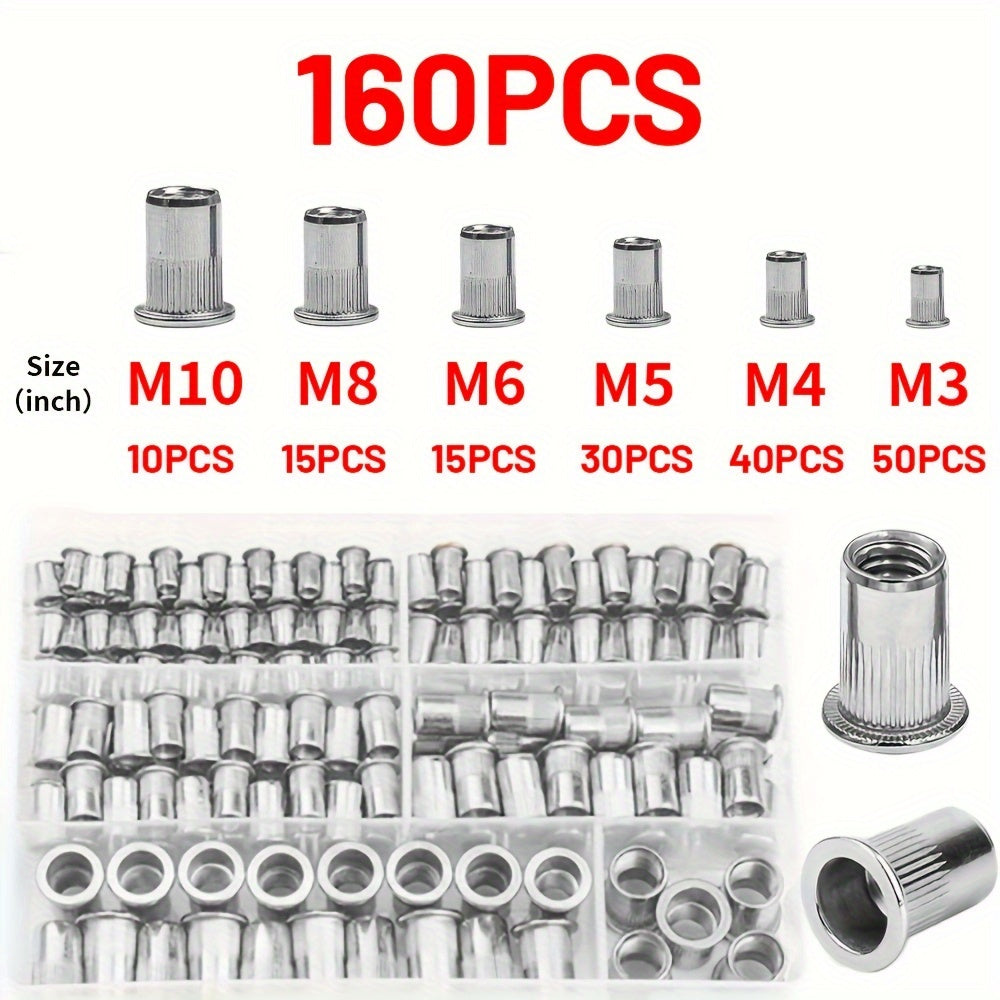 160pcs Rivet Nuts Kit M3/4/5/6/8/10- Durable Knurled Body, High-Strength Aluminum Flat Head, Embedded Rivet Nut, Threaded Insert Nut - Perfect For Automobile Restoration, Furniture Assembly, And Home Decoration