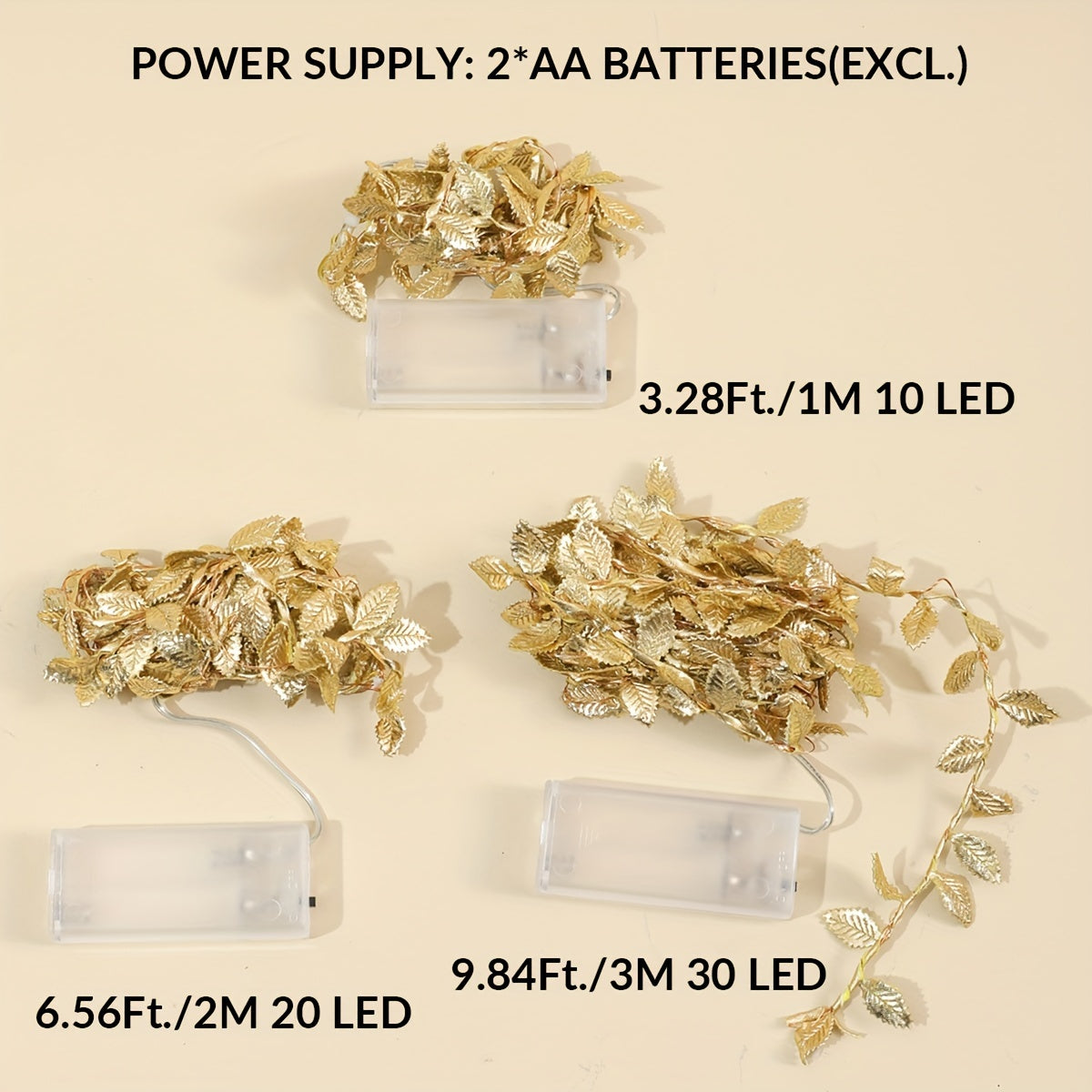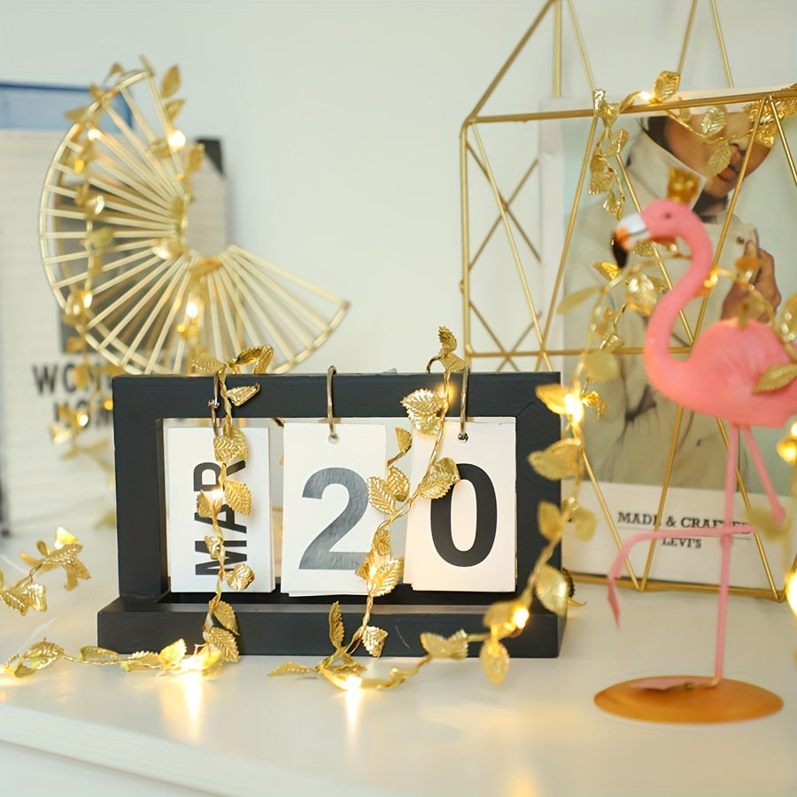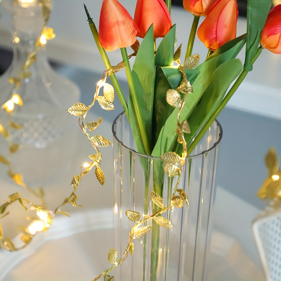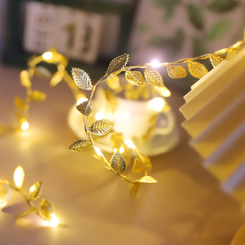 1pc Golden Leaf Wrap Copper Wire LED Decorative String Lights - Indoor Home Decor, Bedroom, Wedding, Christmas Holiday Decoration, 1/2/3M Long, Copper Wire, LED Lights, String Lights, Home Decorative Lighting