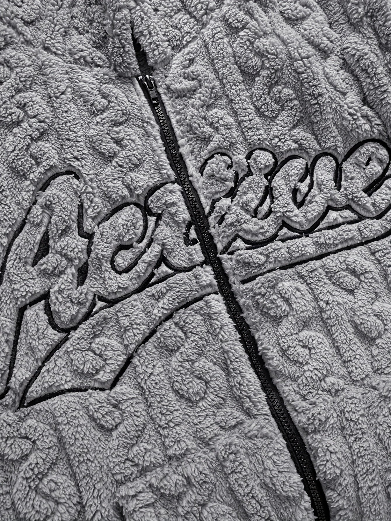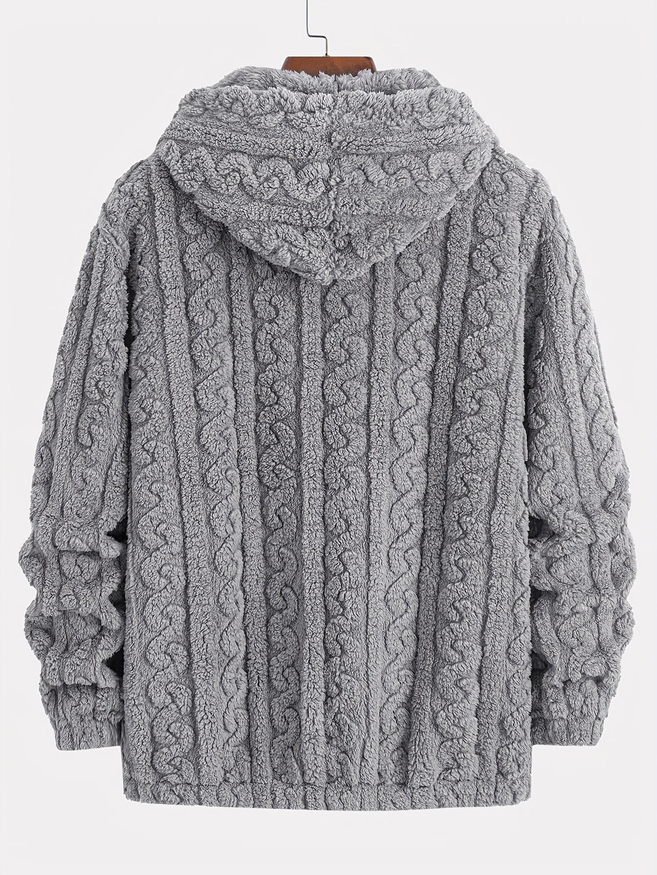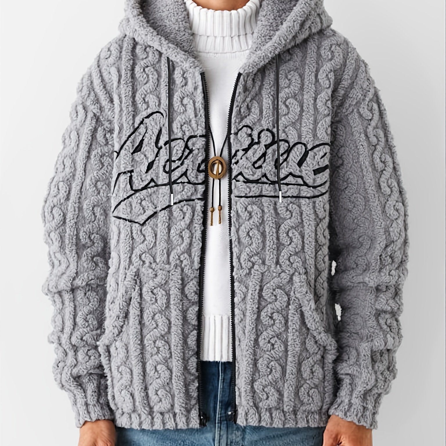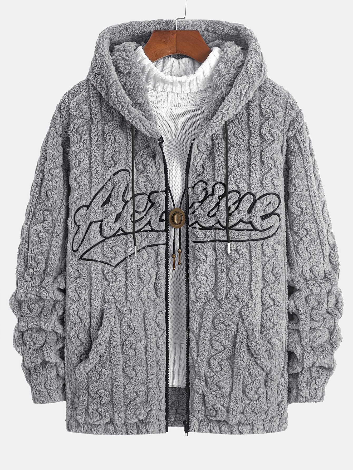 1pc Men'S Fleece Hooded Zip-Up Jacket with Embroidered Lettering - Cozy Double-Sided Plush, Long Sleeve, Regular Fit, Fall/Winter Casual Outerwear, Casual Winter Wear | Embroidered Lettering Jacket | Plush Fleece Jacket, Thic