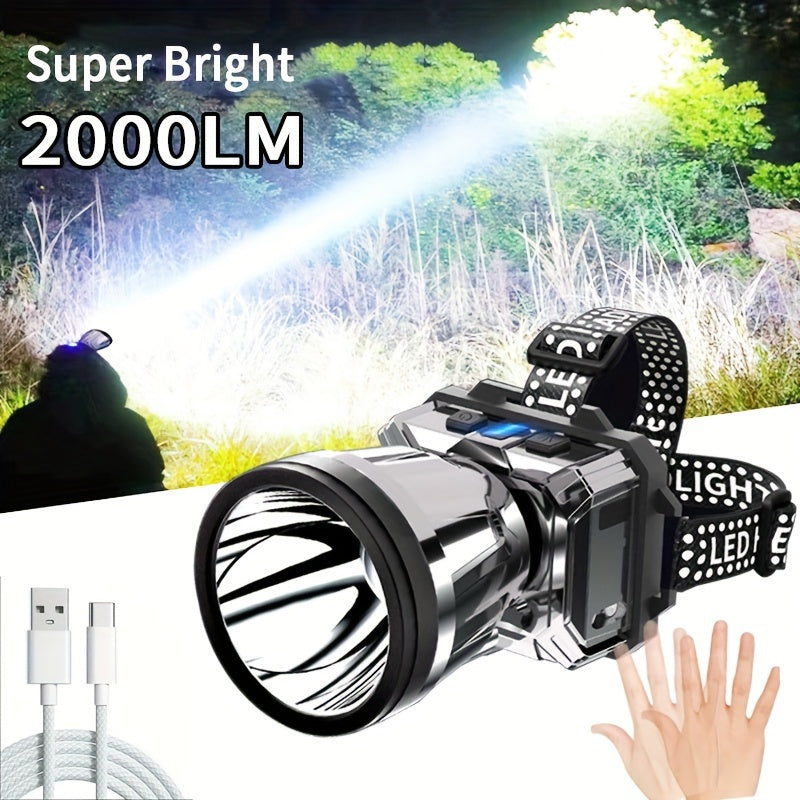 1pc Super Bright USB Charging Headlight, For Outdoor Lighting, Home Lighting, Camping, Hiking, Night Cycling, Fishing