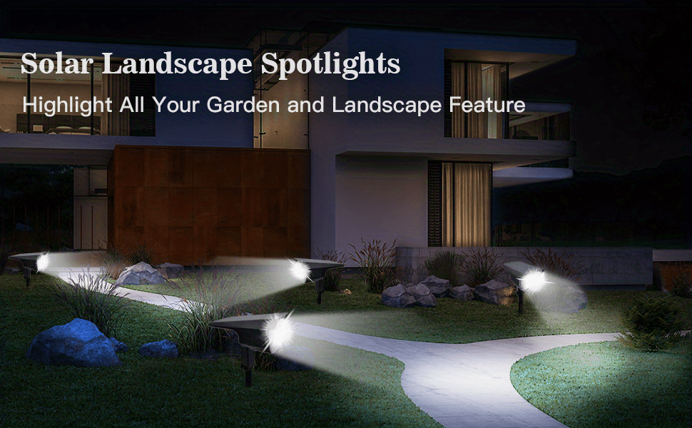 Perfect Solar Landscape lights - You have no need to run your wired lights, Use the solar spot light to uplight your palm trees and agave etc. Please charge the spotlights for 2 days in direct sunlight before you first using.