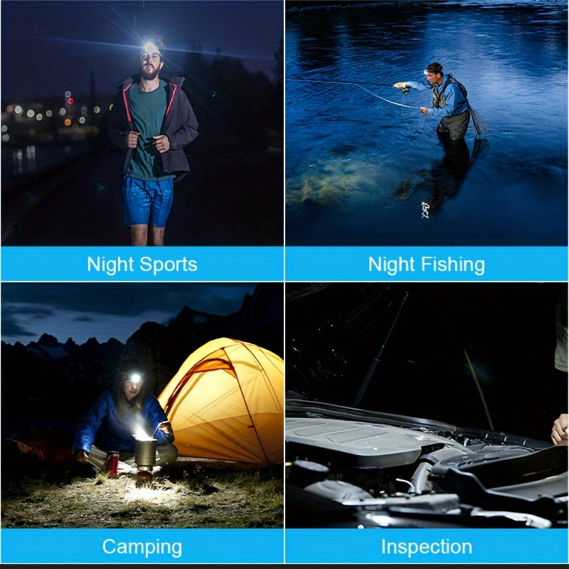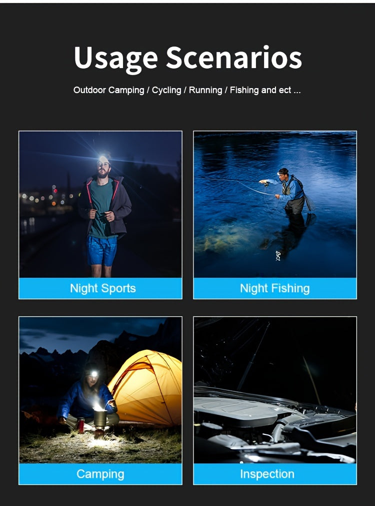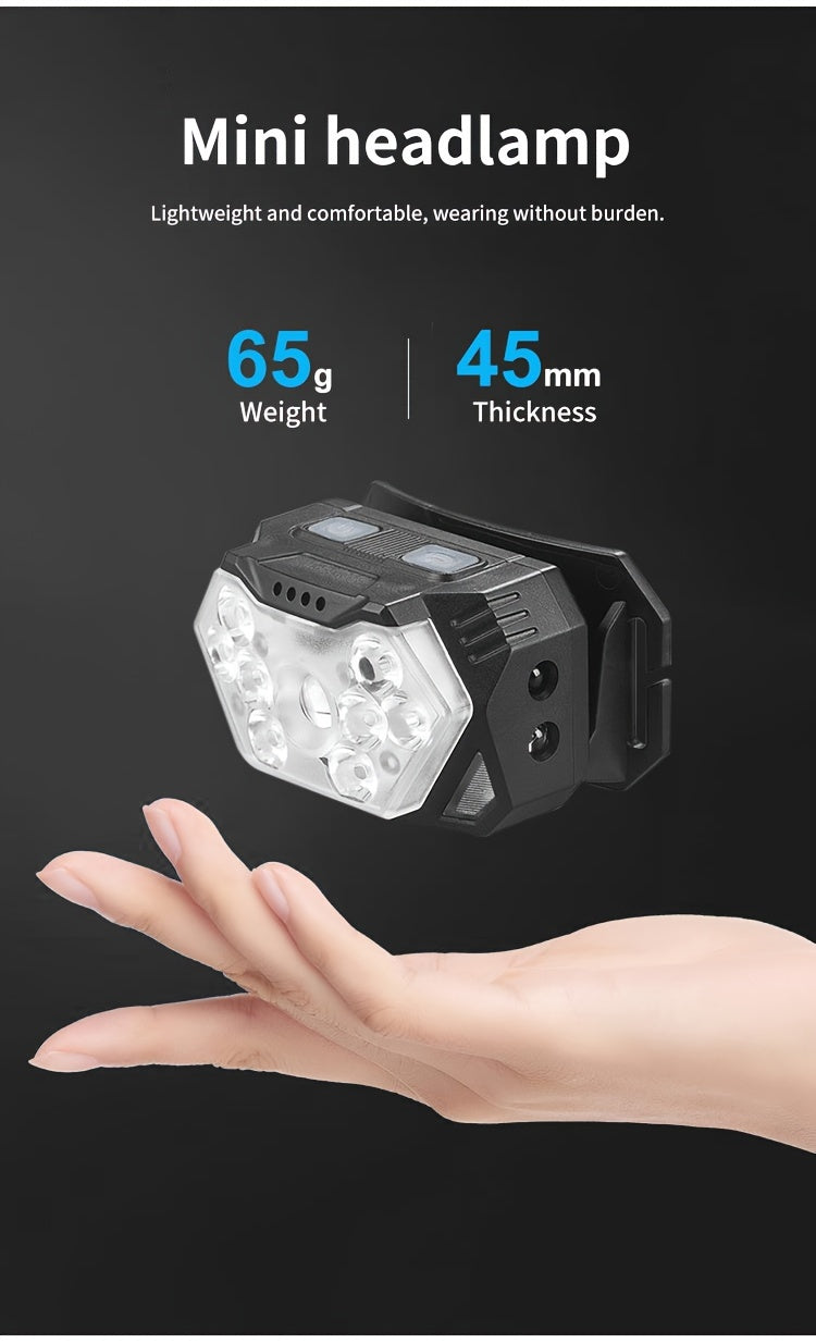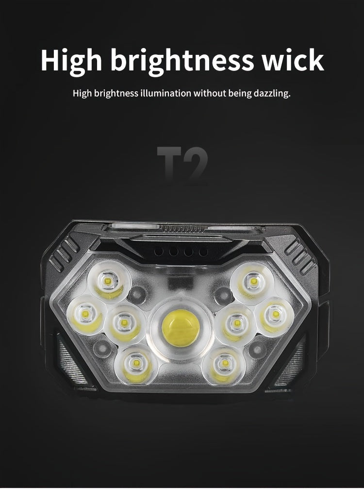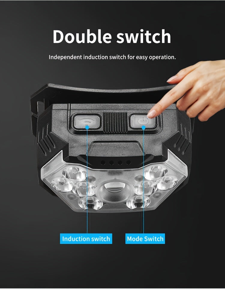 2pcs Super Bright 11000LUMEN Rechargeable Headlamp, Motion Sensor with 6 Lighting Modes for Outdoor Fishing & Camping, 9LED, White Red Light Flashlights