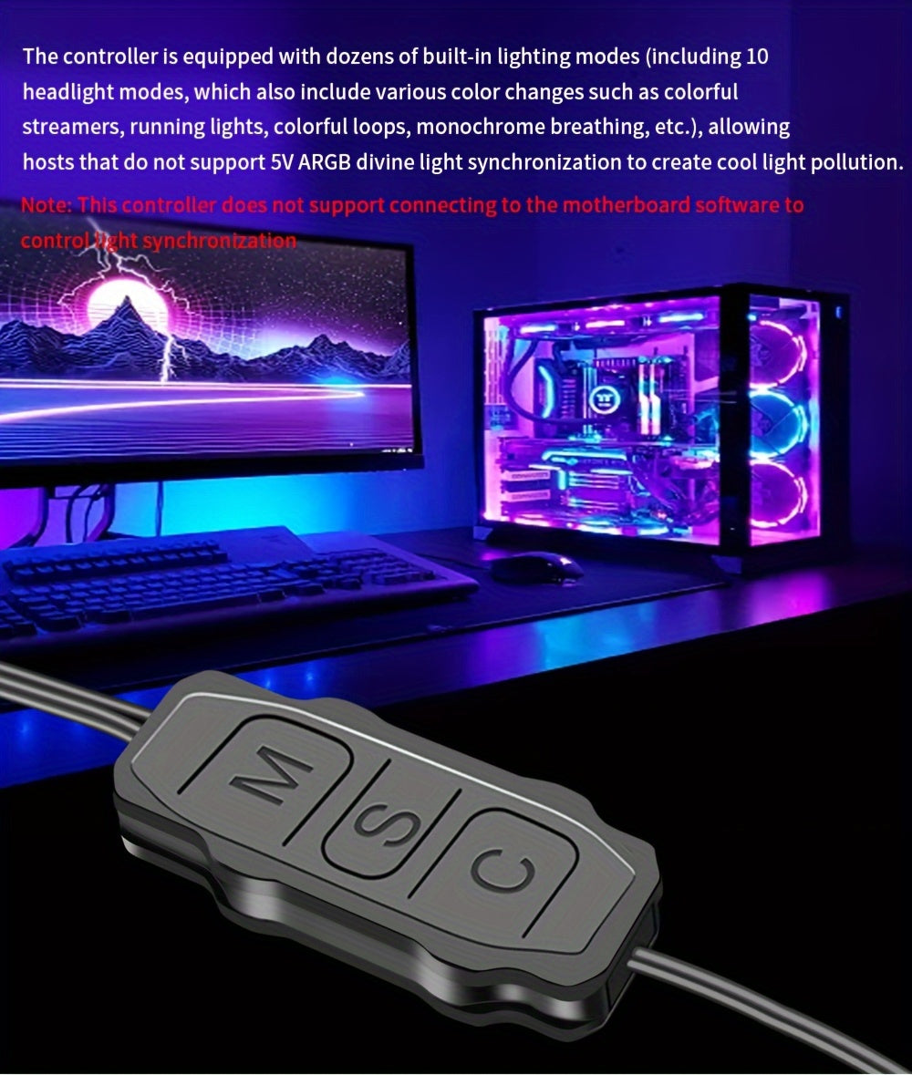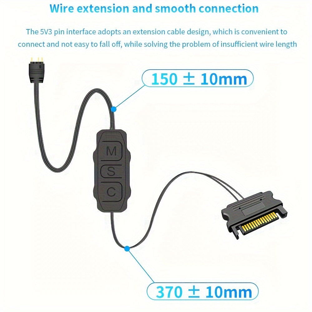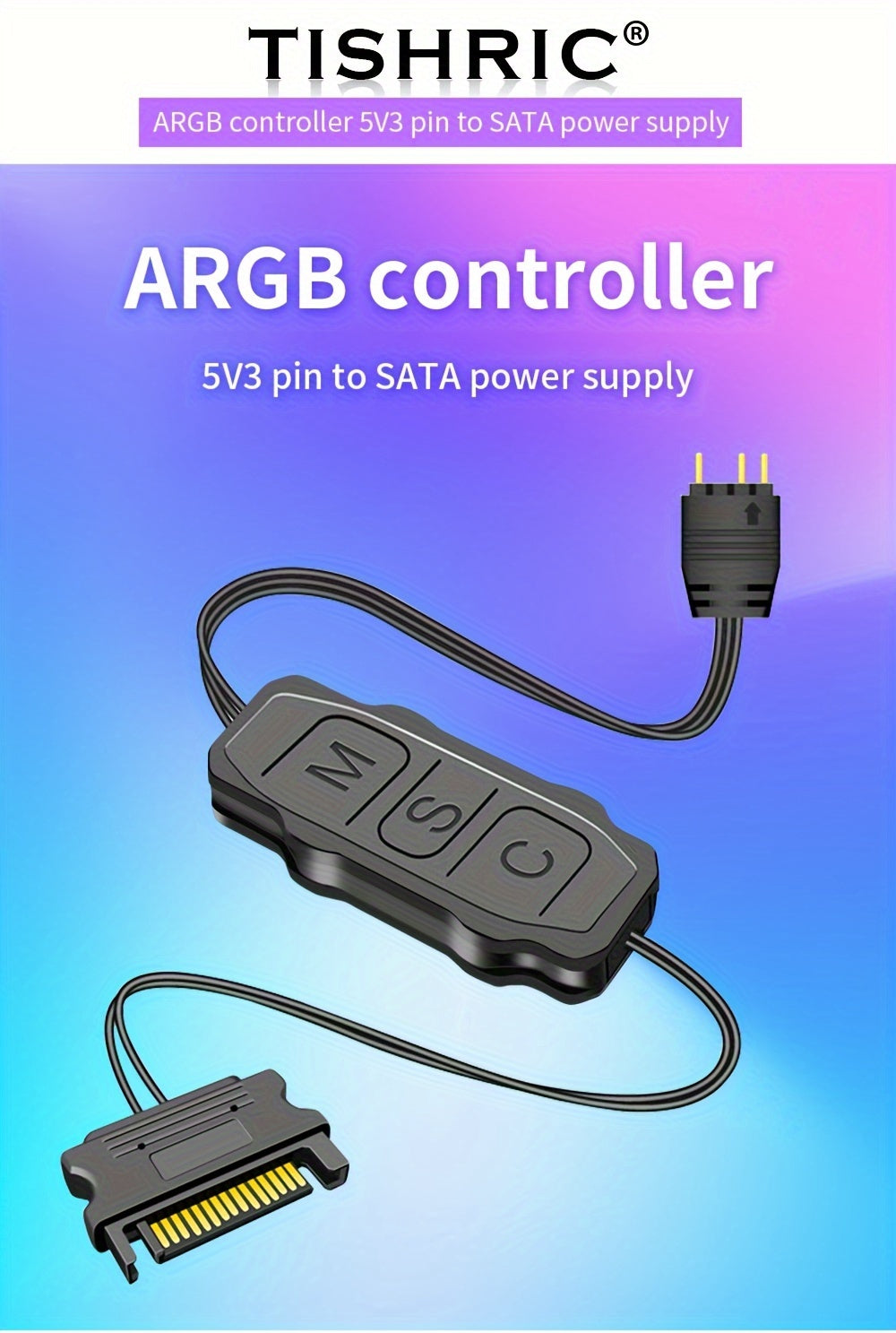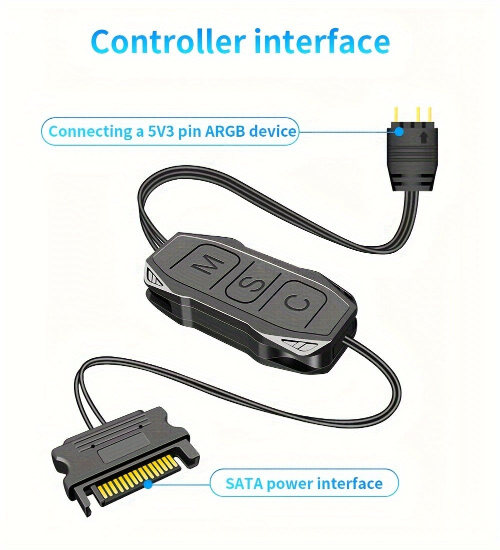 5V 3 Pin ARGB Controller Cable - Advanced RGB Lighting Control, Seamless Sync, Compact Handheld Operation, and Extended Lengthen Cable - Universally Compatible for Customizing Cooling Fan Light Strips