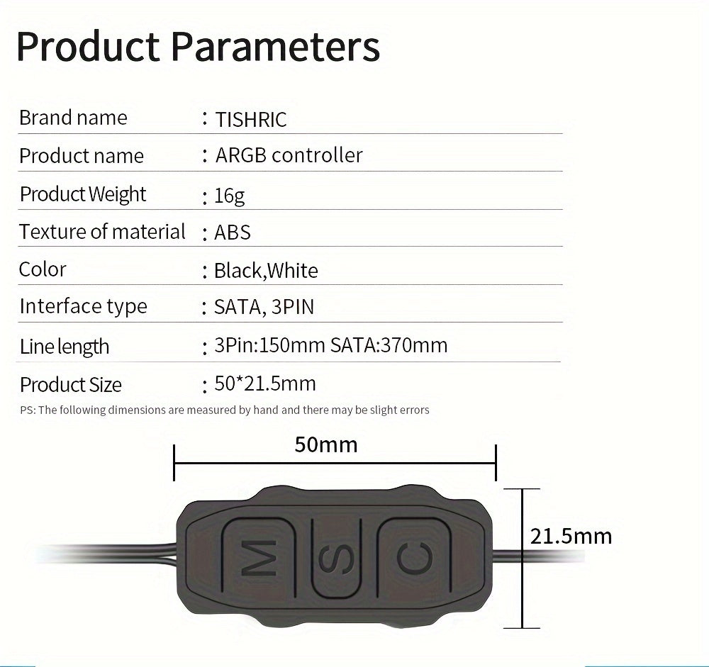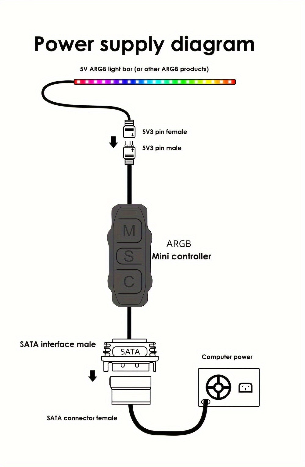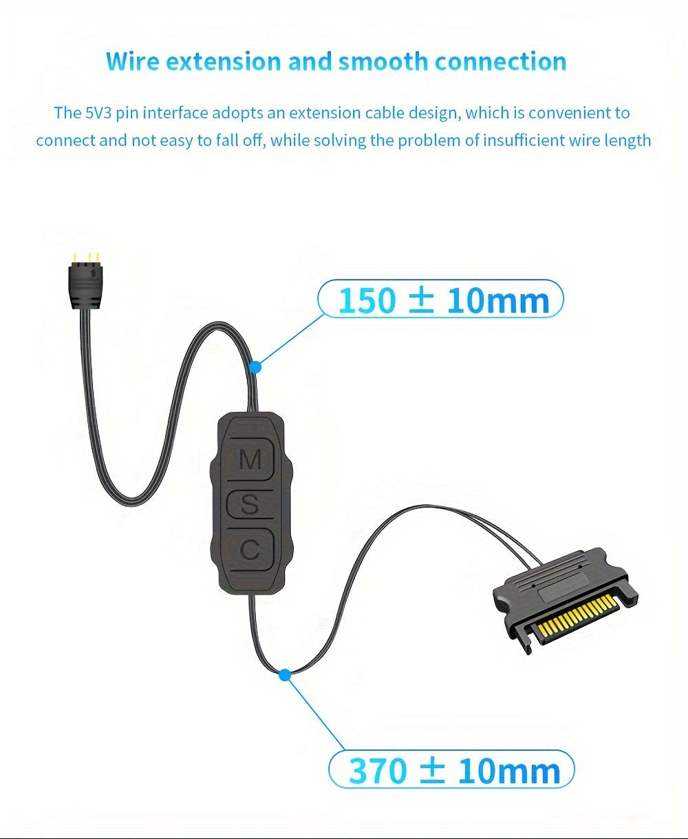 5V 3 Pin ARGB Controller Cable - Advanced RGB Lighting Control, Seamless Sync, Compact Handheld Operation, and Extended Lengthen Cable - Universally Compatible for Customizing Cooling Fan Light Strips