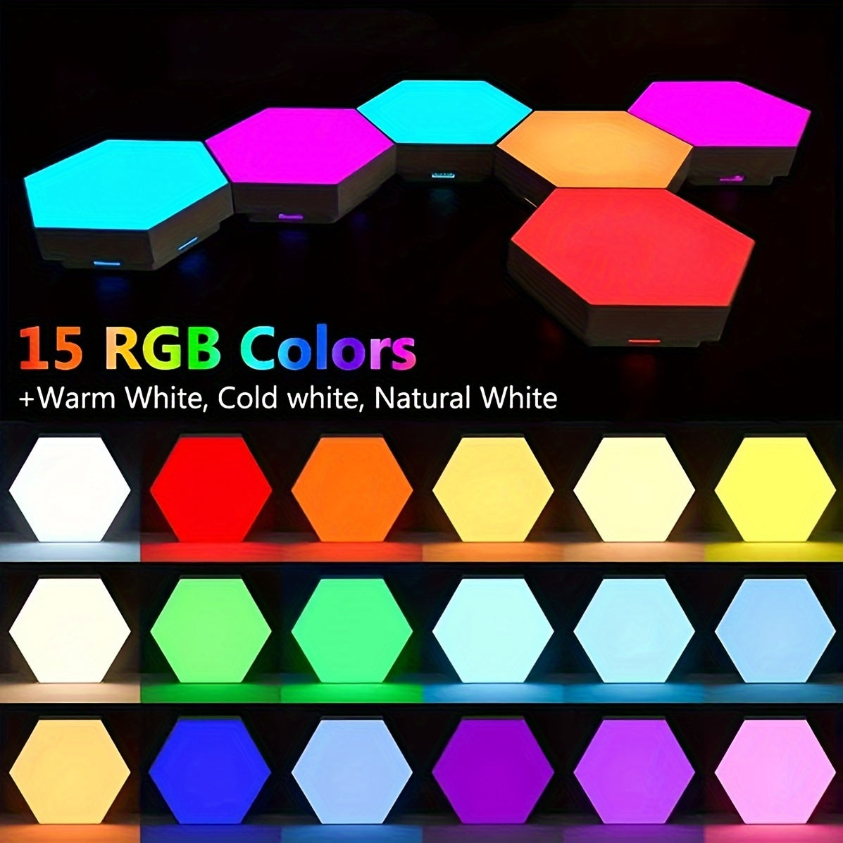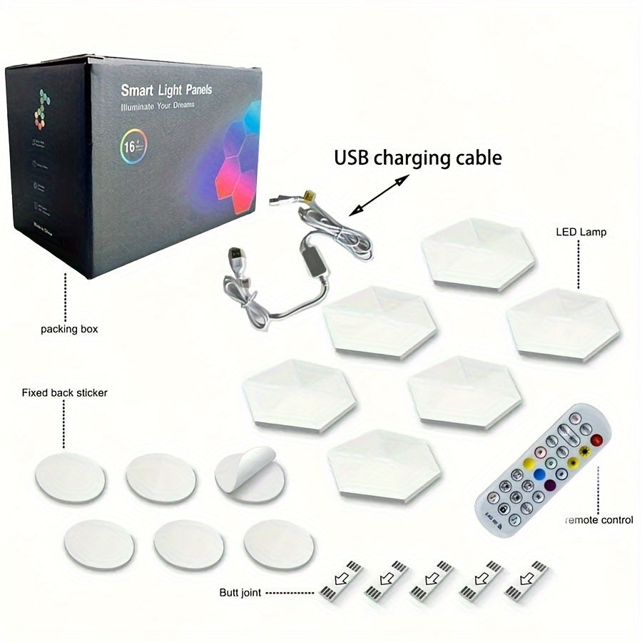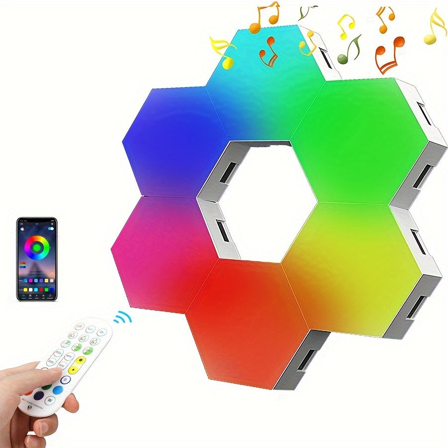 AmbiSync HexaGlow 10pc LED Wall Lights: USB-Powered, 16 Colors, App & Music Control, Remote, Modern Decor Lighting