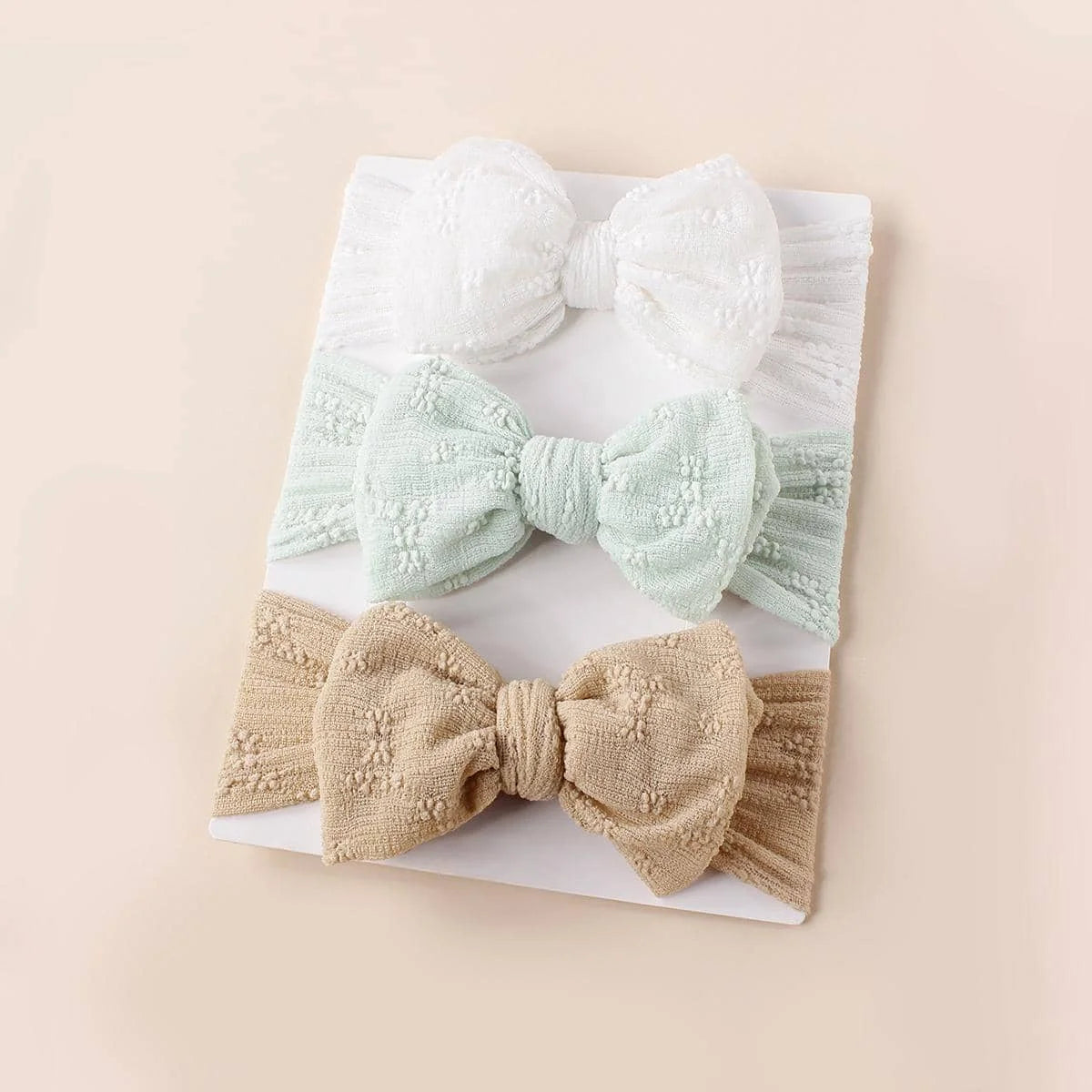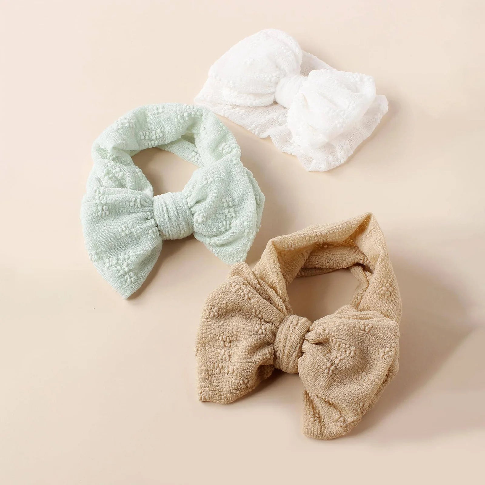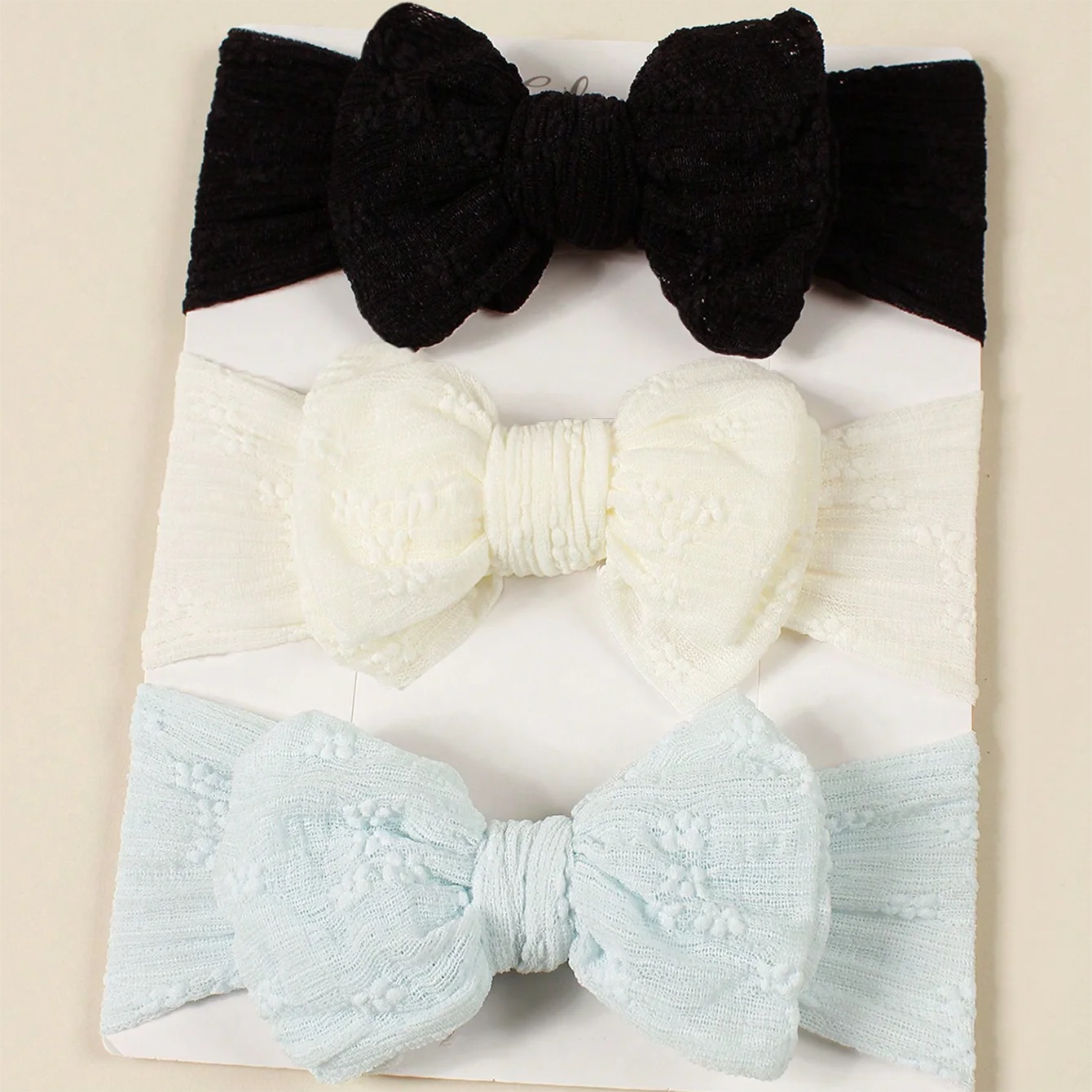 Bandeau en maille respirante et douce pour bébé, 3 pièces, avec nœud Double couche, haute élasticité, couvre-chef adapté aux nourrissons et aux jeunes enfants