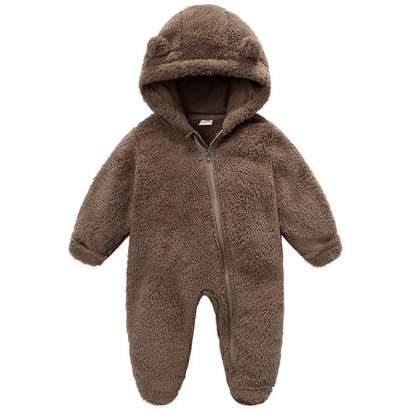 Barboteuse à capuche à manches longues pour nouveau-né garçon et fille, combinaison à fermeture éclair pour enfants, vêtements pour bébés, automne, hiver
