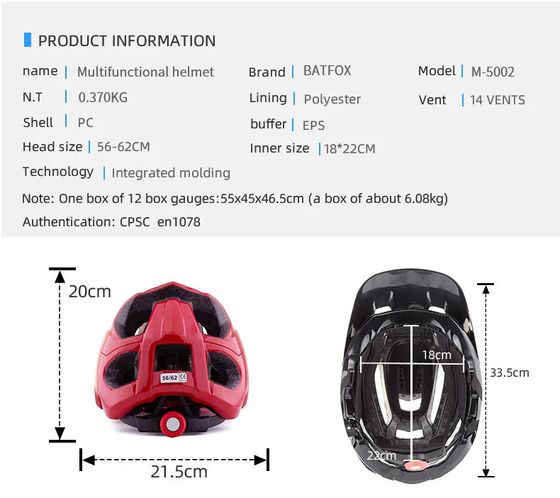 BATFOX-Casque de vélo pour homme, casque de vélo, casque de vélo de montagne, casque de vélo VTT, casquettes de vélo