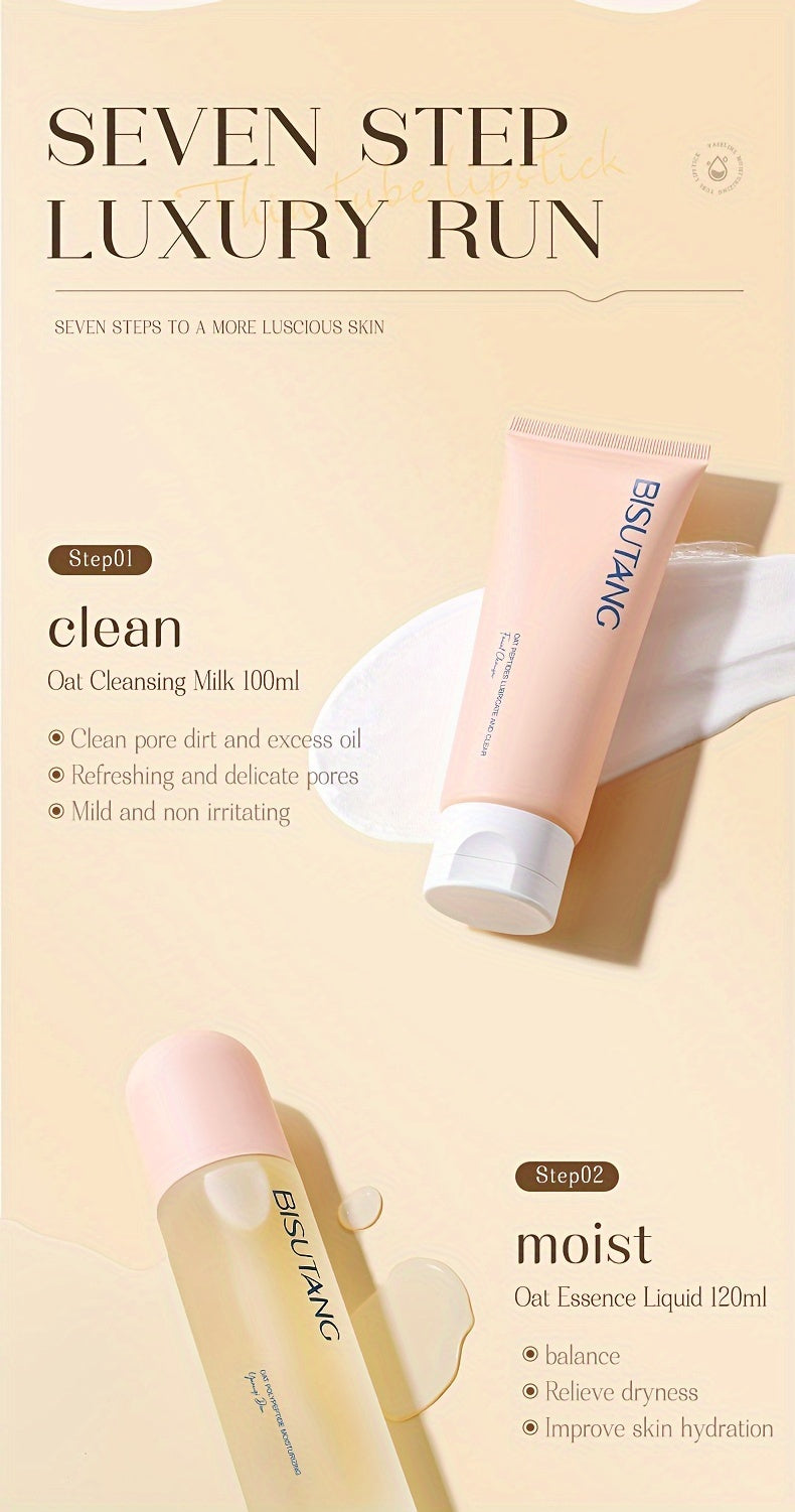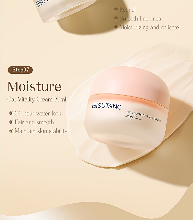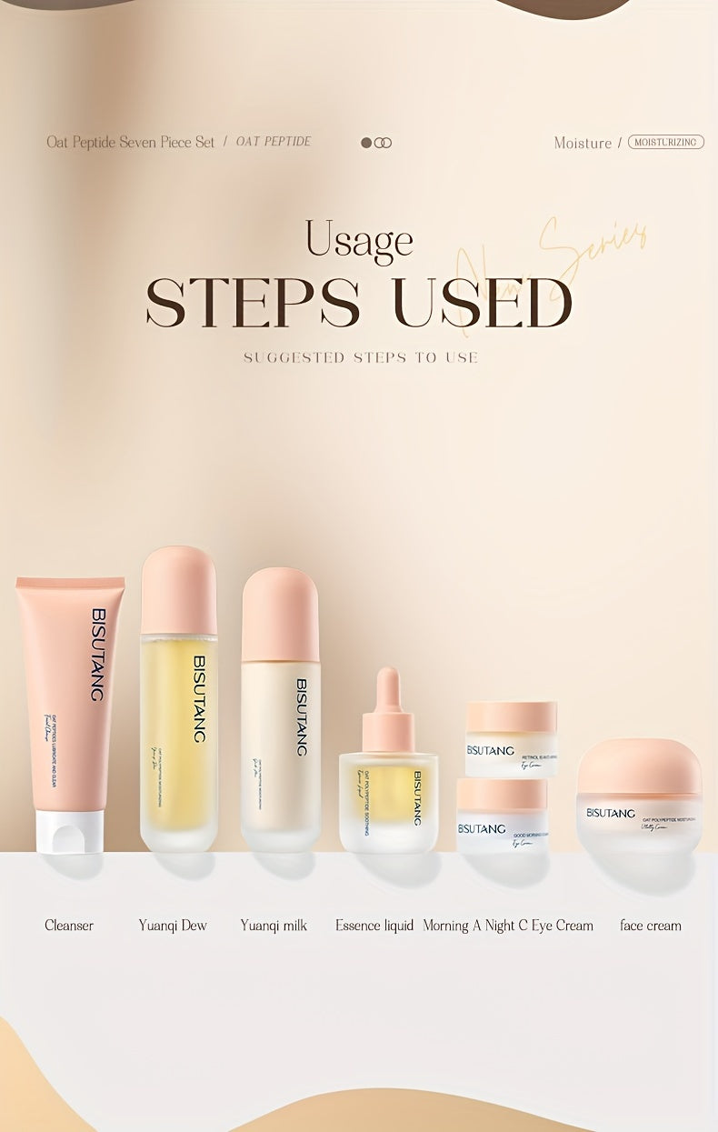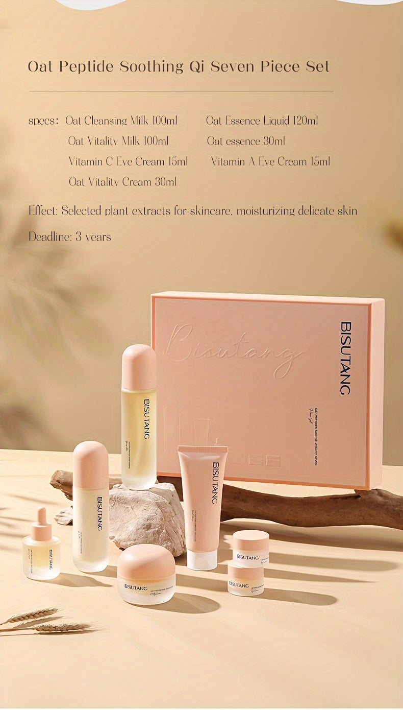 Bisutang Oat Peptide Vitality 7-Piece Skincare Set - Hypoallergenic Face Care Kit with Cleanser, Toner, Serum, Cream, Eye Cream: Nourishing Plant Squalane, Ideal Gift for Women for Mother's Day, Valentine's Day