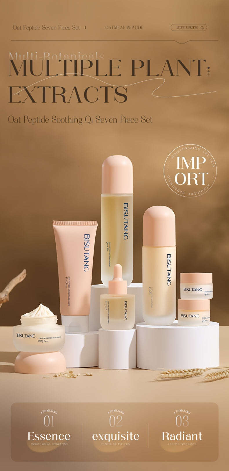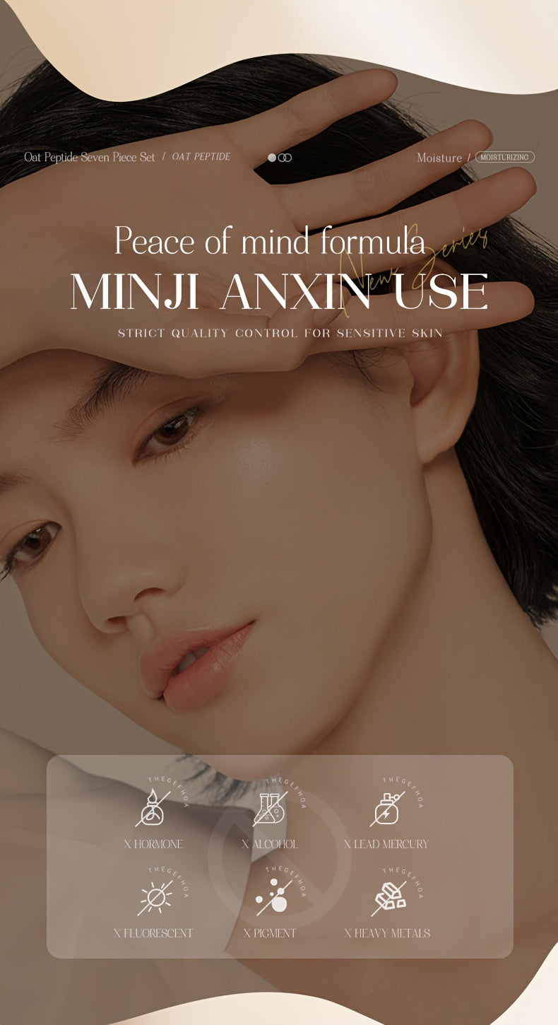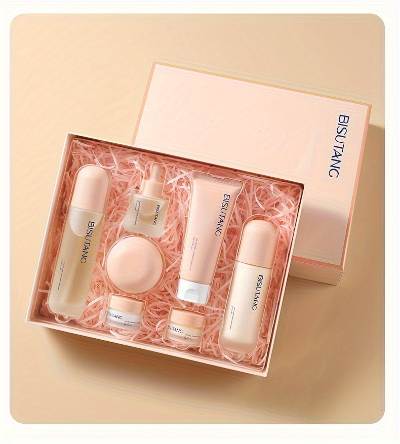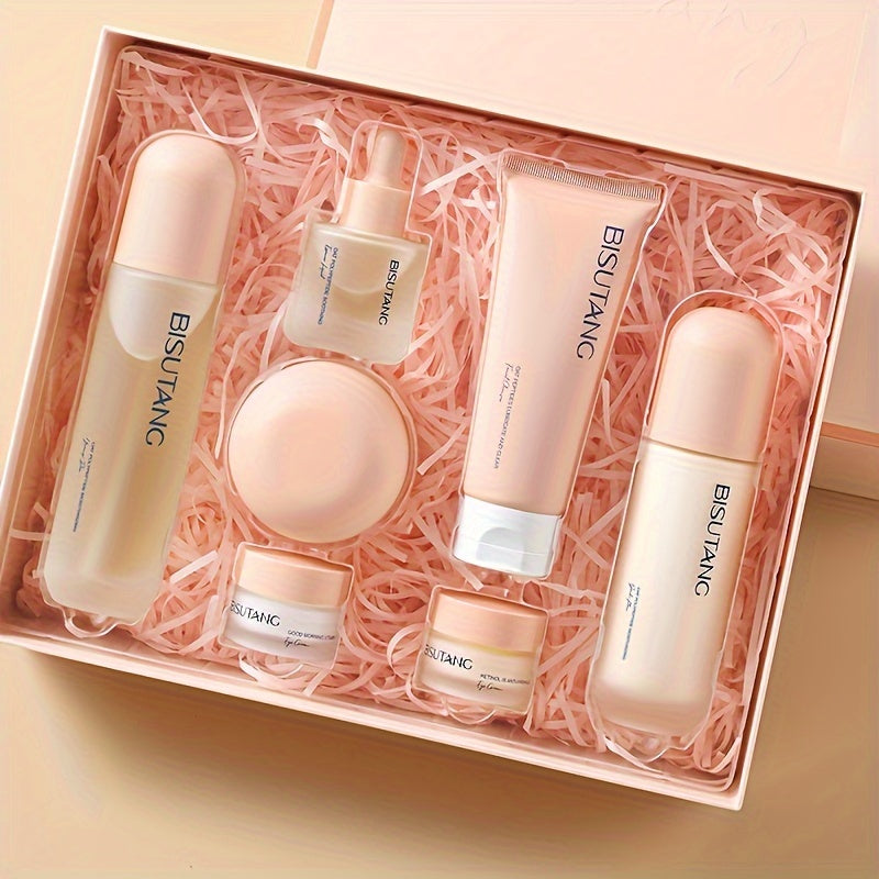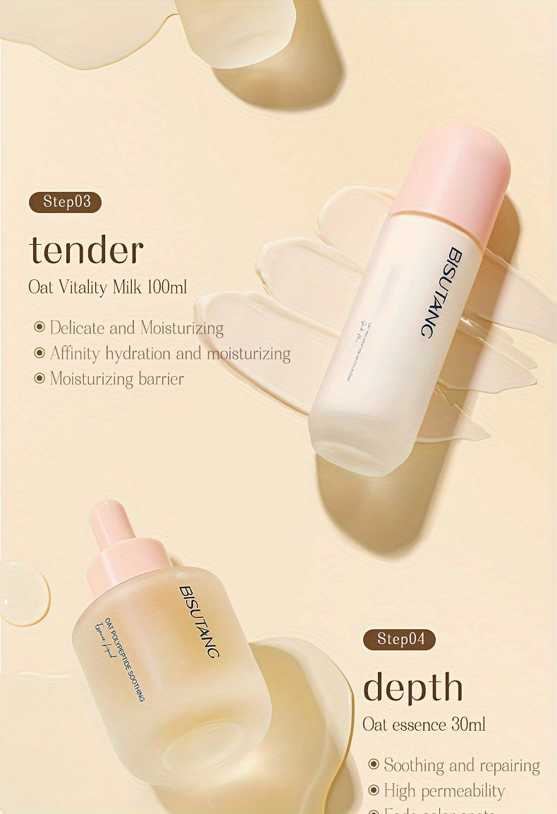 Bisutang Oat Peptide Vitality 7-Piece Skincare Set - Hypoallergenic Face Care Kit with Cleanser, Toner, Serum, Cream, Eye Cream: Nourishing Plant Squalane, Ideal Gift for Women for Mother's Day, Valentine's Day