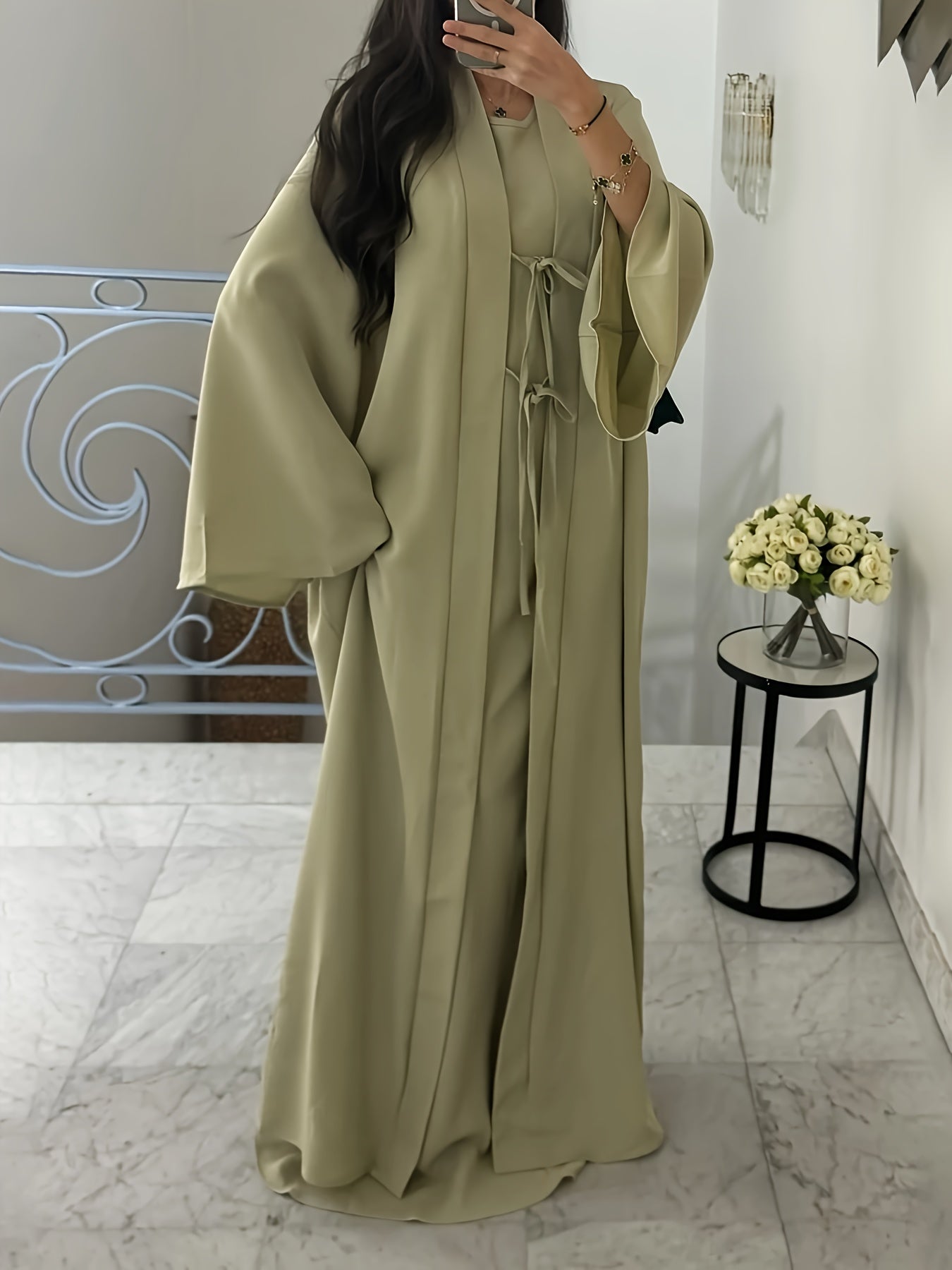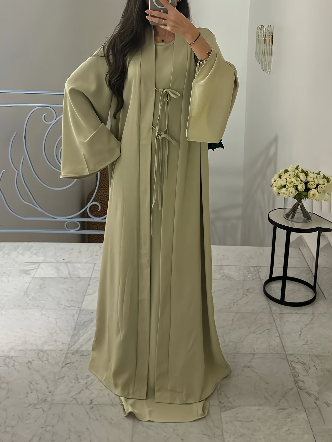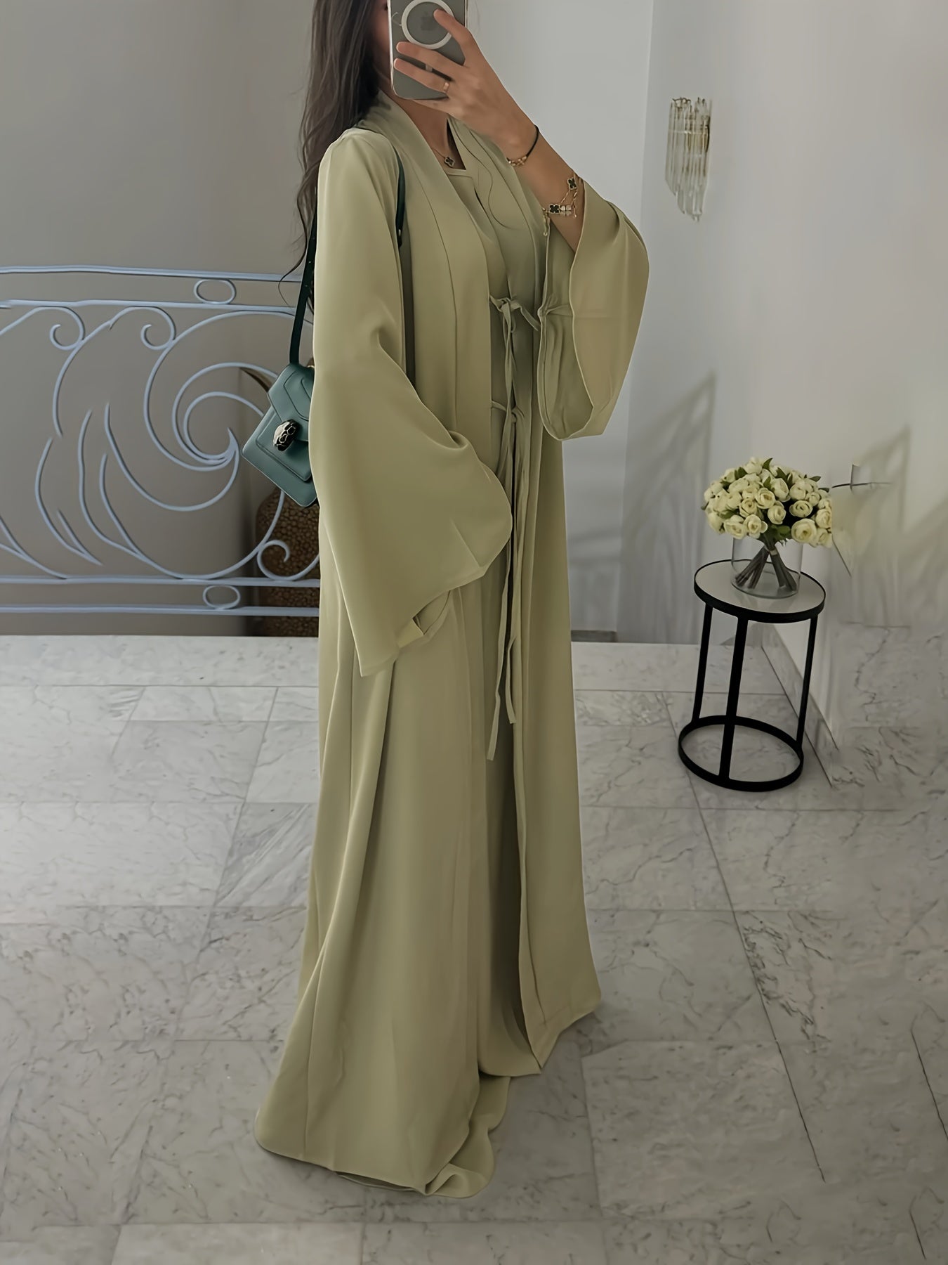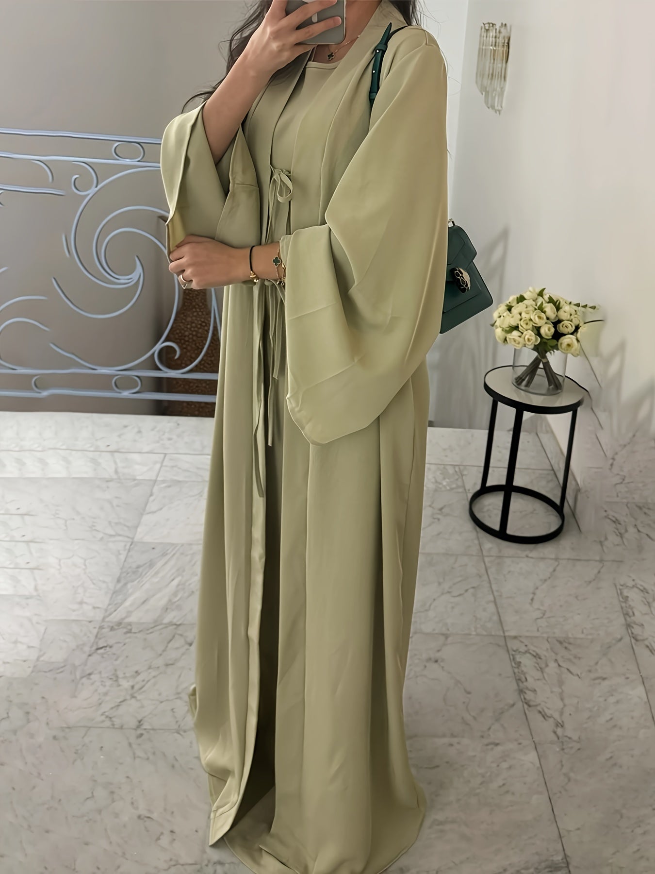 Chic Dress and Tie-Neck Cardigan Two-Piece Set