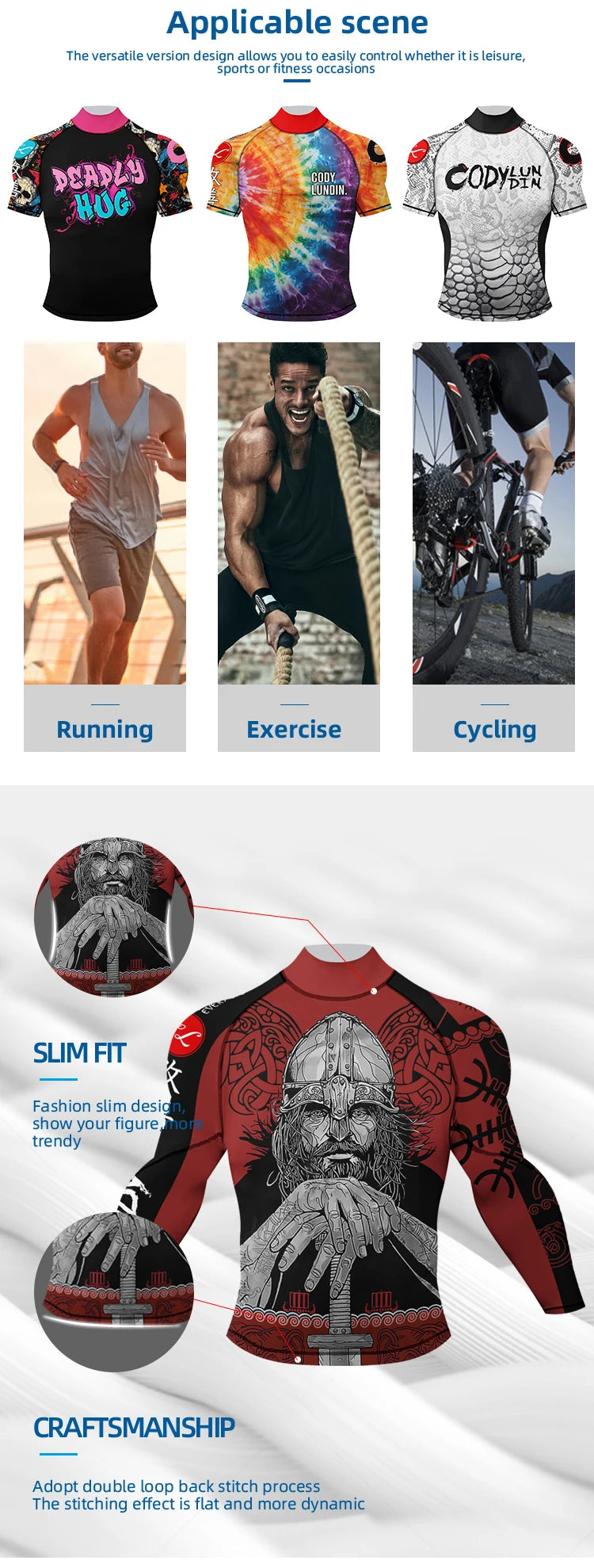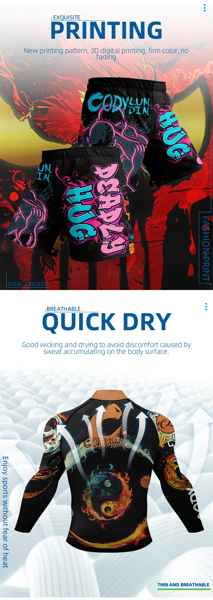 6. Cet ensemble est un t-shirt parfait pour les sports extrêmes, le fitness, le fitness mixte, les arts martiaux, tels que : MMA, BJJ, Jiu-Jitsu, Combat, Krav Maga, Taekwondo, Muay Thai.Convient également à toutes sortes de sports nautiques, comme un tee de surf.