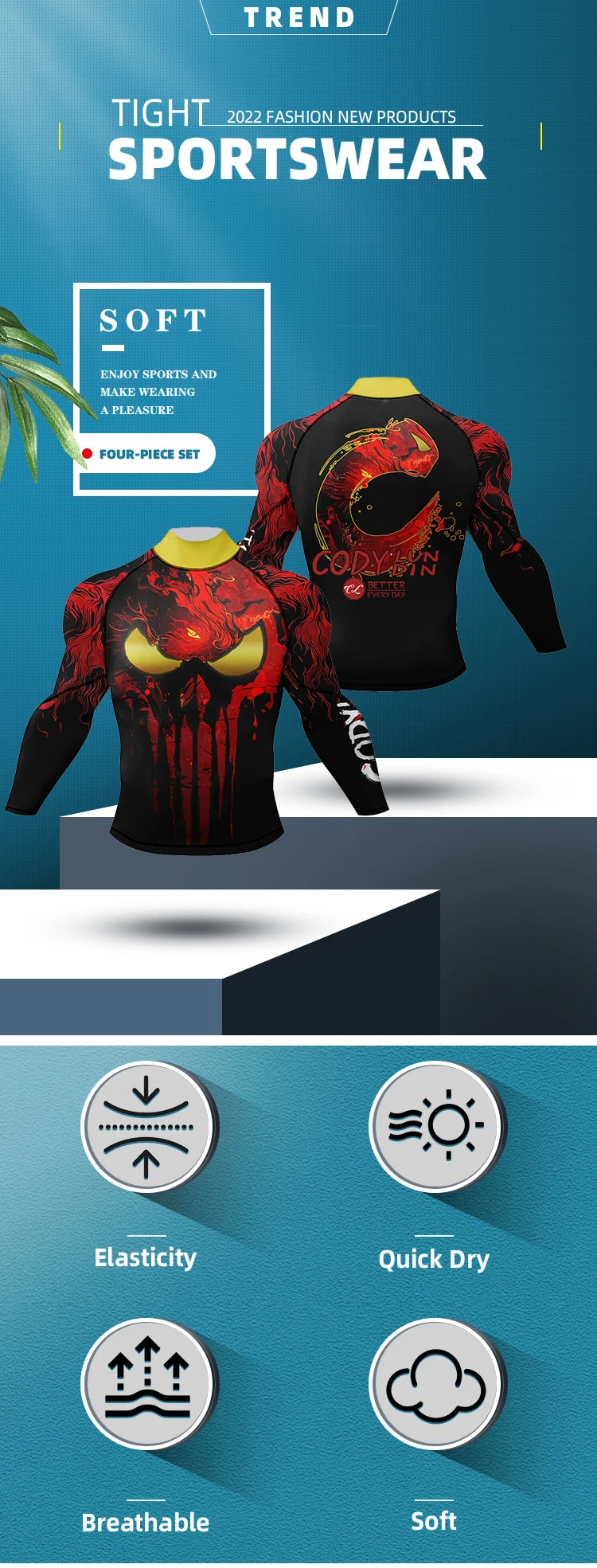 4.Les coutures latérales accentuent les lignes musculaires de votre poitrine et de votre taille.Les panneaux en maille sous les bras offrent une grande respirabilité, dispersant la chaleur de votre corps.Les sangles en silicone maintiennent la combinaison solaire en place et ne flottent pas de haut en bas pendant le combat.