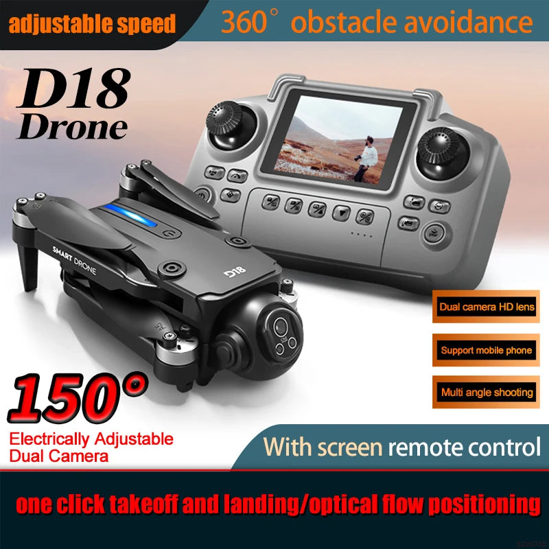 Drone de contrôle d'écran D18, moteur sans balais, quatre côtés d'évitement d'obstacles, flux optique 5G WiFi FPV, avion de photographie aérienne