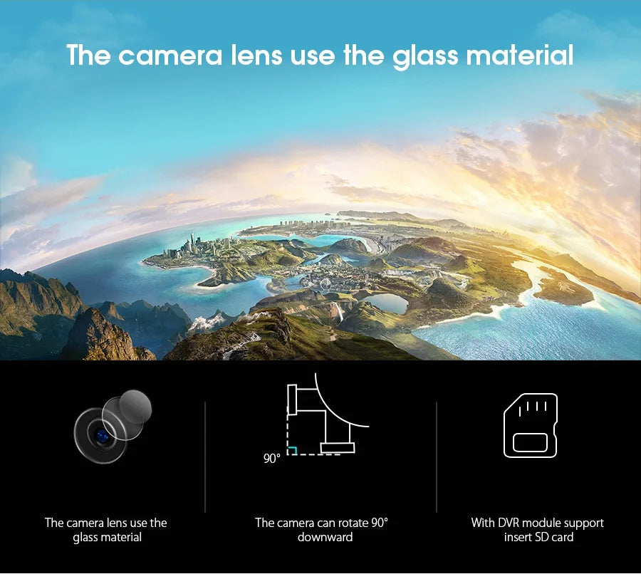 - There have 2 cameras can be choose. With 1080P or 4K wide angle camera give wide high denfinition pictures and video.