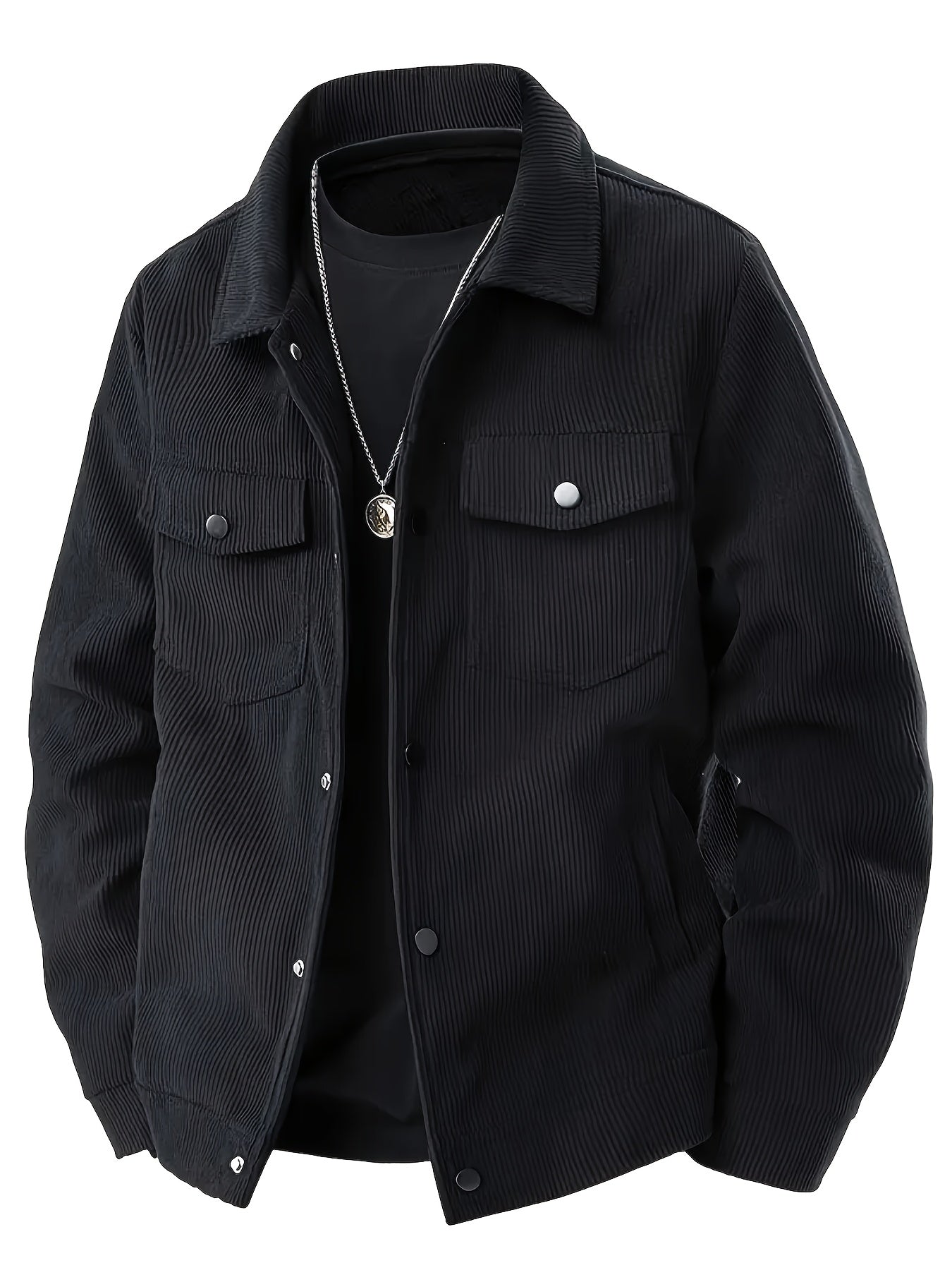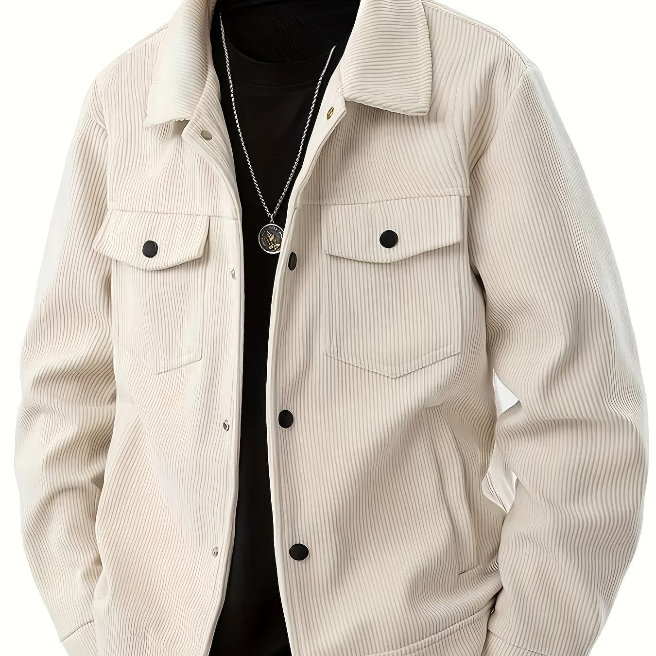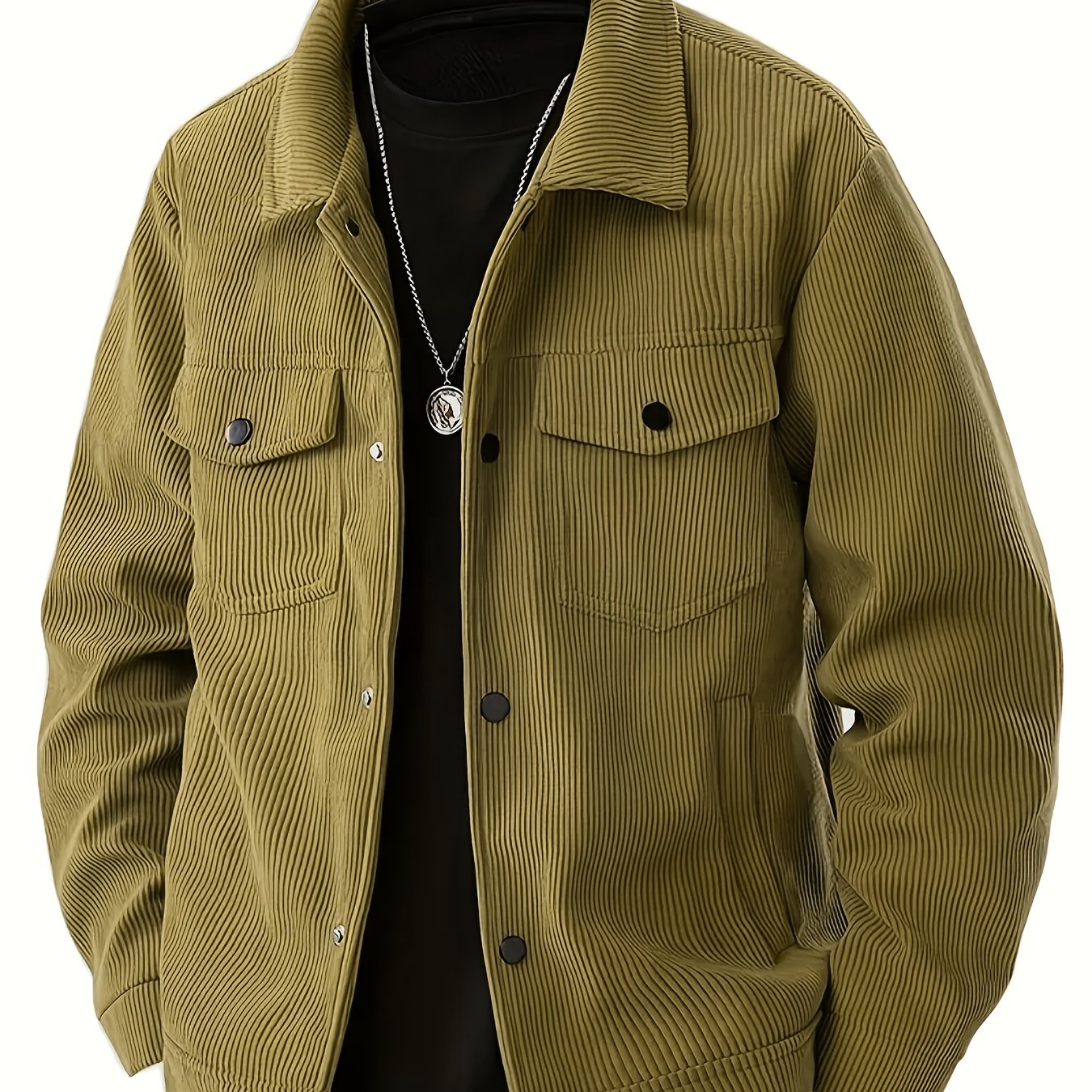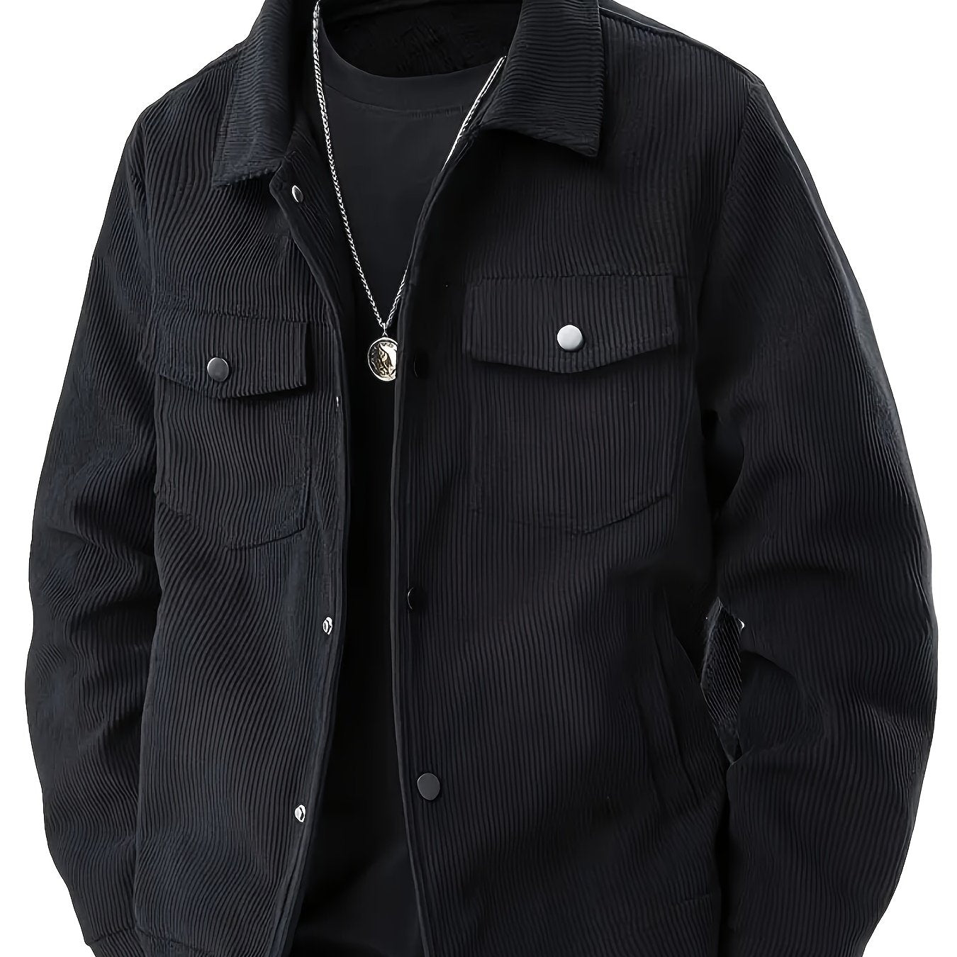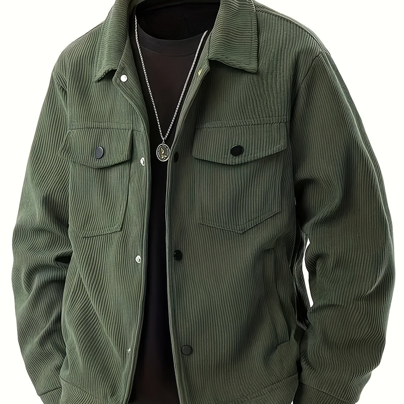 Elson OBM Men's Flannel Jacket - Autumn/Winter Warm Turn- Collar, Multi-Pocket Design with Button Closure, Perfect for Casual and Casual Attire