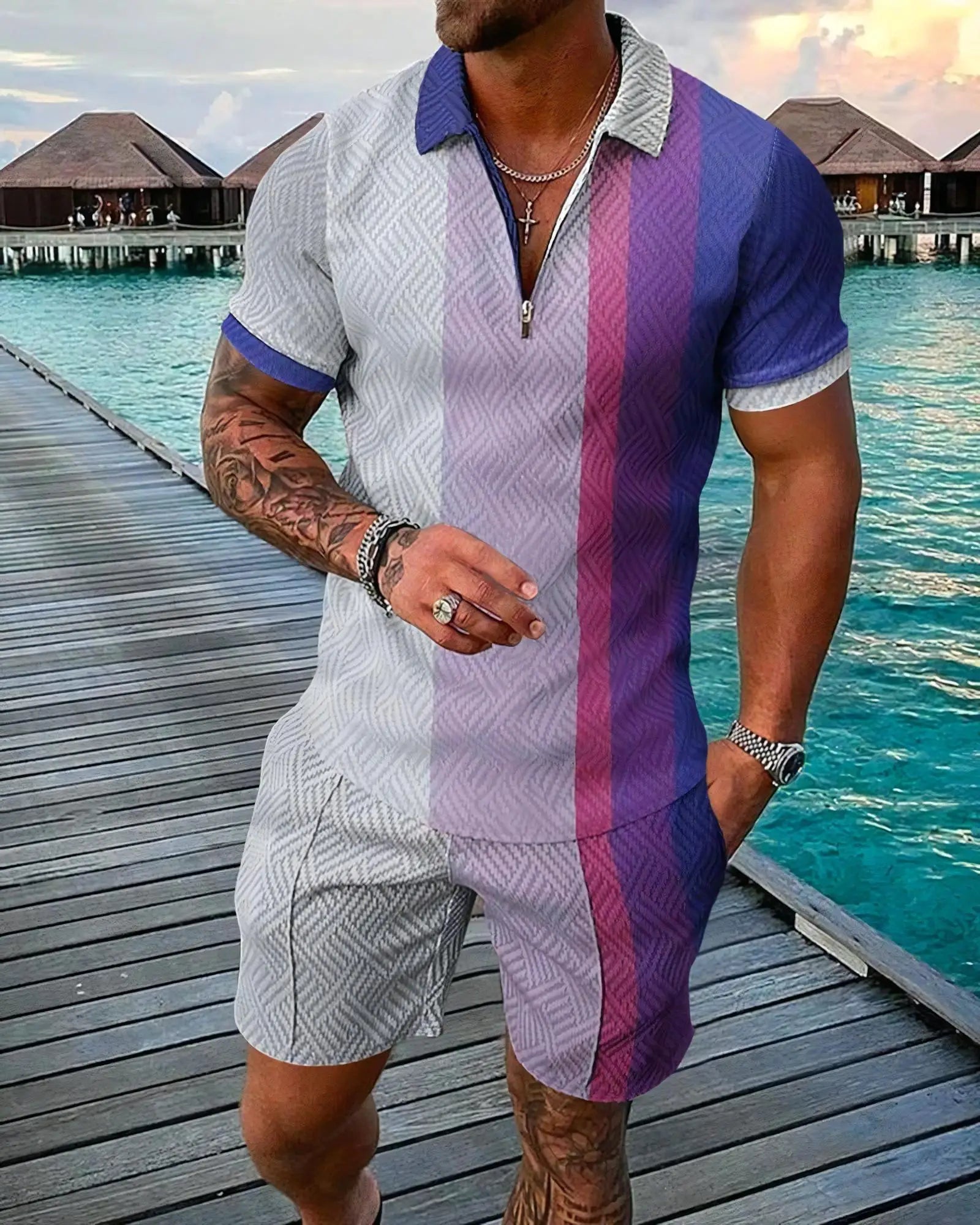 Style 21: Summer Zip Short Sleeve Polo Shirts Shorts Men's Sets