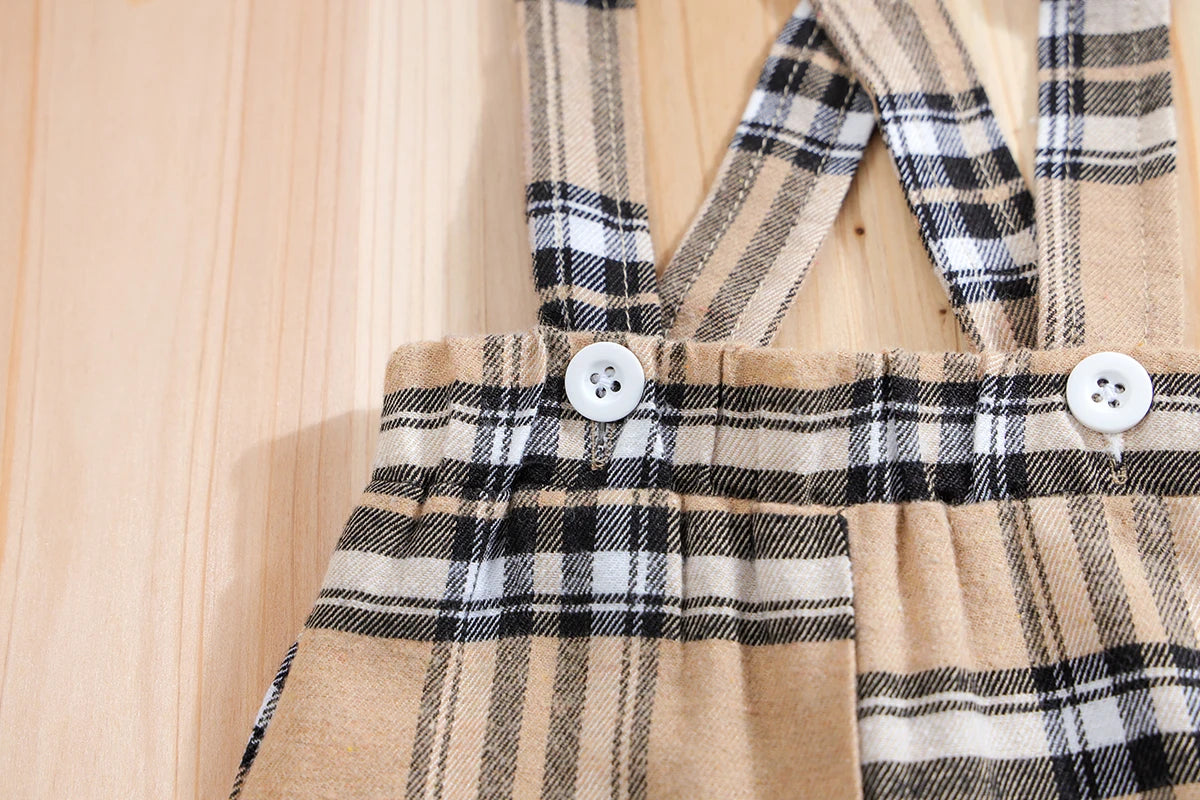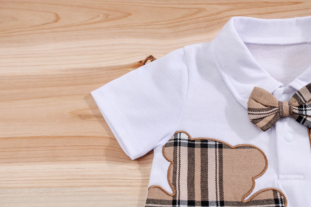 IURNXB – ensemble de vêtements pour bébé, 2 pièces, manches courtes, body ours à carreaux + pantalon à bretelles, tenues pour nouveau-né de 1 à 18 mois