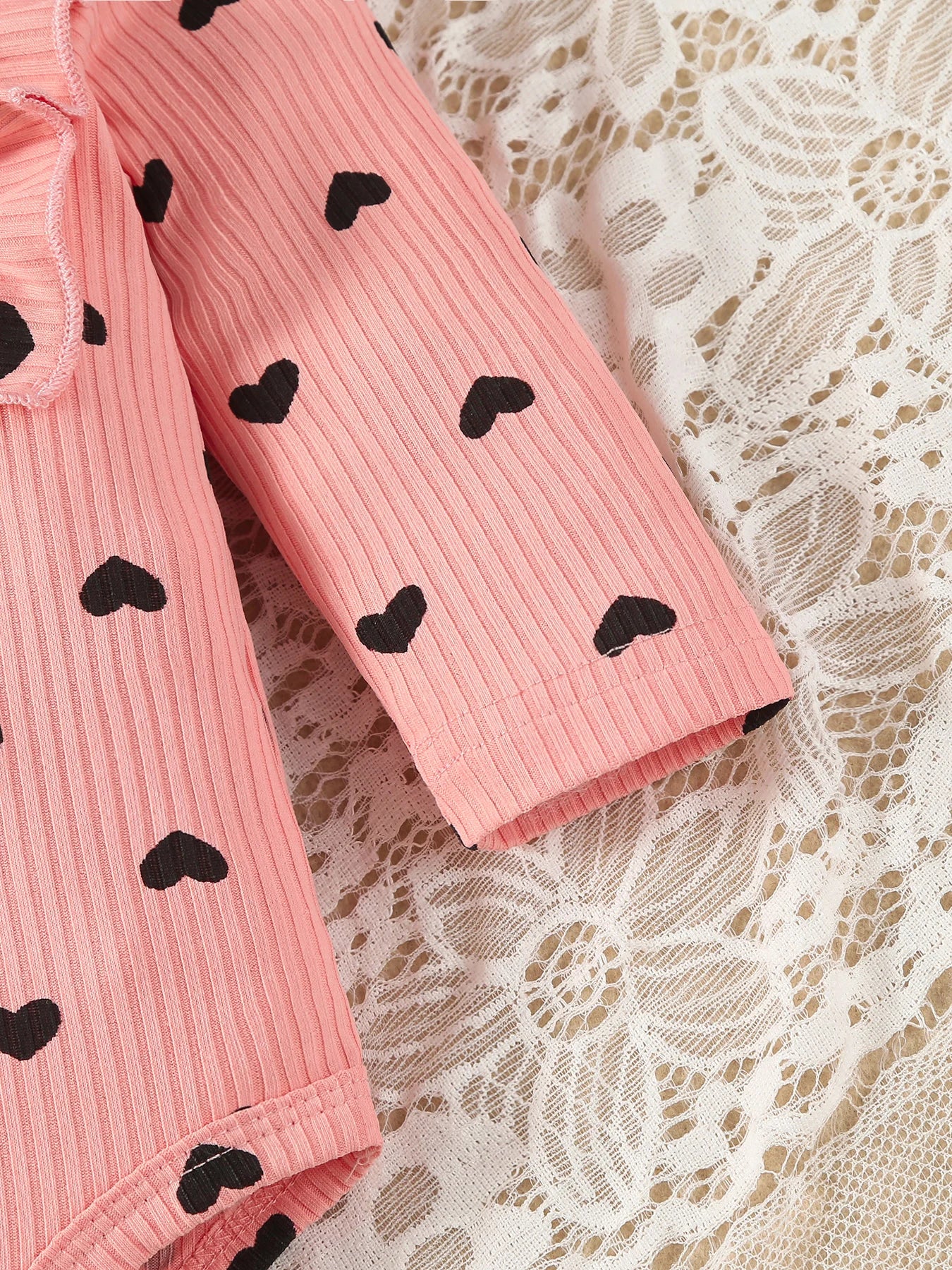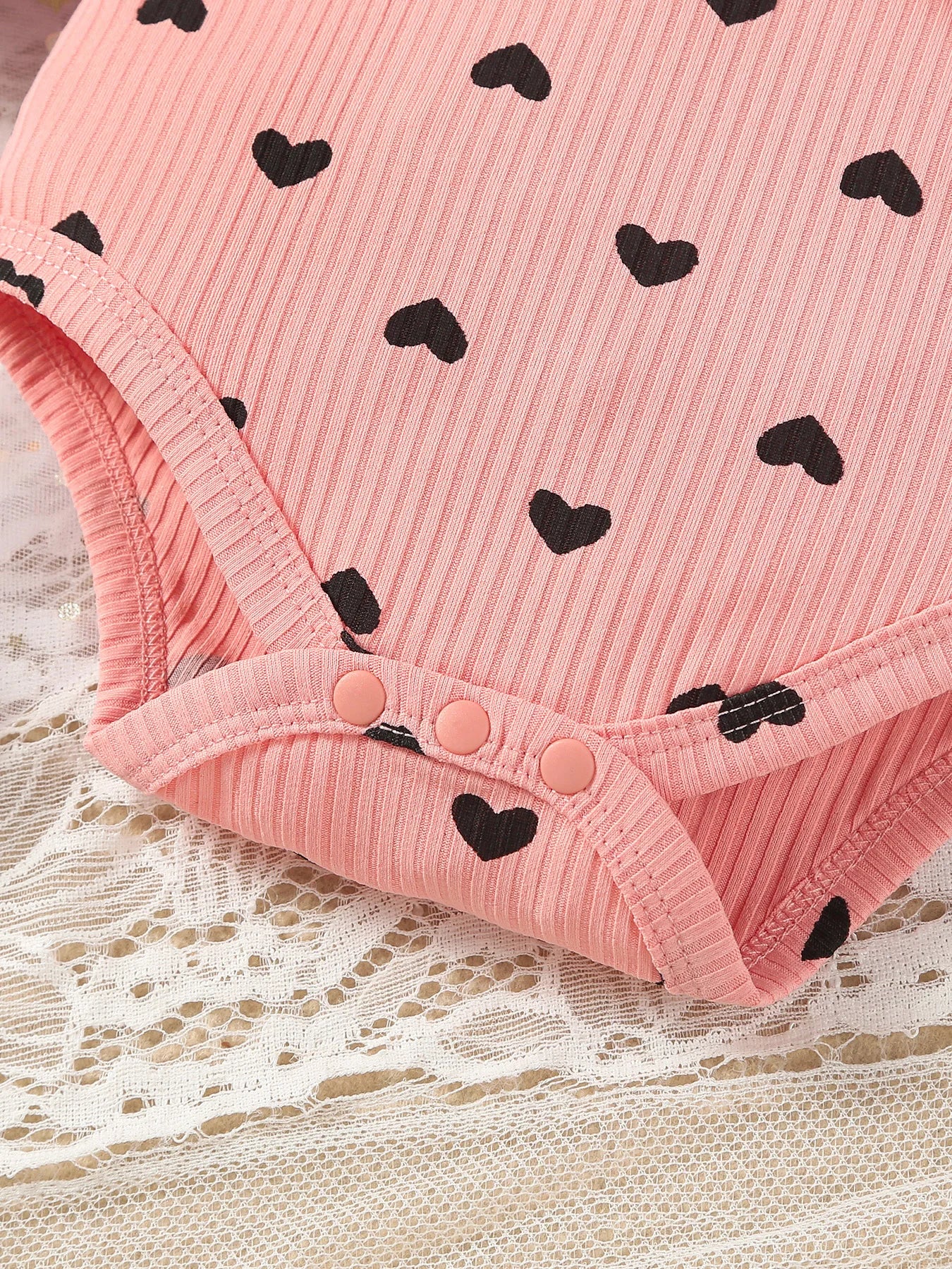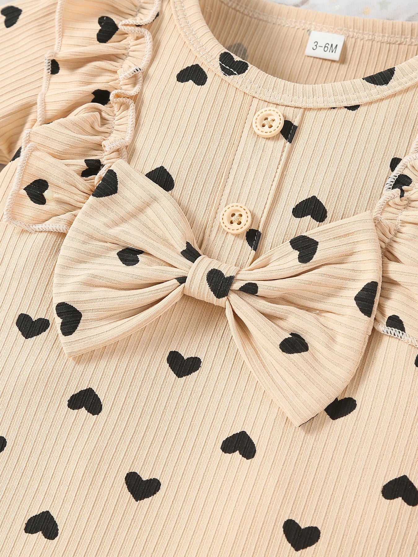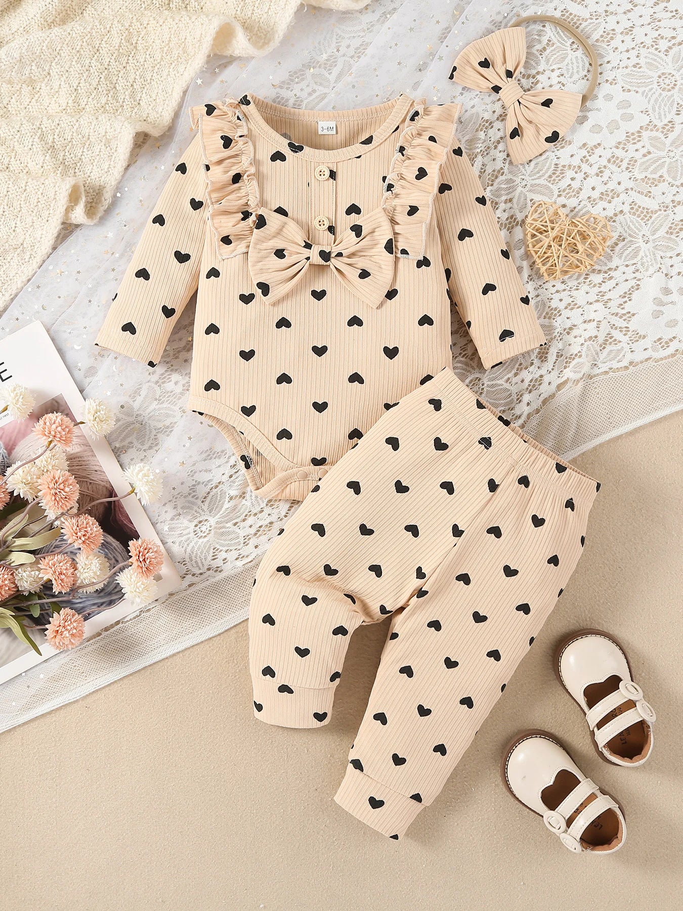 Kukitty – ensemble de vêtements 3 pièces pour nouveau-né fille, barboteuse à manches longues, imprimé cœur, haut et pantalon, bandeau, tenues en tricot