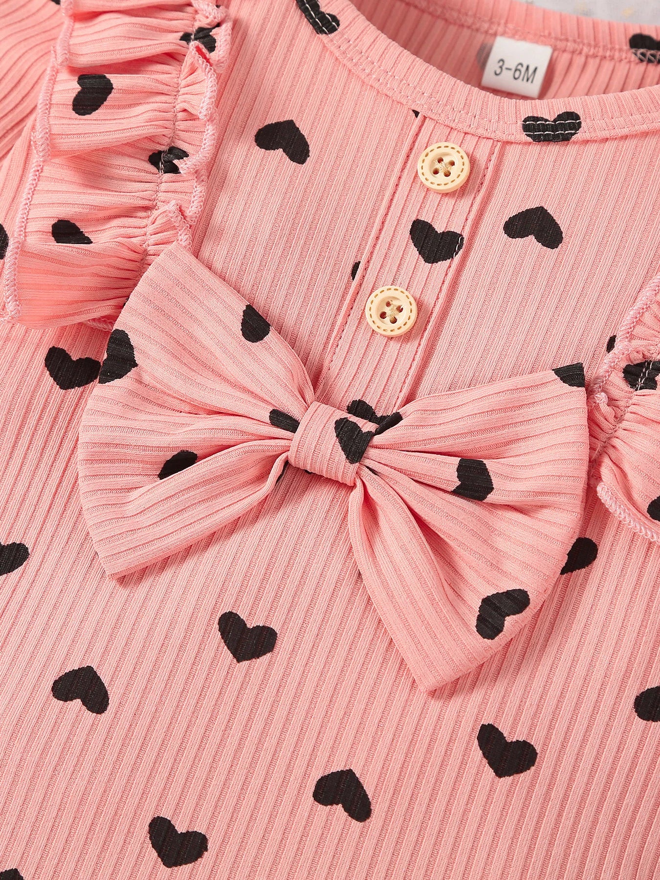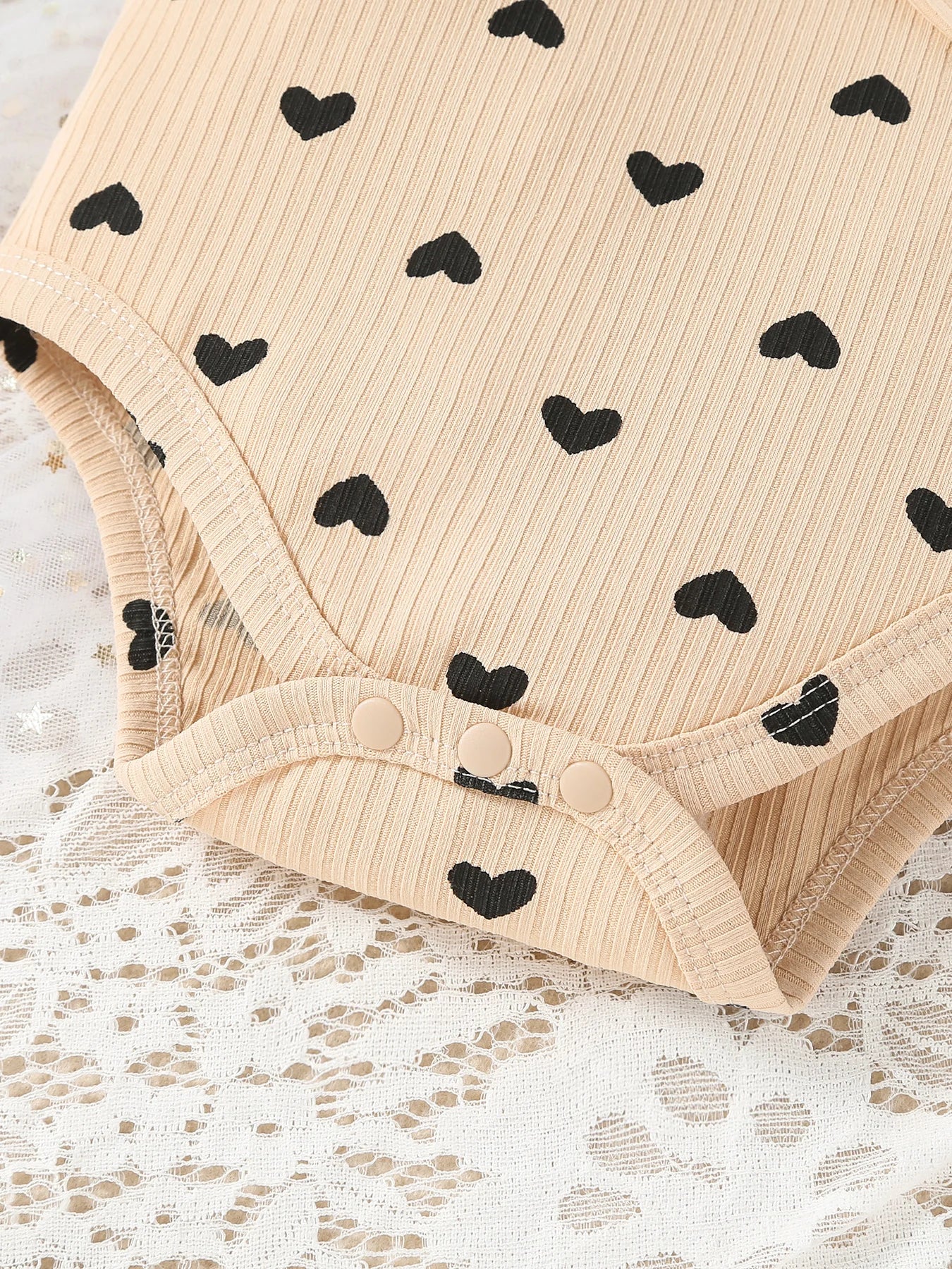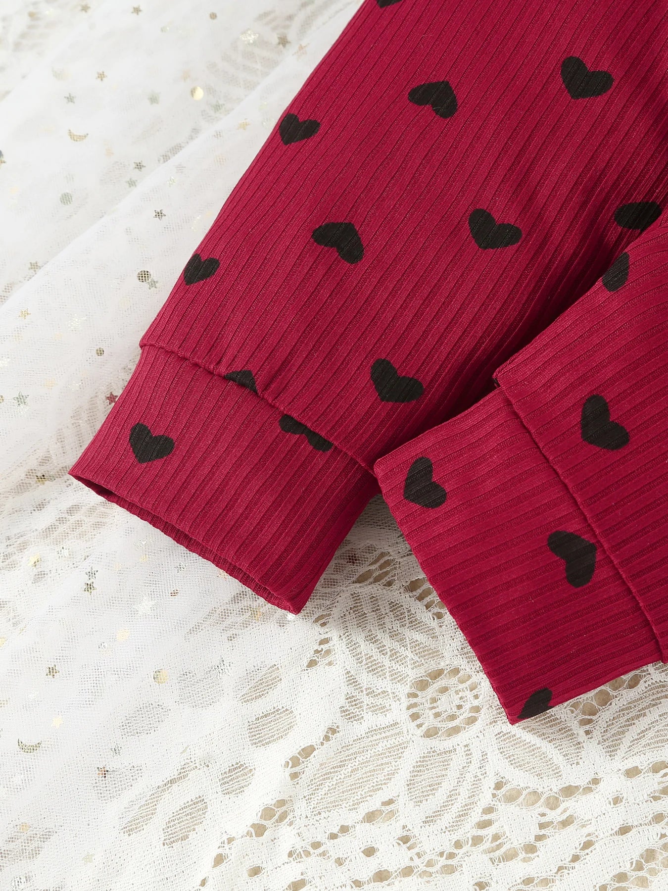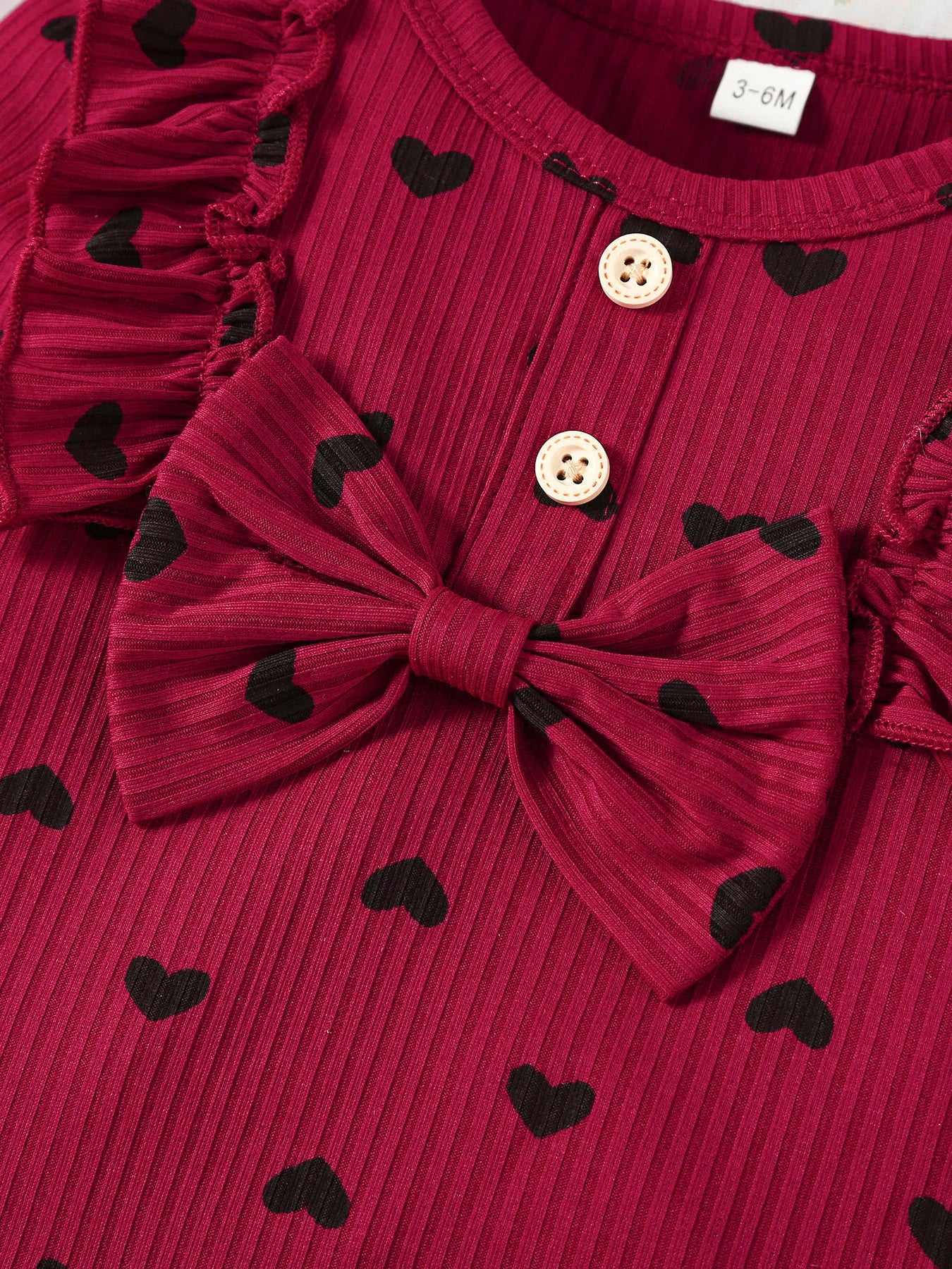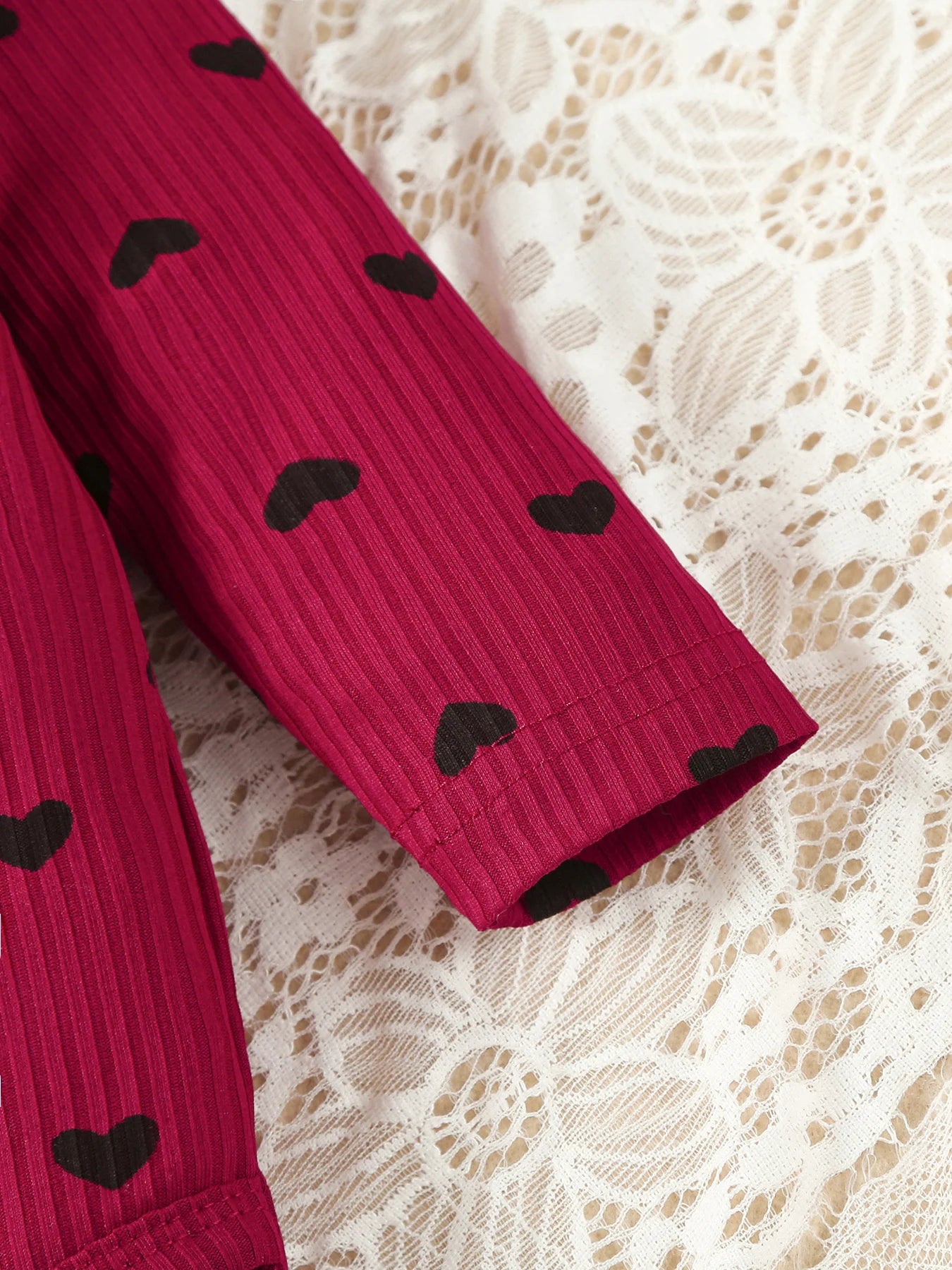 Kukitty – ensemble de vêtements 3 pièces pour nouveau-né fille, barboteuse à manches longues, imprimé cœur, haut et pantalon, bandeau, tenues en tricot