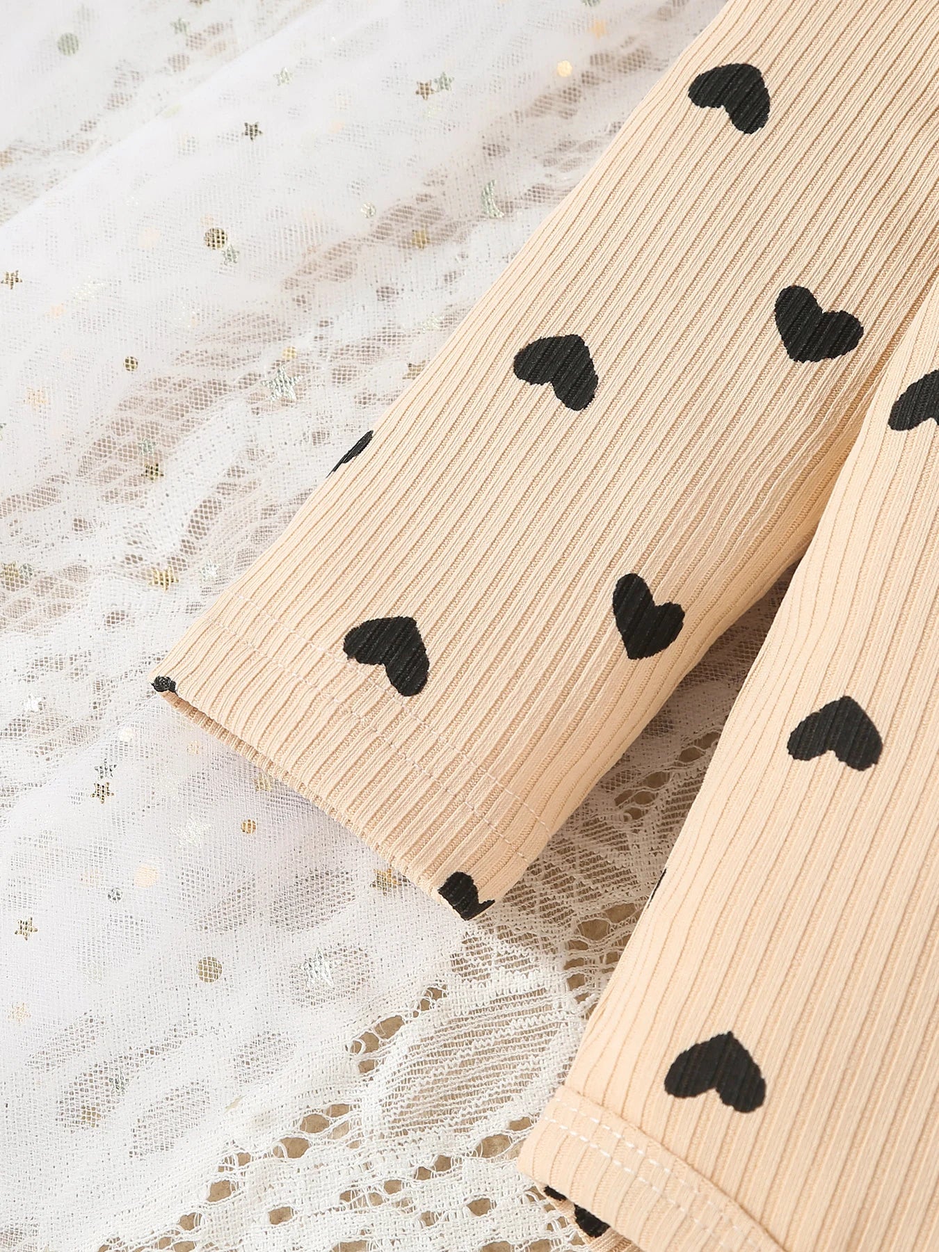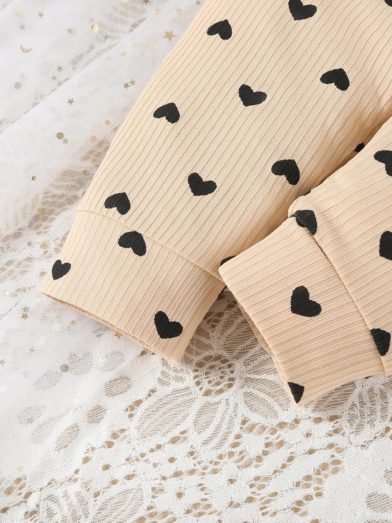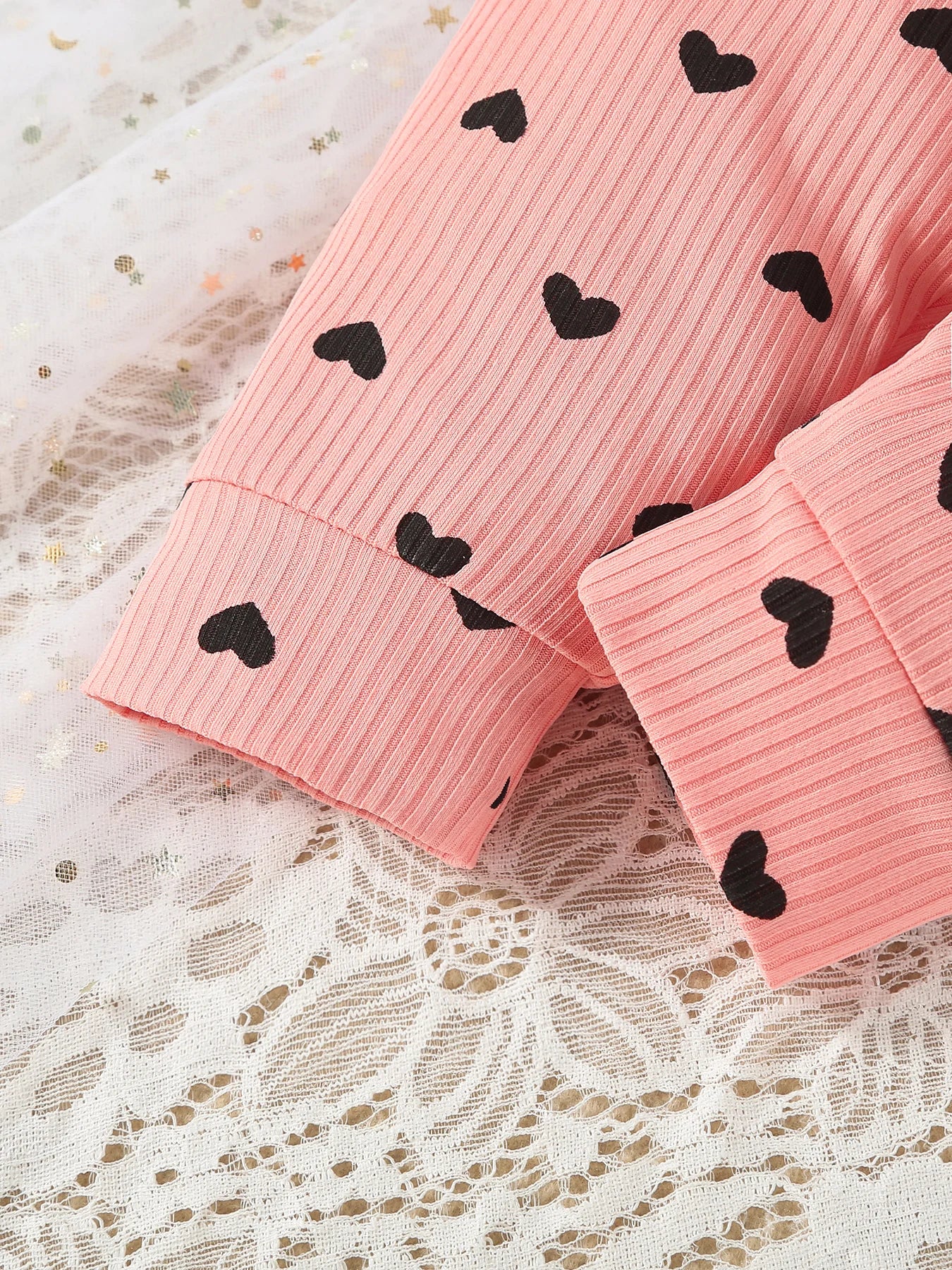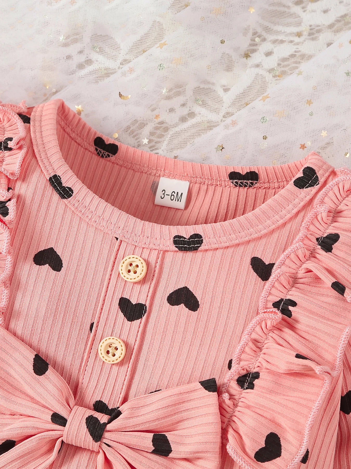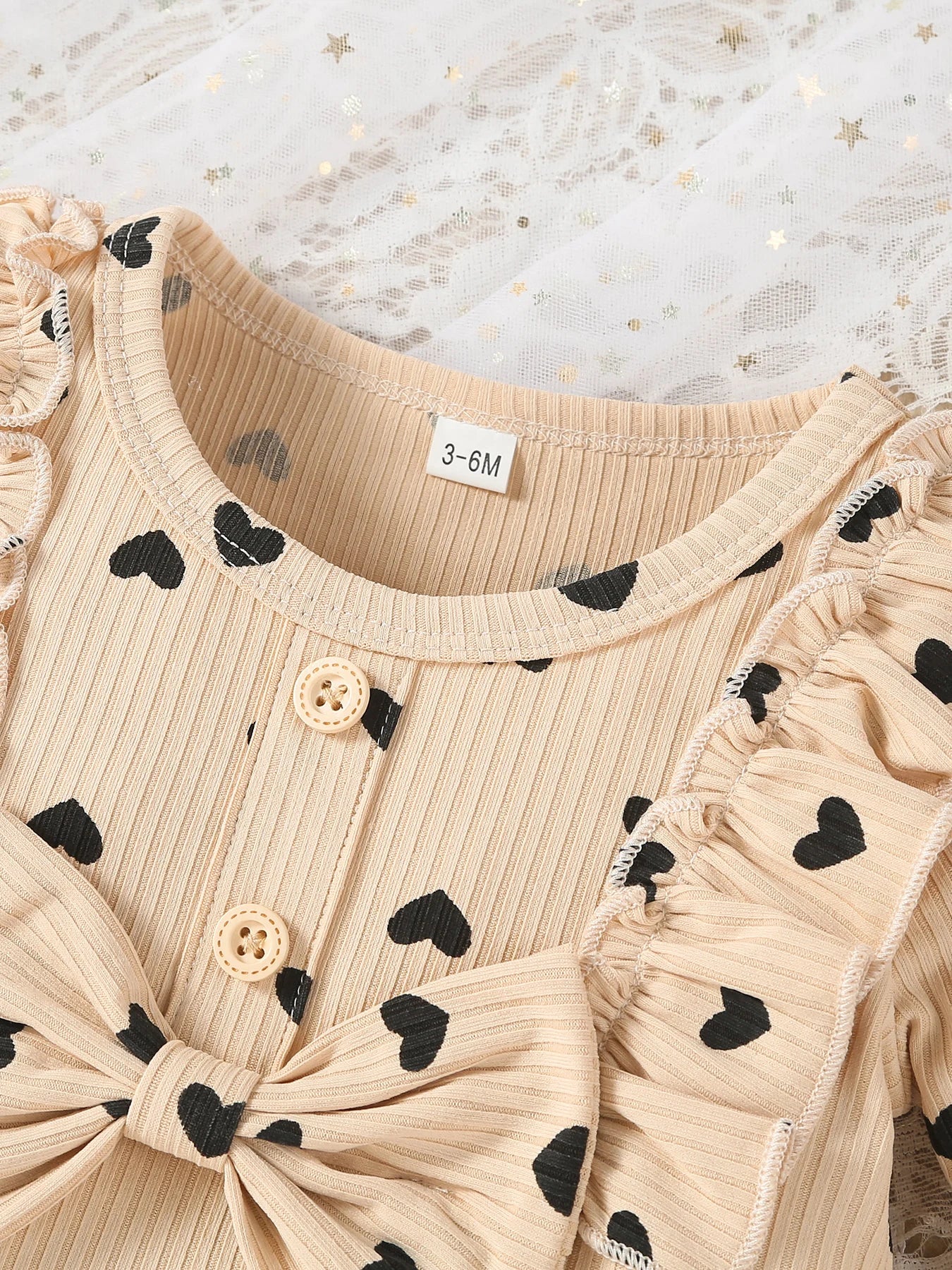 Kukitty – ensemble de vêtements 3 pièces pour nouveau-né fille, barboteuse à manches longues, imprimé cœur, haut et pantalon, bandeau, tenues en tricot