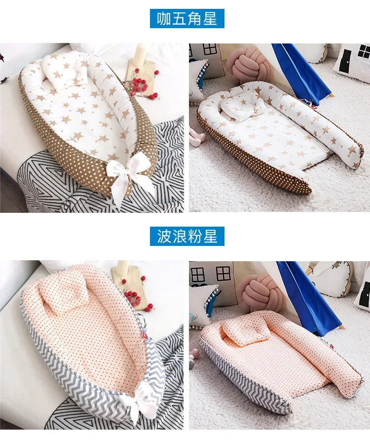 Lit de voyage pour bébé en bas âge, berceau en coton pour nouveau-né, berceau pare-chocs, nouveau lit nid de bébé 85x50cm avec oreiller, berceau Portable
