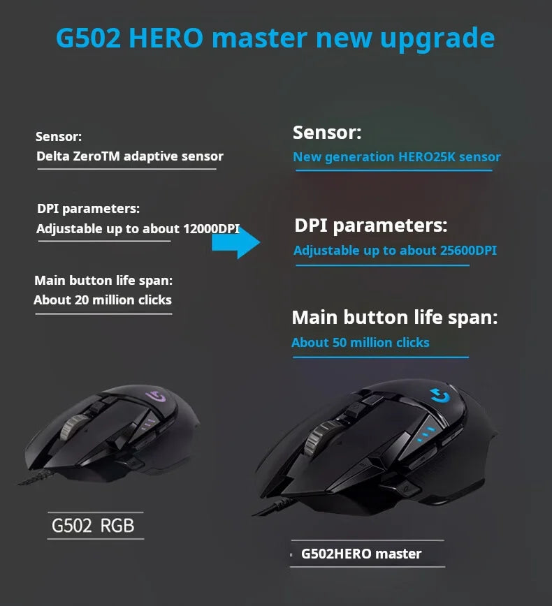 Logitech G502 HERO câble souris de jeu e-sports manger du poulet souris mécanique lumière rvb peut être équilibrée pour manger du poulet Macro Prog