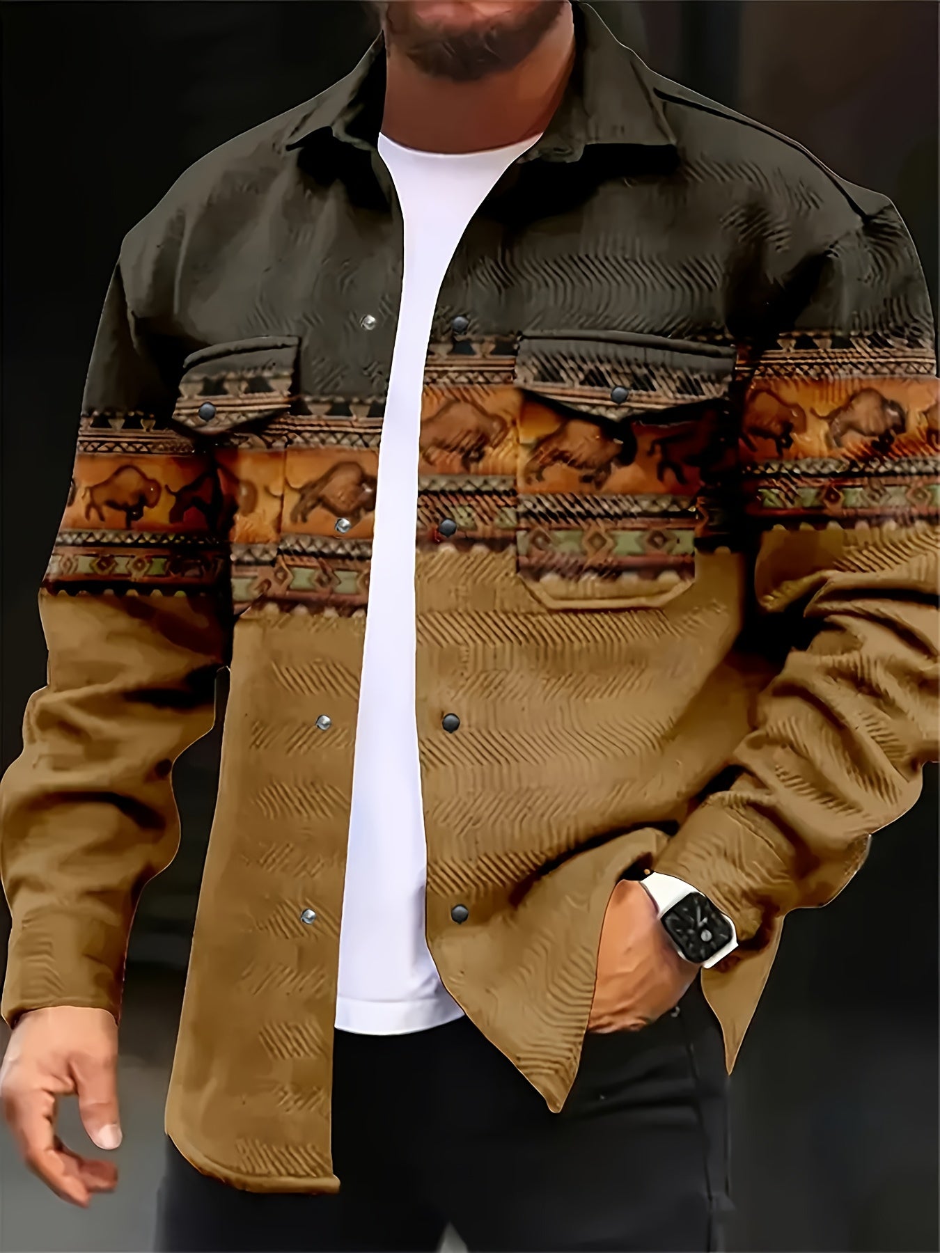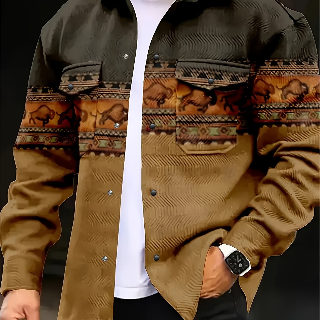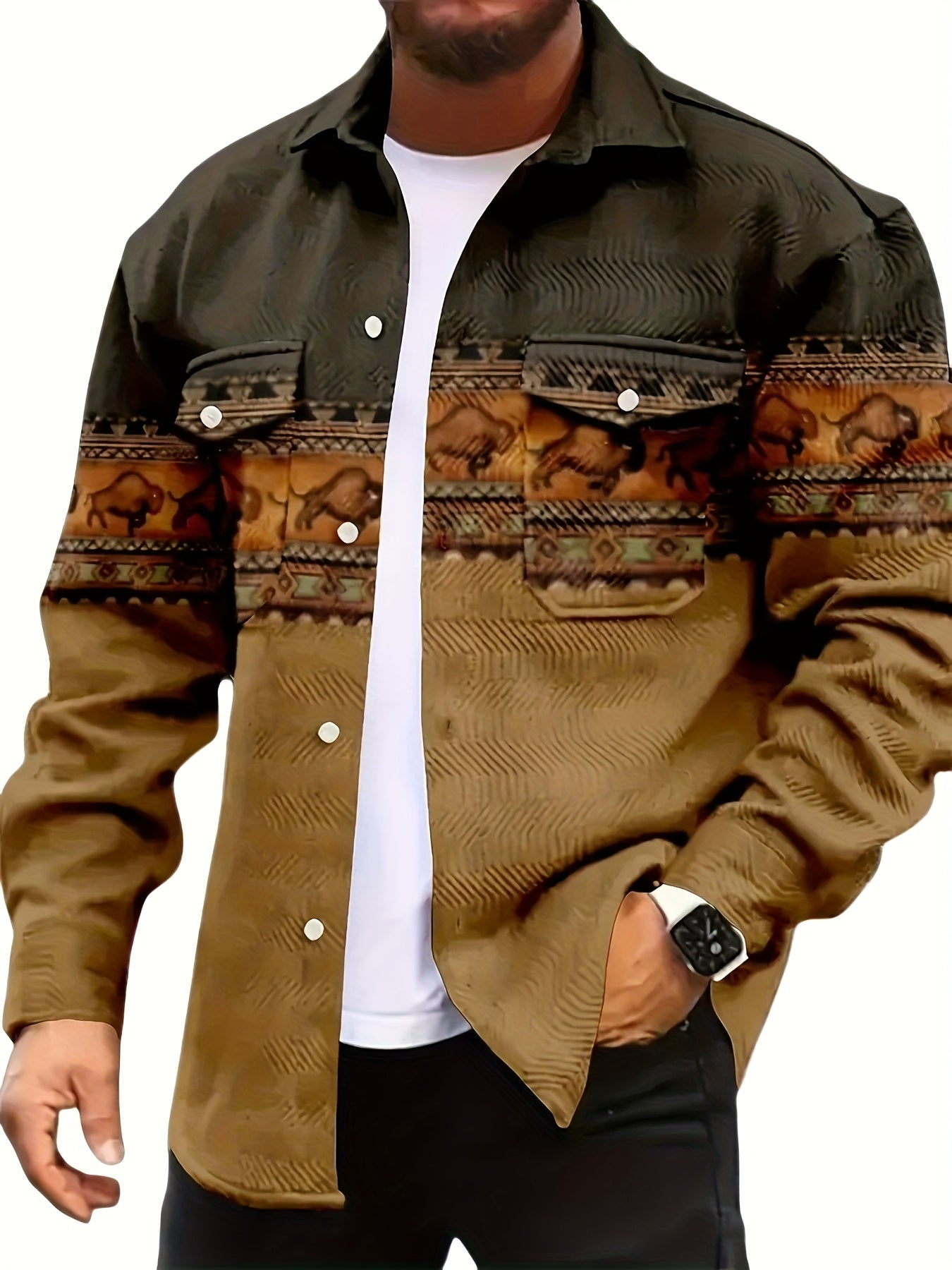 Men'S Casual Button-Up Jacket with Chest Pockets - Solid Color Regular Fit Autumn Winter Coat, Polyester Lined for Outdoor Travel & Daily Office Wear, Classic Collar Design, Durable Fabric Coat