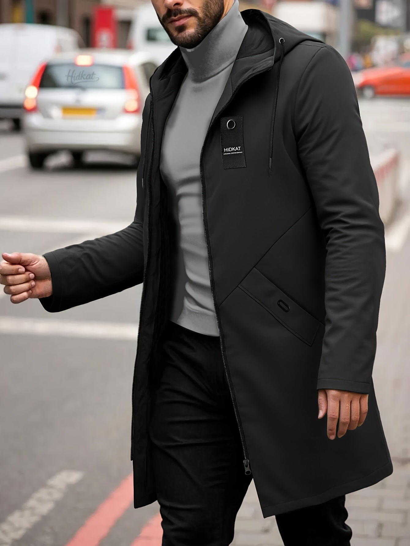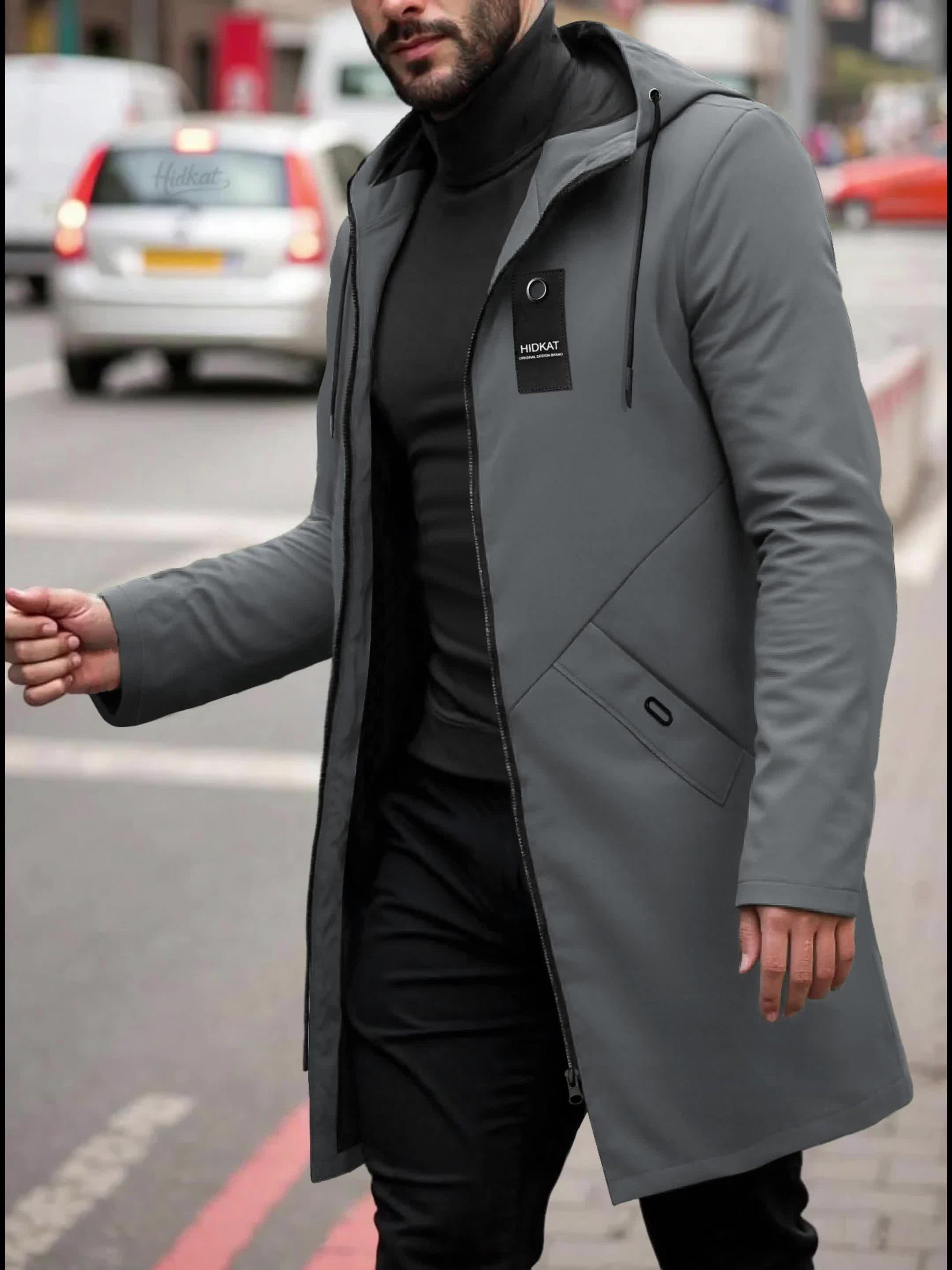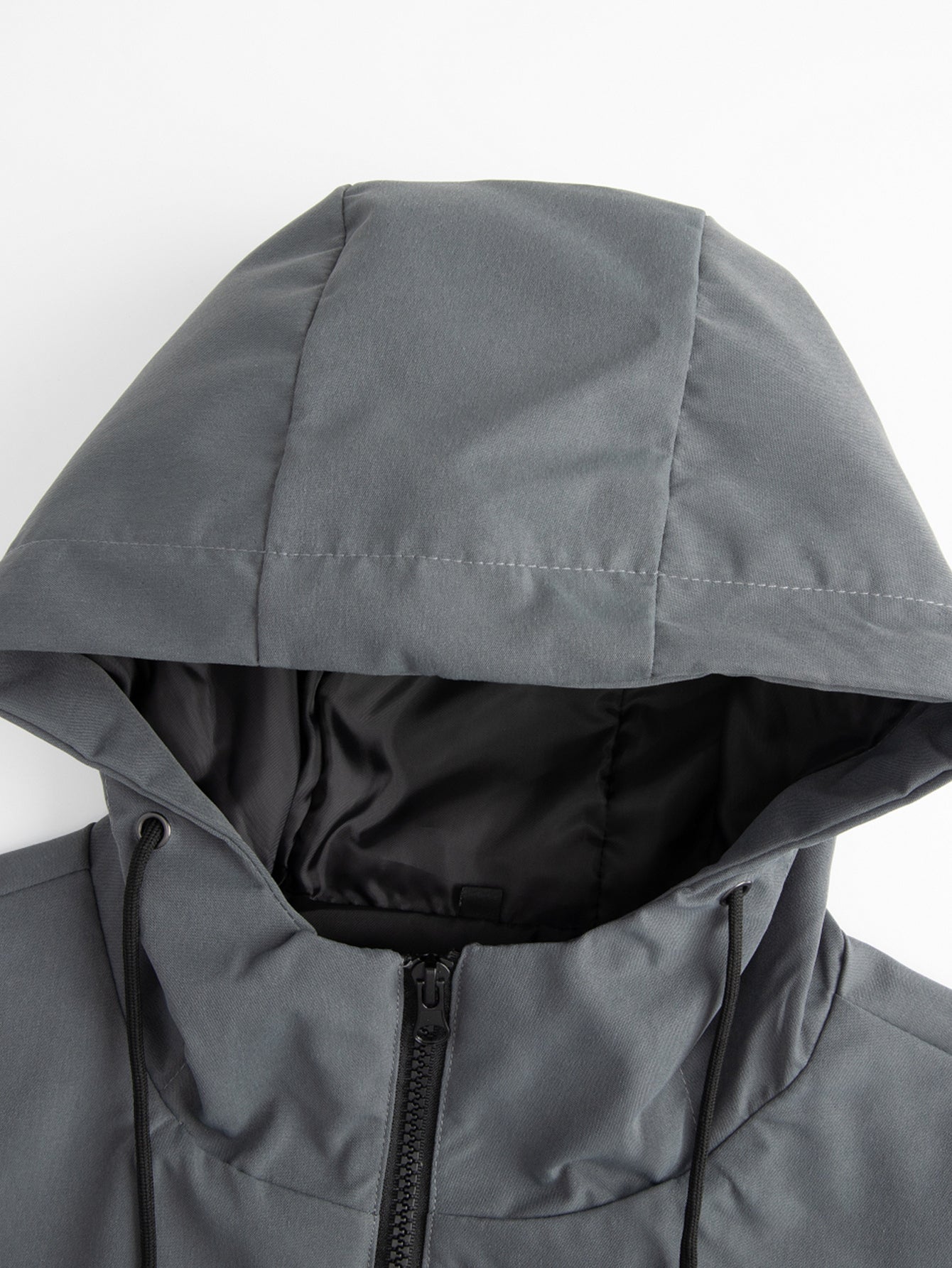 Men'S Casual Hooded Jacket with Adjustable Drawstring Hood - Solid Color Zipper Front, Regular Fit & Functional Pockets, Polyester Lining for Spring/Fall Daily Wear, Spring Outerwear, Sleek Design, Durable Fabric, Lightweight