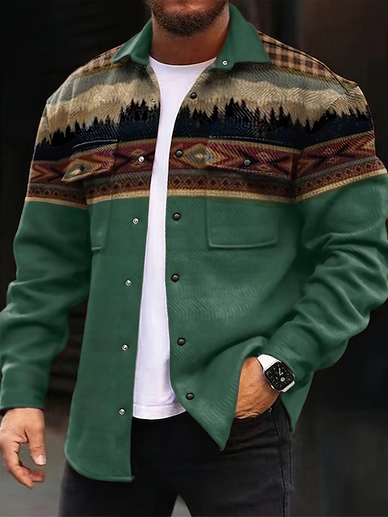 Men'S Casual Winter Jacket with Color-Blocked Stripes & Diamond Pattern - Warm Polyester Coat, Regular Fit, Front Pockets & Single-Breasted Button Closure for Autumn/Winter Outdoor Activities, Casual Outerwear | Colorblock De