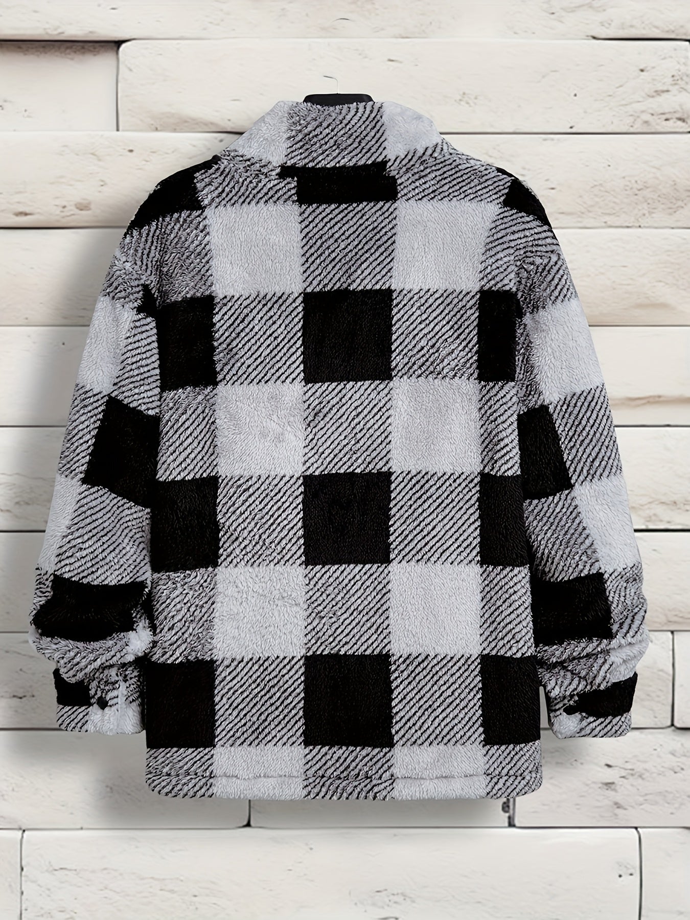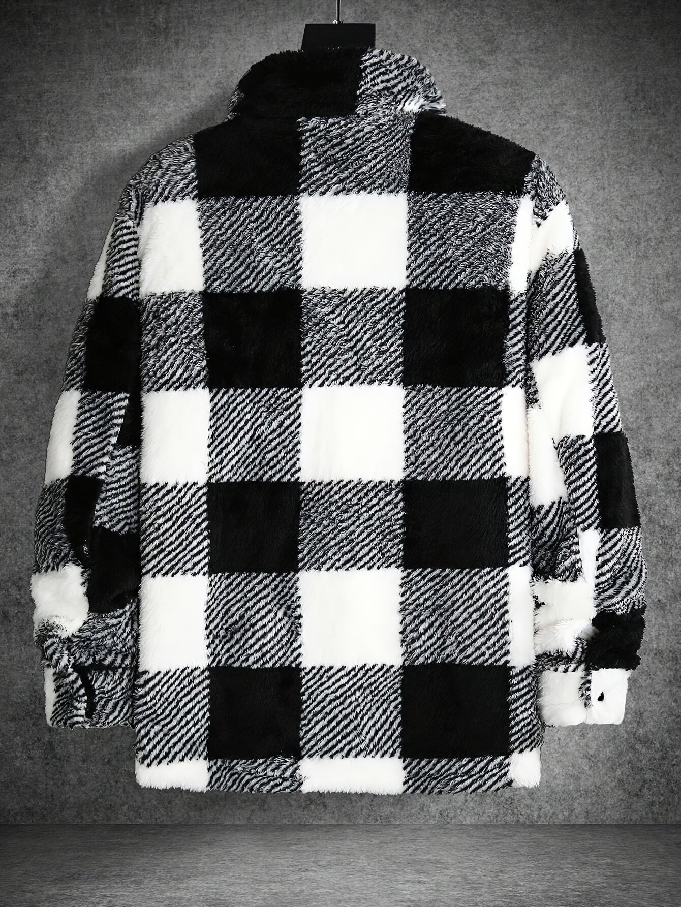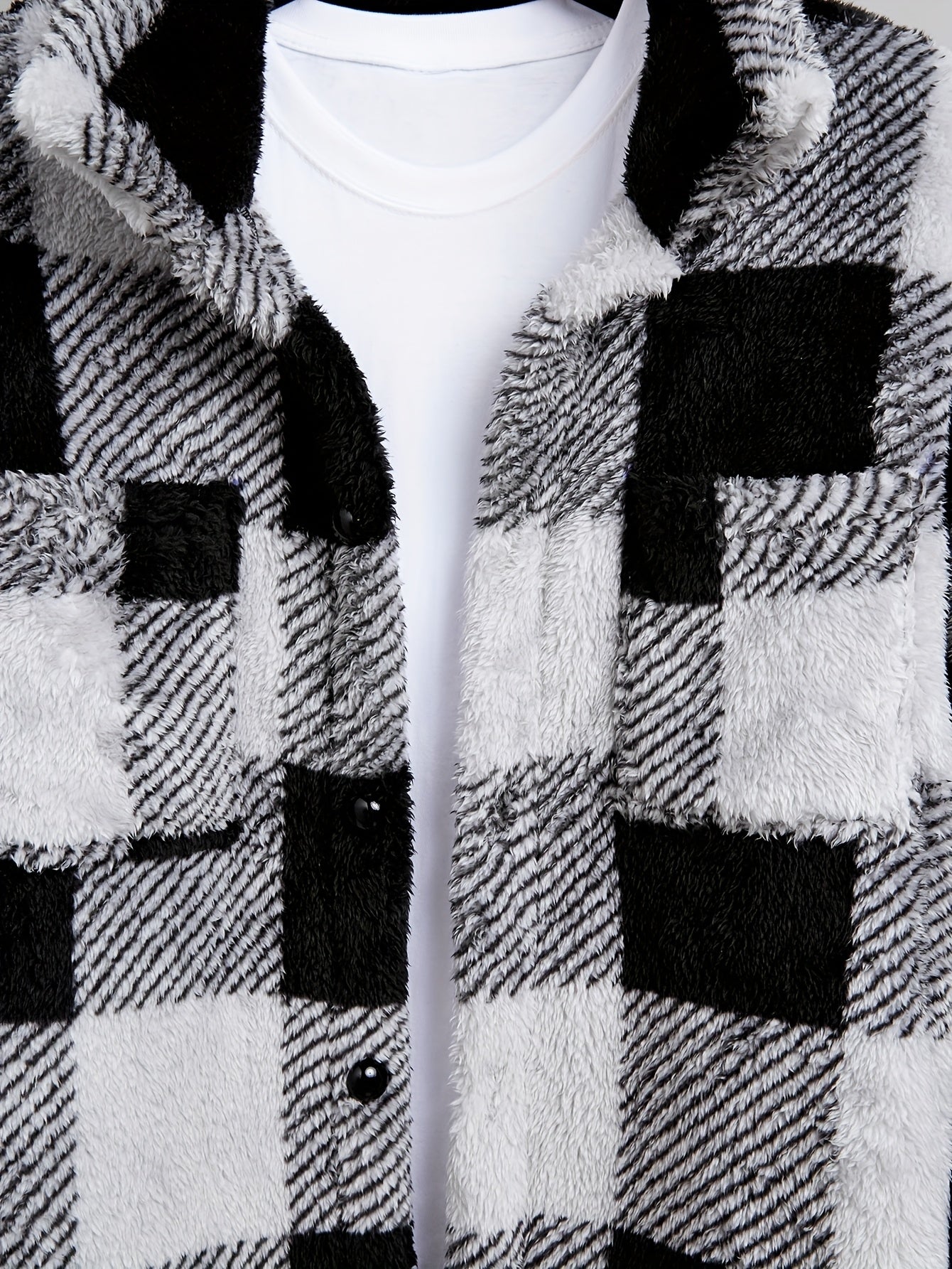 Men's Cozy Plaid Fleece Jacket - Casual Button-Up with Lapel Collar, Long Sleeves for Winter Warmth