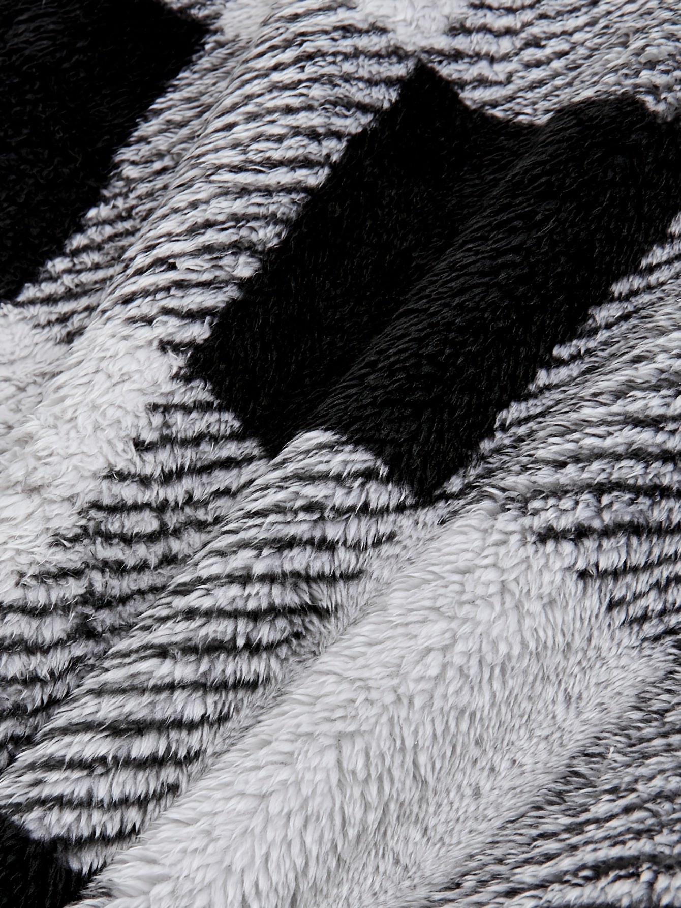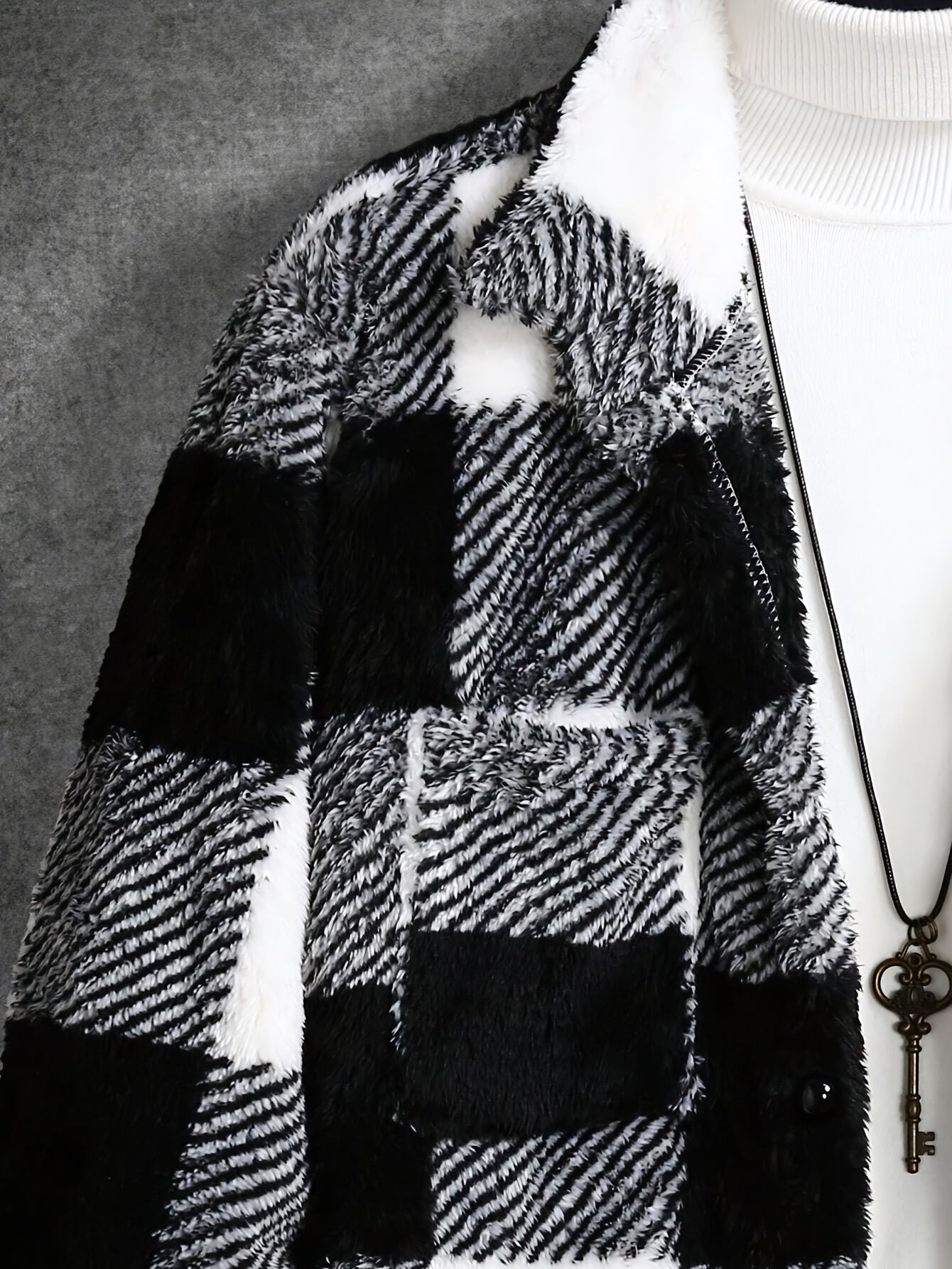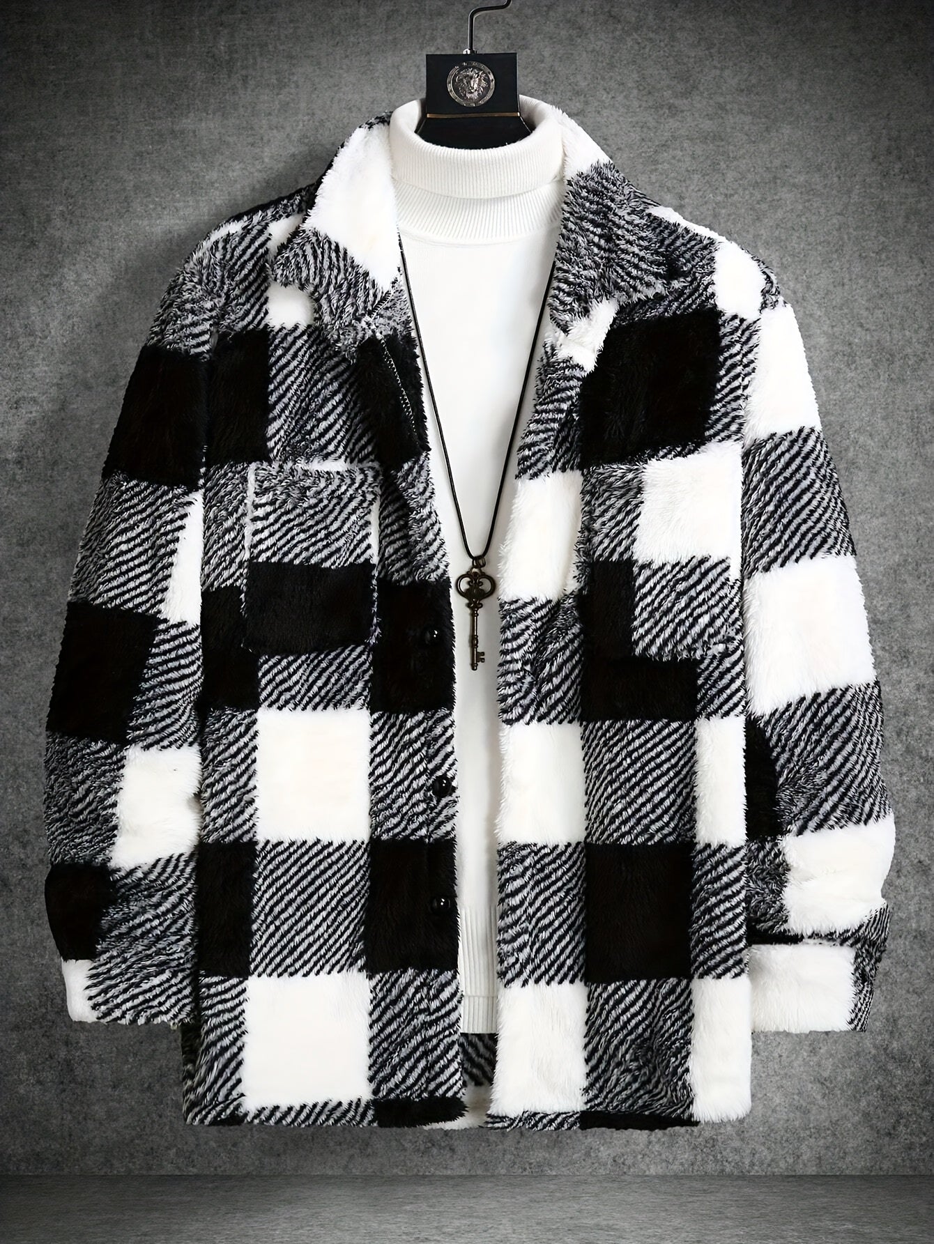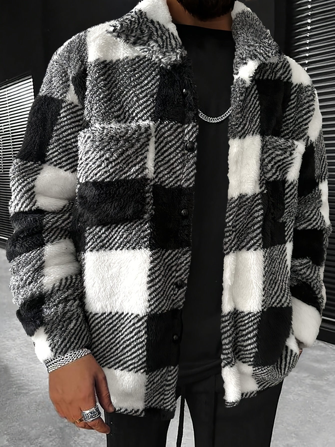 Men's Cozy Plaid Fleece Jacket - Casual Button-Up with Lapel Collar, Long Sleeves for Winter Warmth