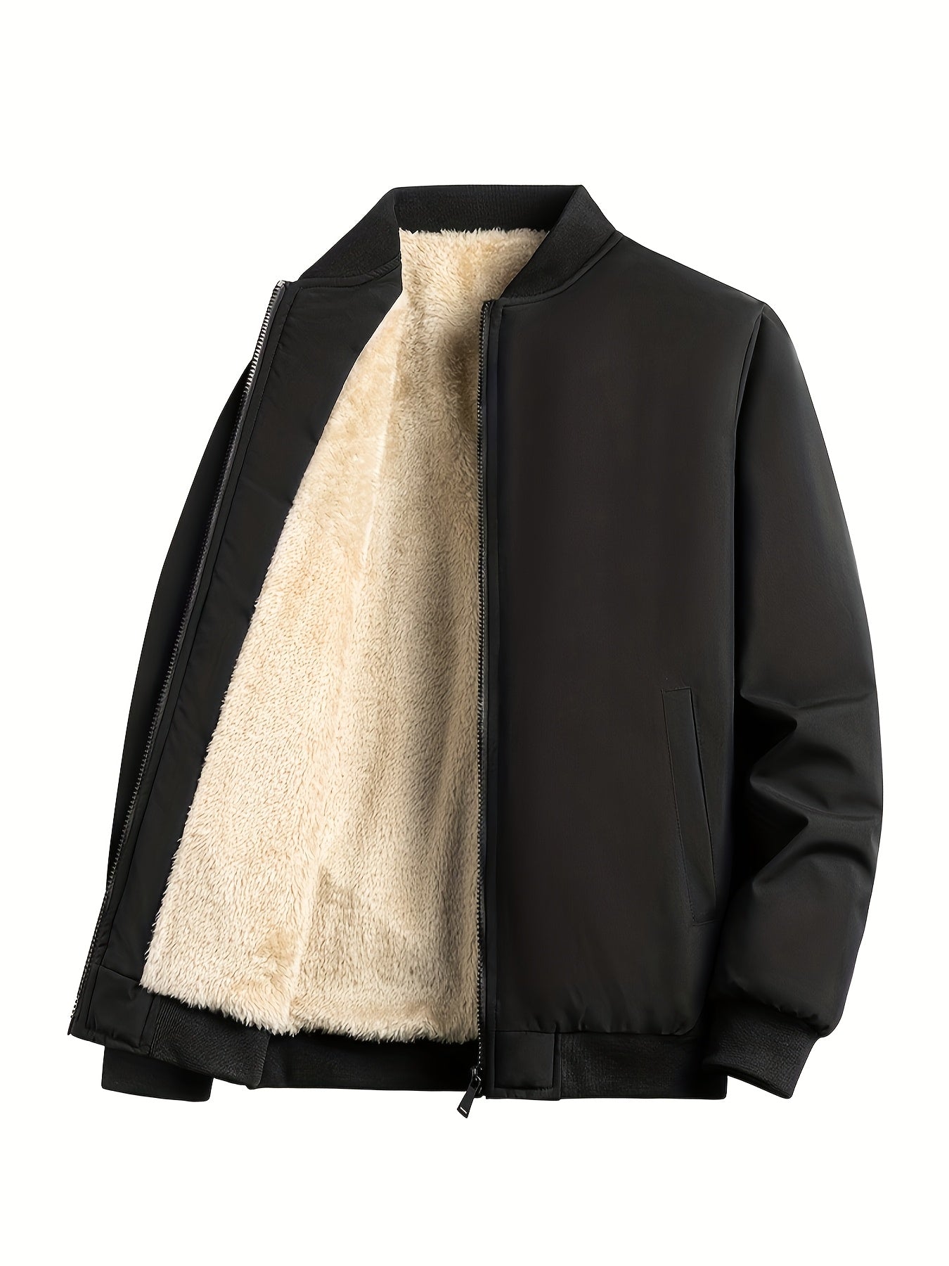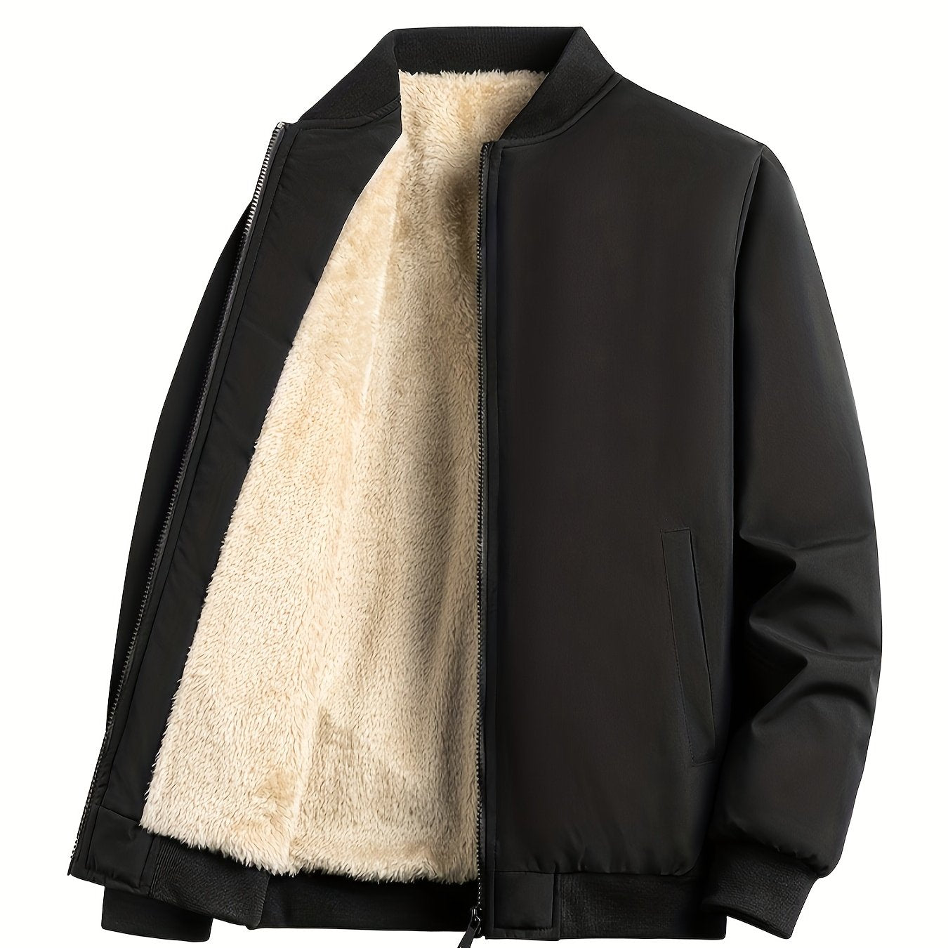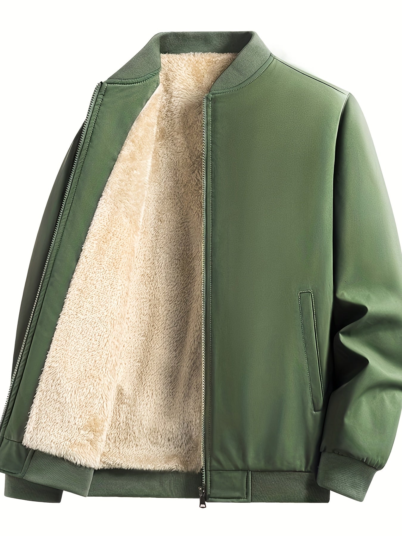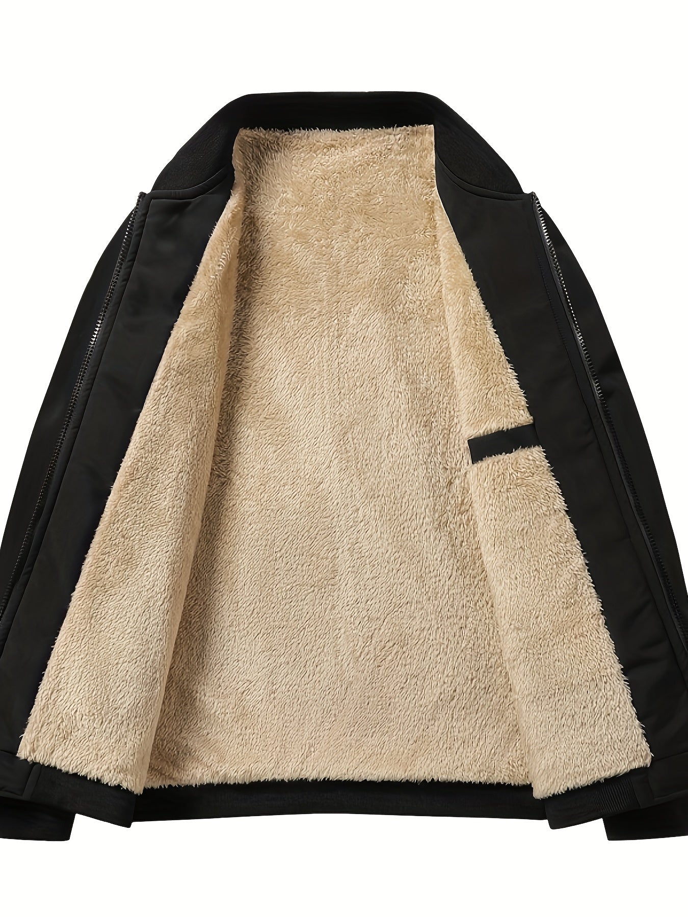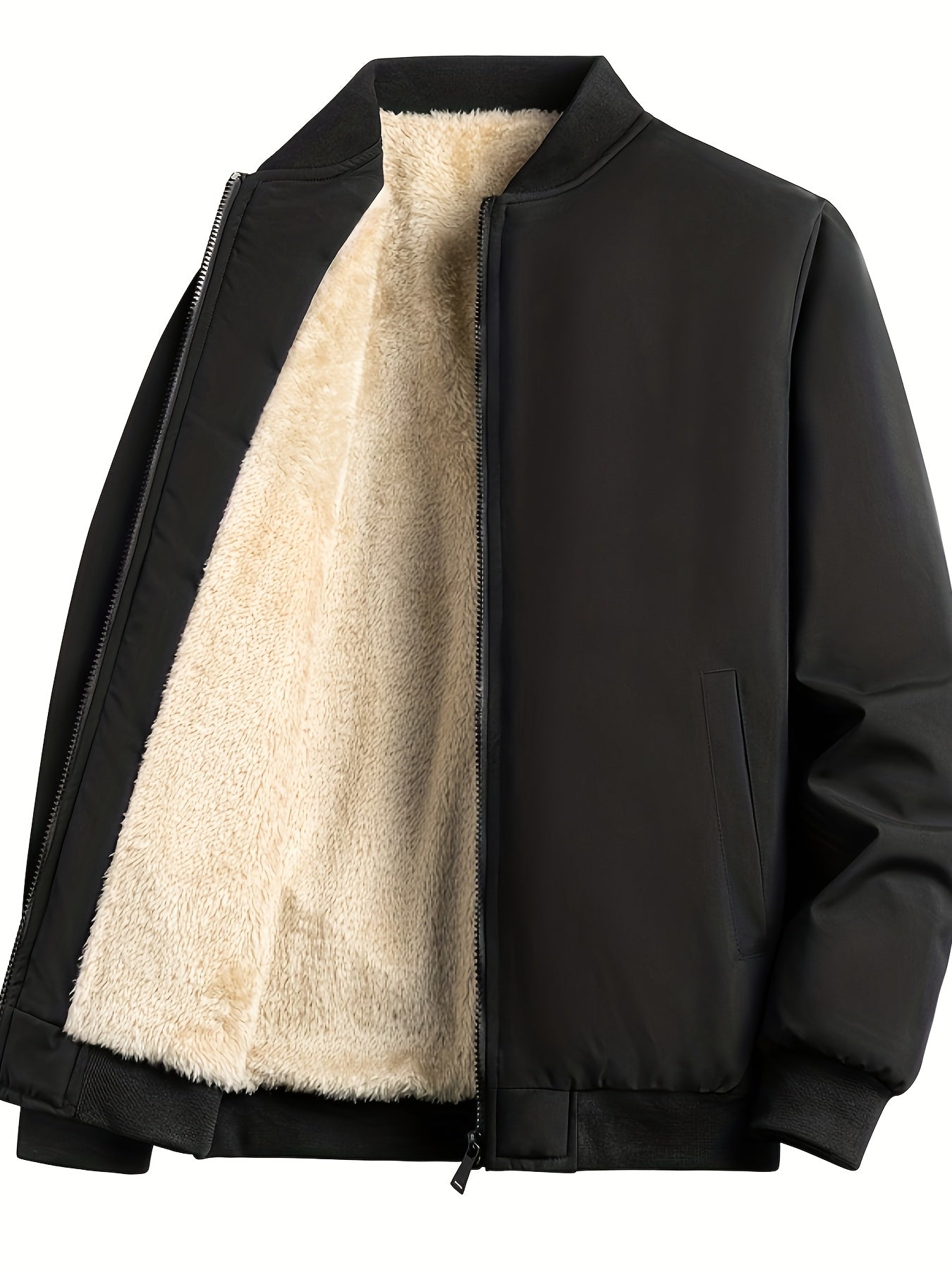 Men's Outdoor Warm Fleece-Lined Thick Casual Business Jacket with Baseball Collar, Solid Color, Machine Washable - Polyester