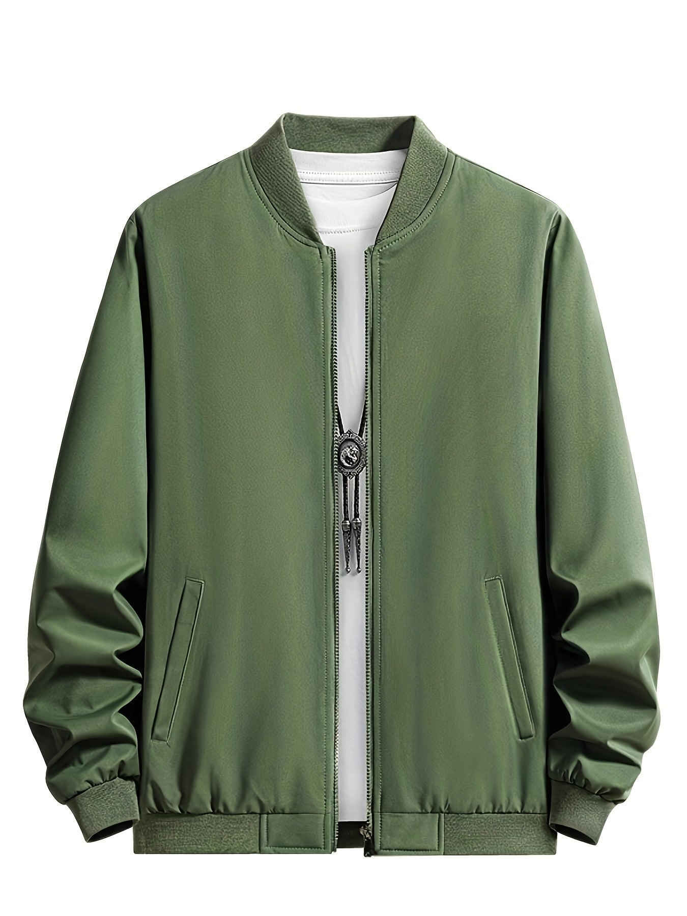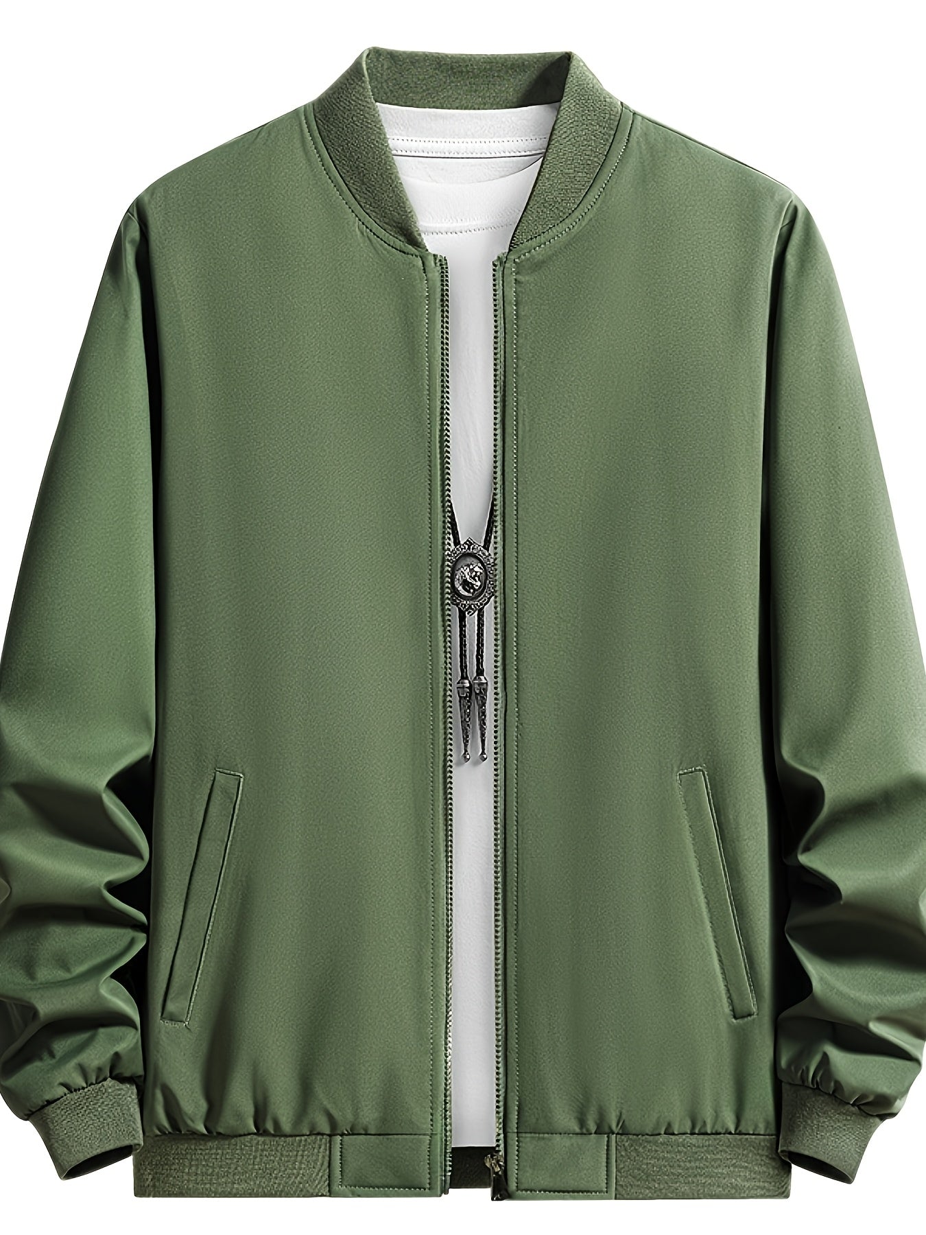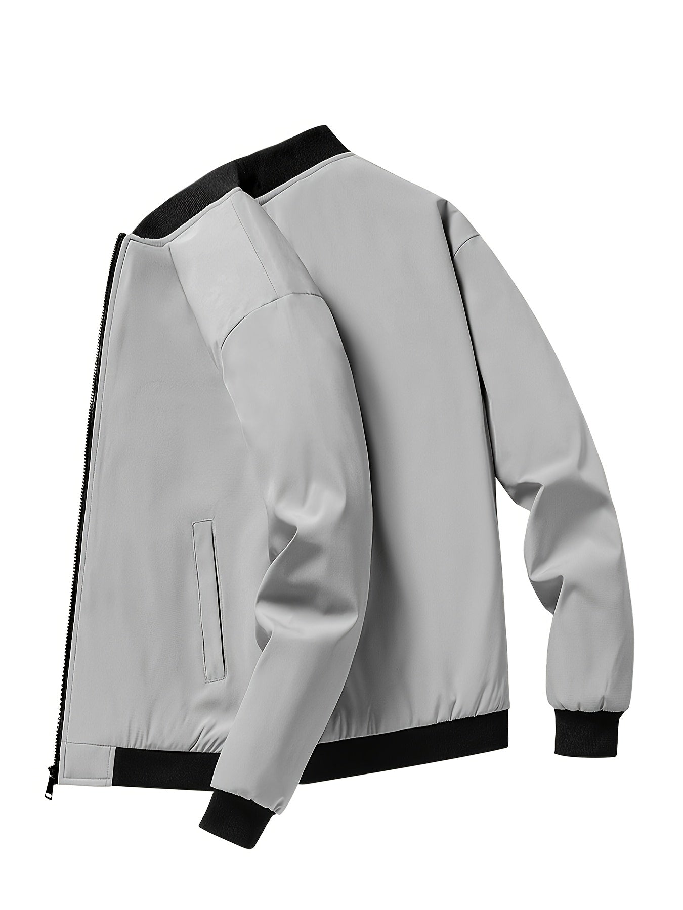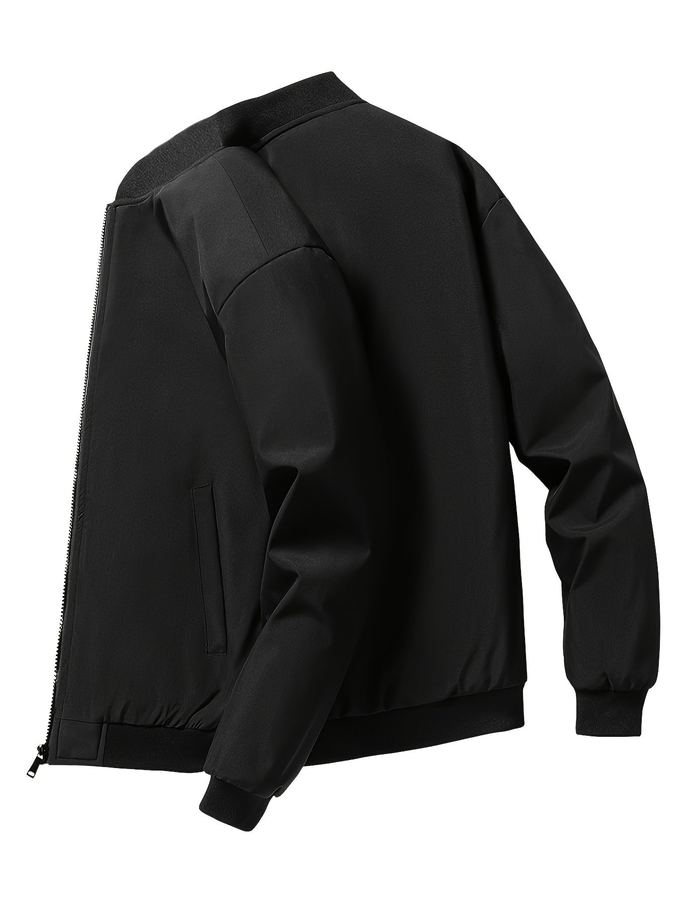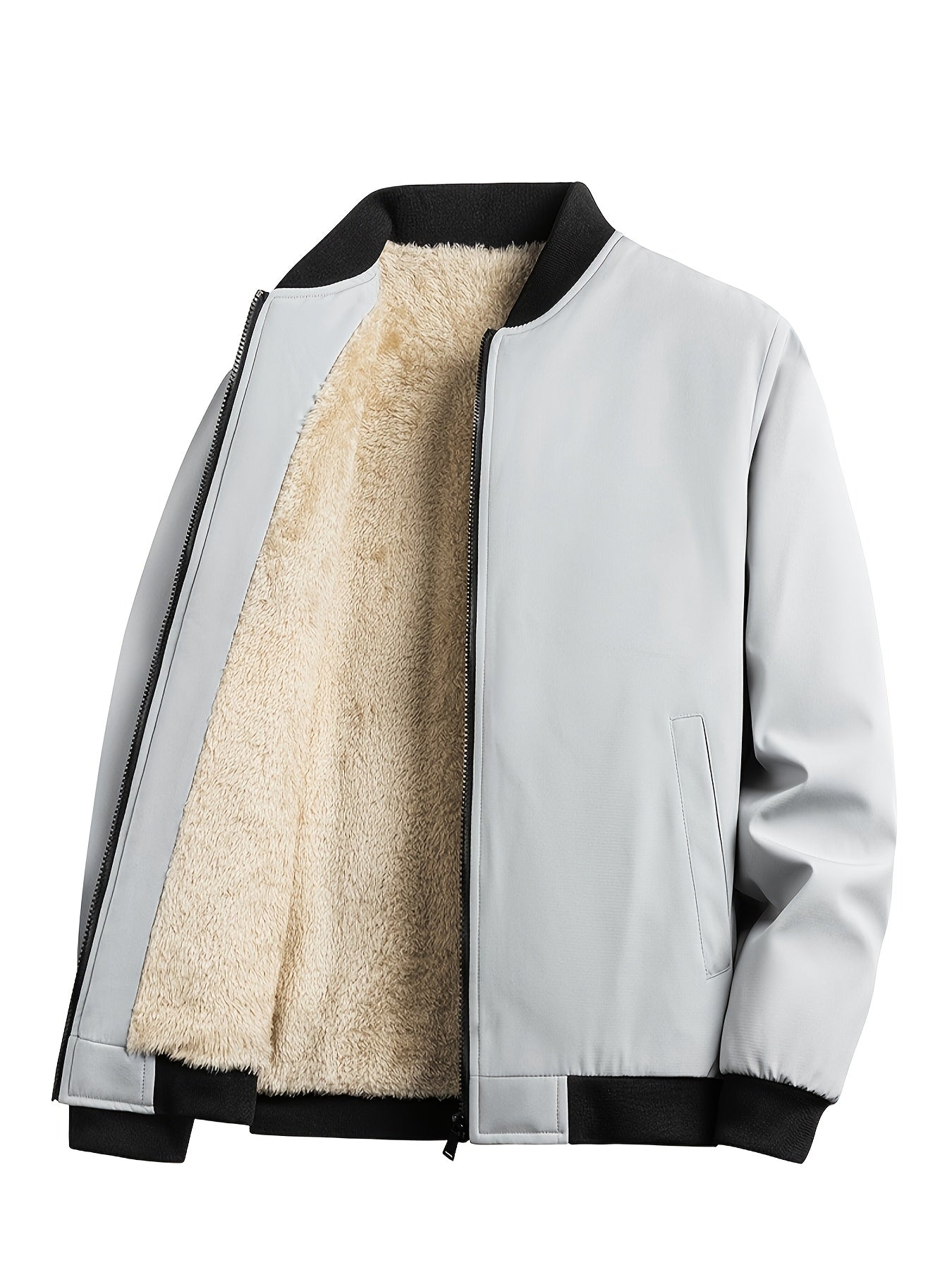 Men's Outdoor Warm Fleece-Lined Thick Casual Business Jacket with Baseball Collar, Solid Color, Machine Washable - Polyester
