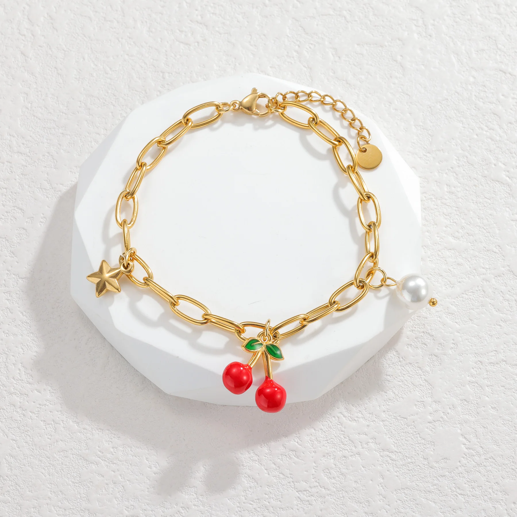 Nextvance été mode plaqué or Bracelets pour femme rouge fraise cerise pastèque breloques en acier inoxydable bijoux cadeaux