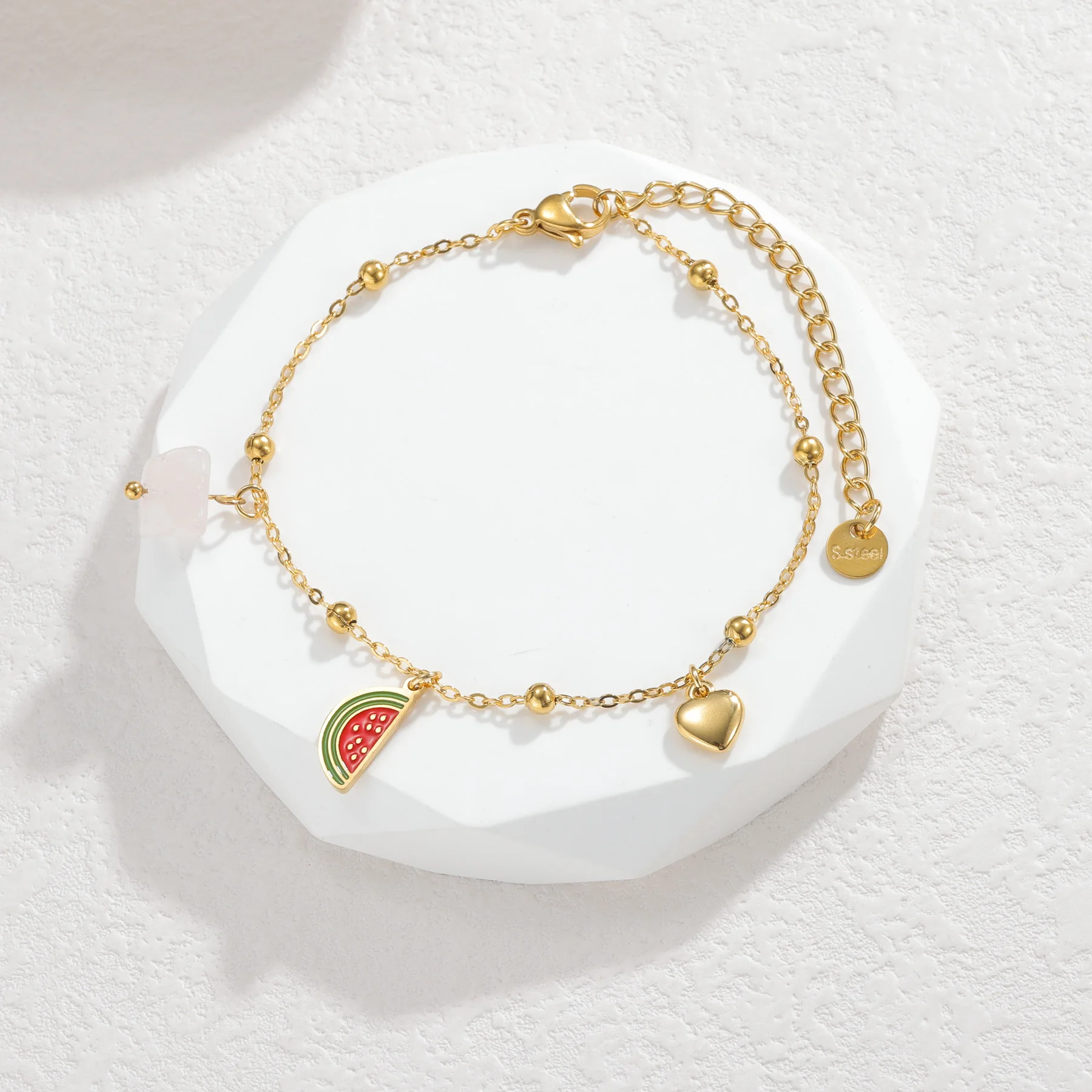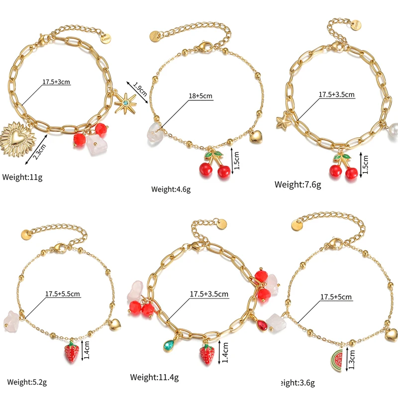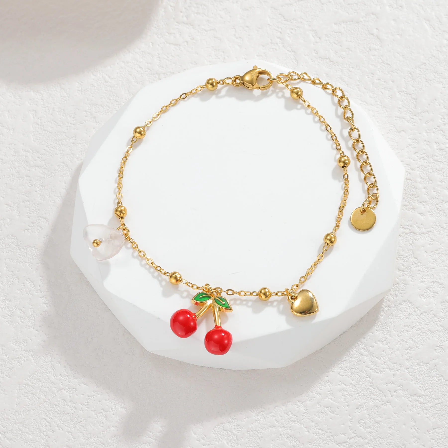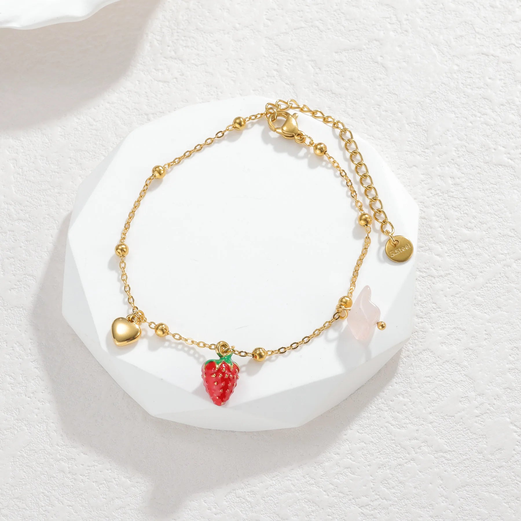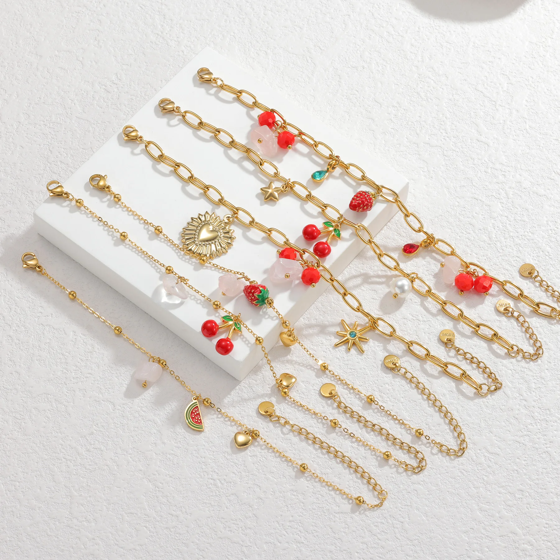 Nextvance – Bracelets plaqués or pour femmes, breloques rouge fraise cerise pastèque, bijoux en acier inoxydable, cadeaux, mode été
